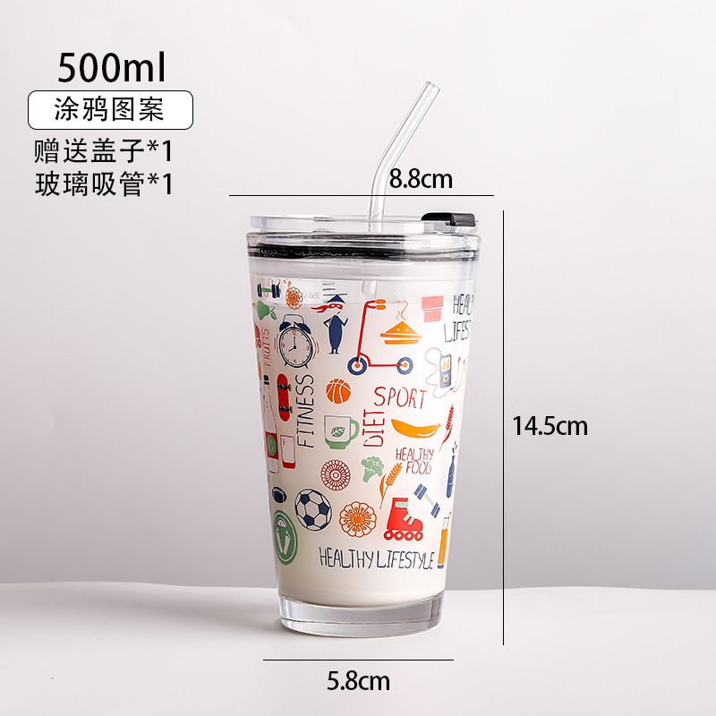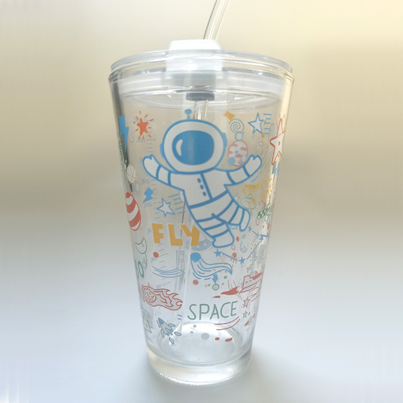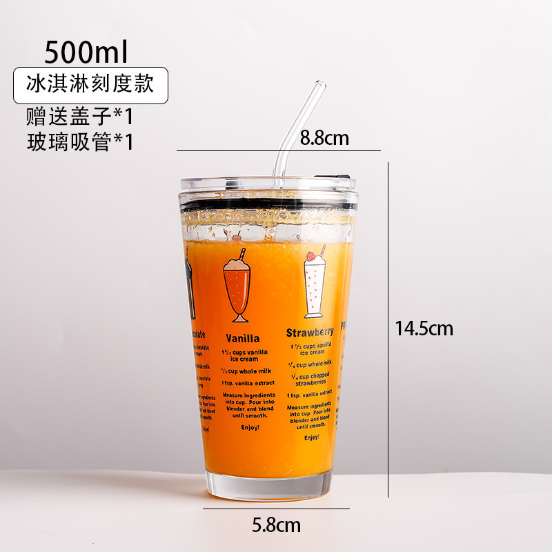 도매 유리 물 컵 그물 레드 스케일 컵 흡입 튜브 컵 만화 어린이 컵 창조적 인 콜라 컵 우유 컵 선물 컵스토어 가기
