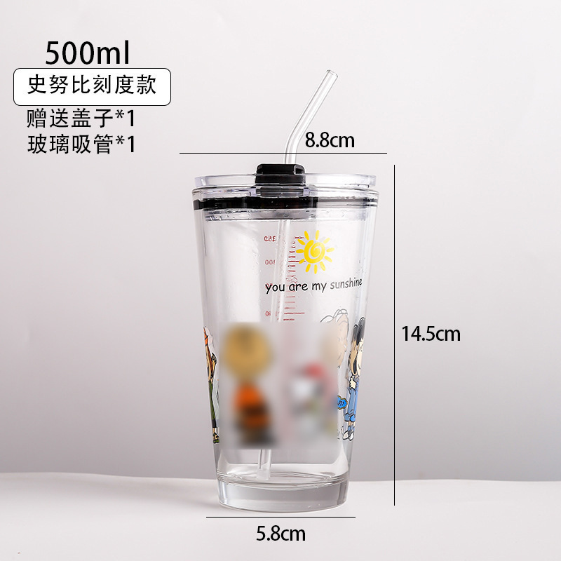 도매 유리 물 컵 그물 레드 스케일 컵 흡입 튜브 컵 만화 어린이 컵 창조적 인 콜라 컵 우유 컵 선물 컵