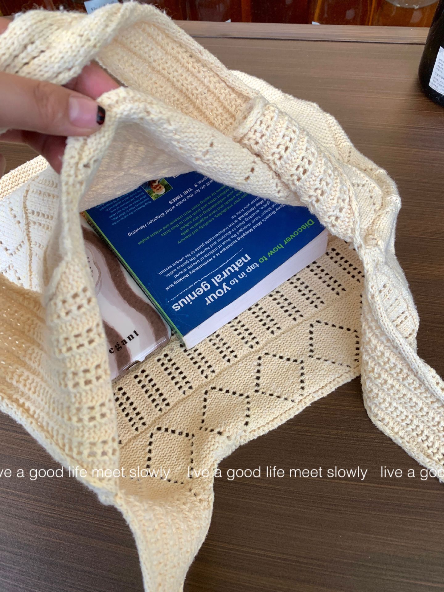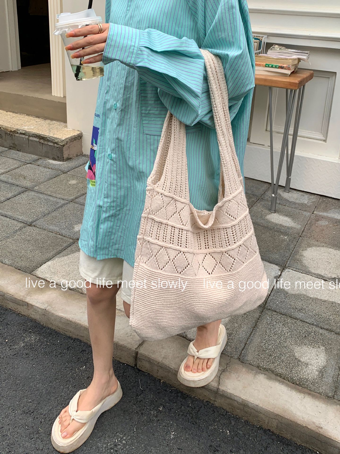 크로스보더 토트백, 레트로 중공 니트백, 우븐백, 심플백, 일본 및 한국 휴대용 솔리드 컬러 여성용 가방, 숄더백스토어 가기