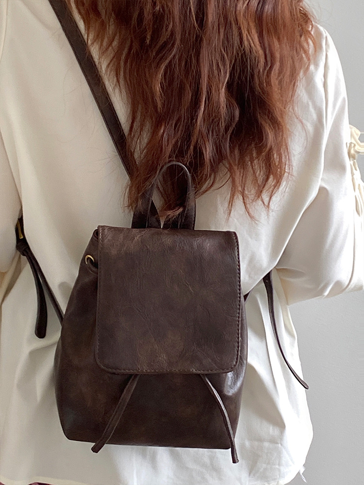 샤오홍슈 동일 스타일의 작고 레트로한 갈색 백팩 여성용 2025 봄 여름 신상 심플하고 문학적인 다용도 숄더백스토어 가기