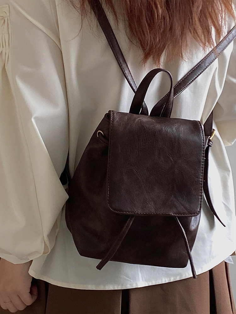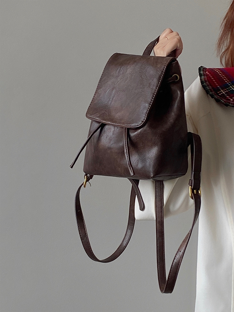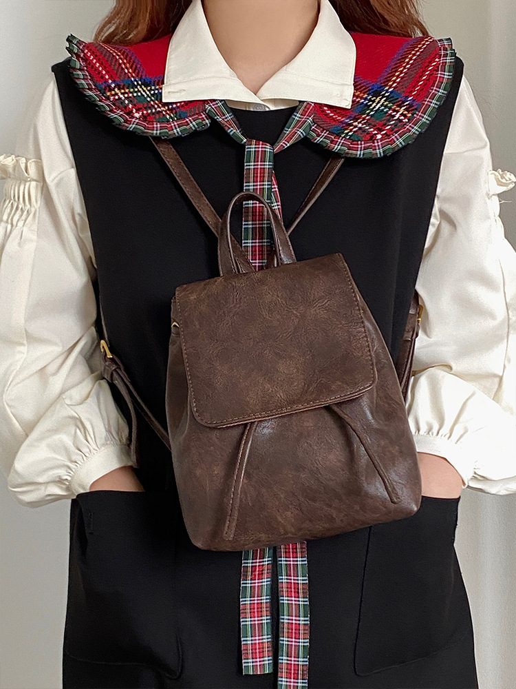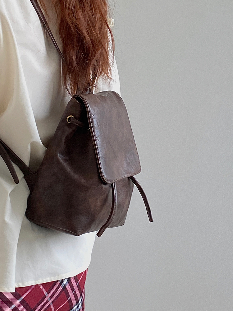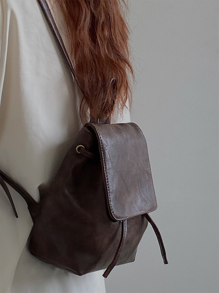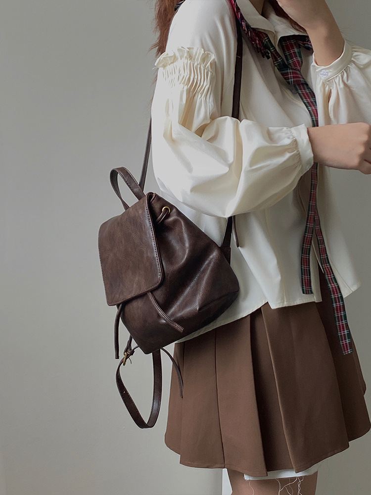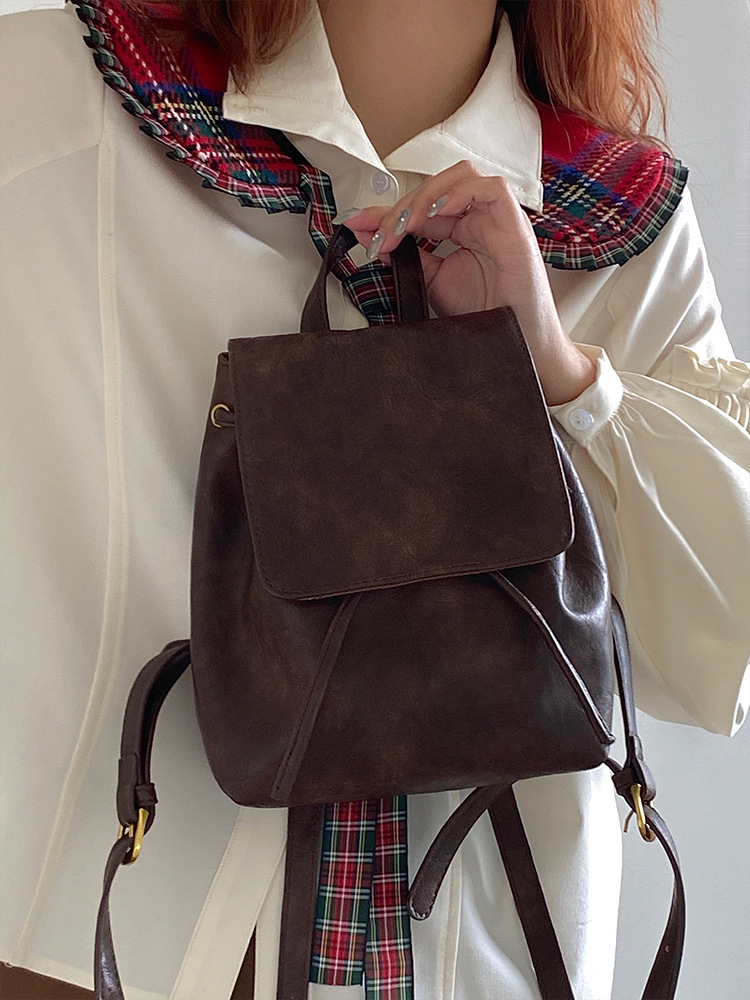 샤오홍슈 동일 스타일의 작고 레트로한 갈색 백팩 여성용 2025 봄 여름 신상 심플하고 문학적인 다용도 숄더백