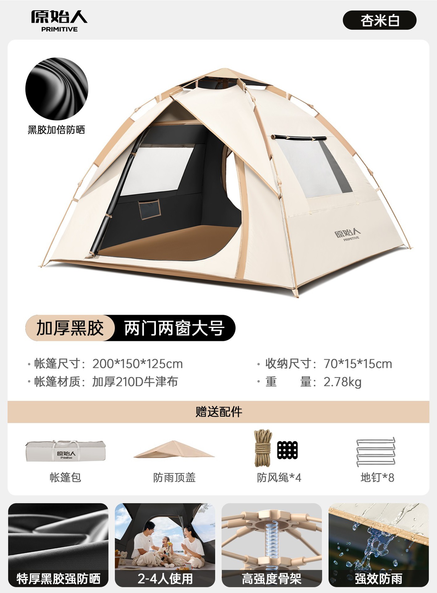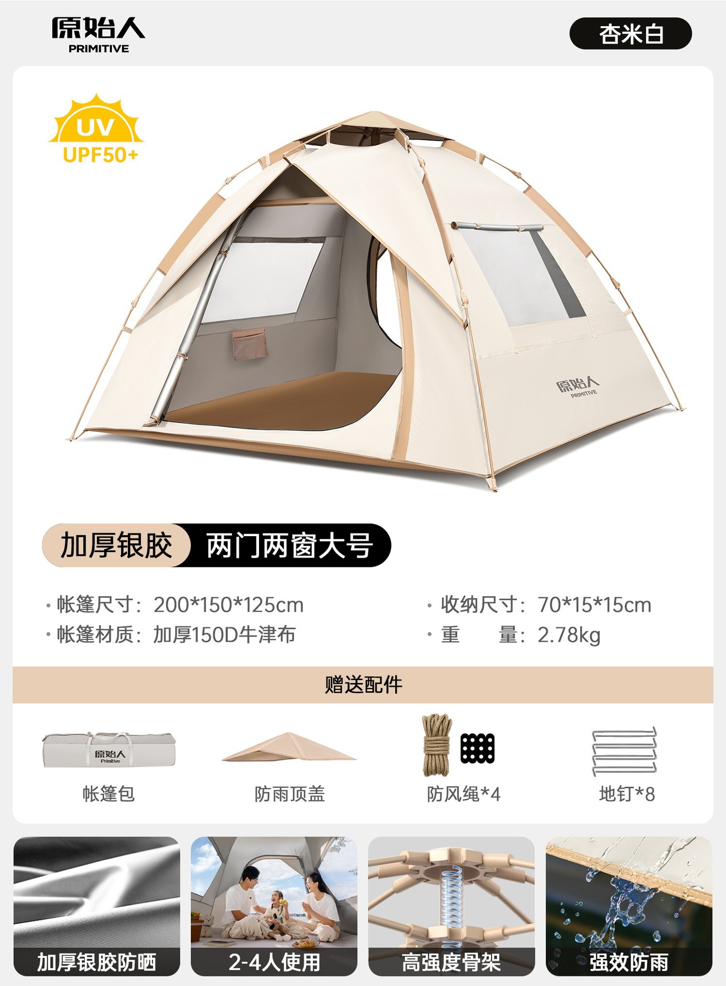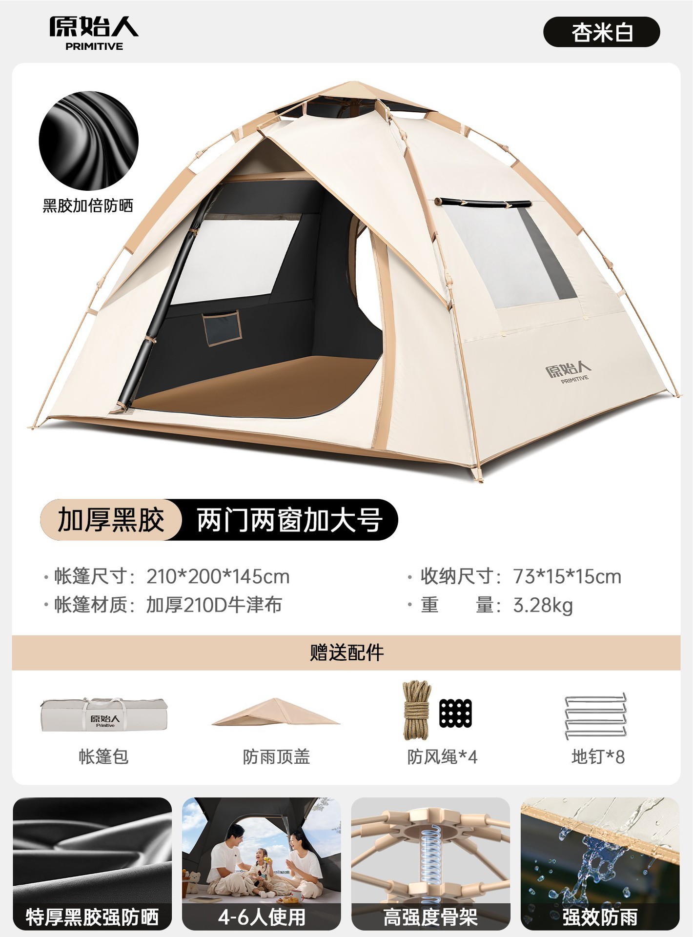 원시인 텐트 야외 휴대용 접이식 캠핑 장비 세트, 캠핑 및 야영용 자동 빠른 설치 방수 실내 텐트