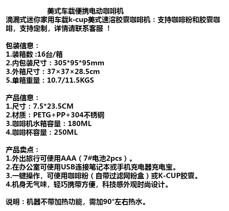 KCUP 휴대용 소형 커피머신 미국식 차량용 캡슐 자동 여행용 전기 미니 캔티
