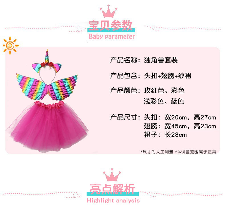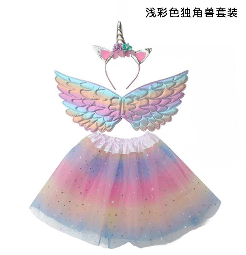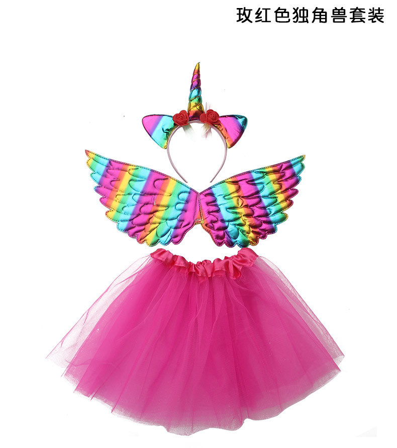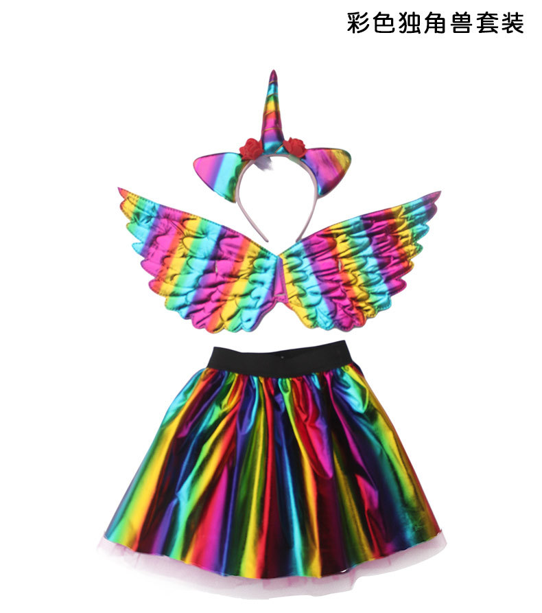 어린이 날 유니콘 세트 소녀의 생일 선물 조랑말 폴리 스커트 날개 머리띠 코스프레 원피스스토어 가기