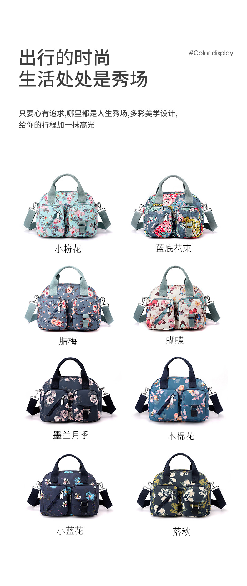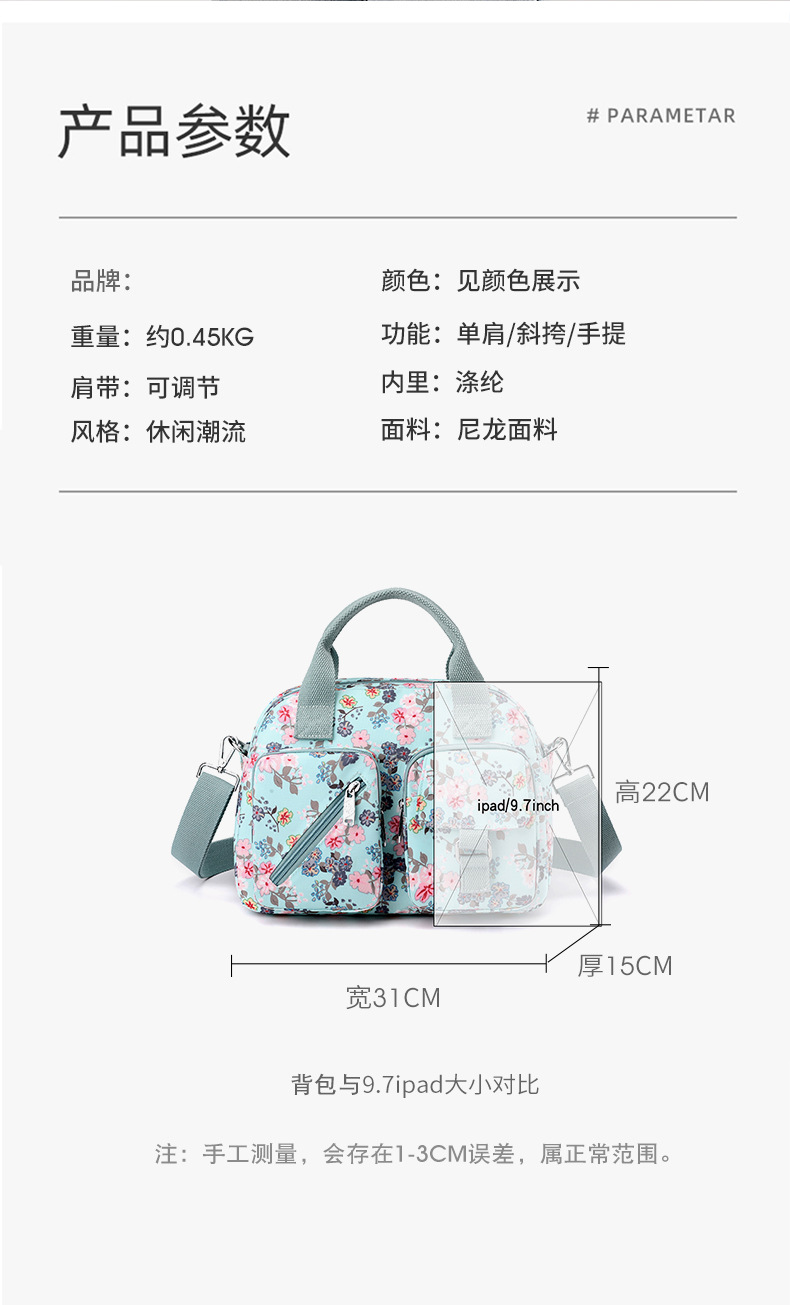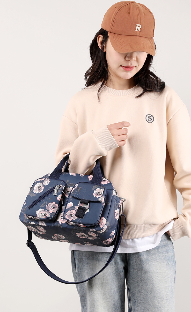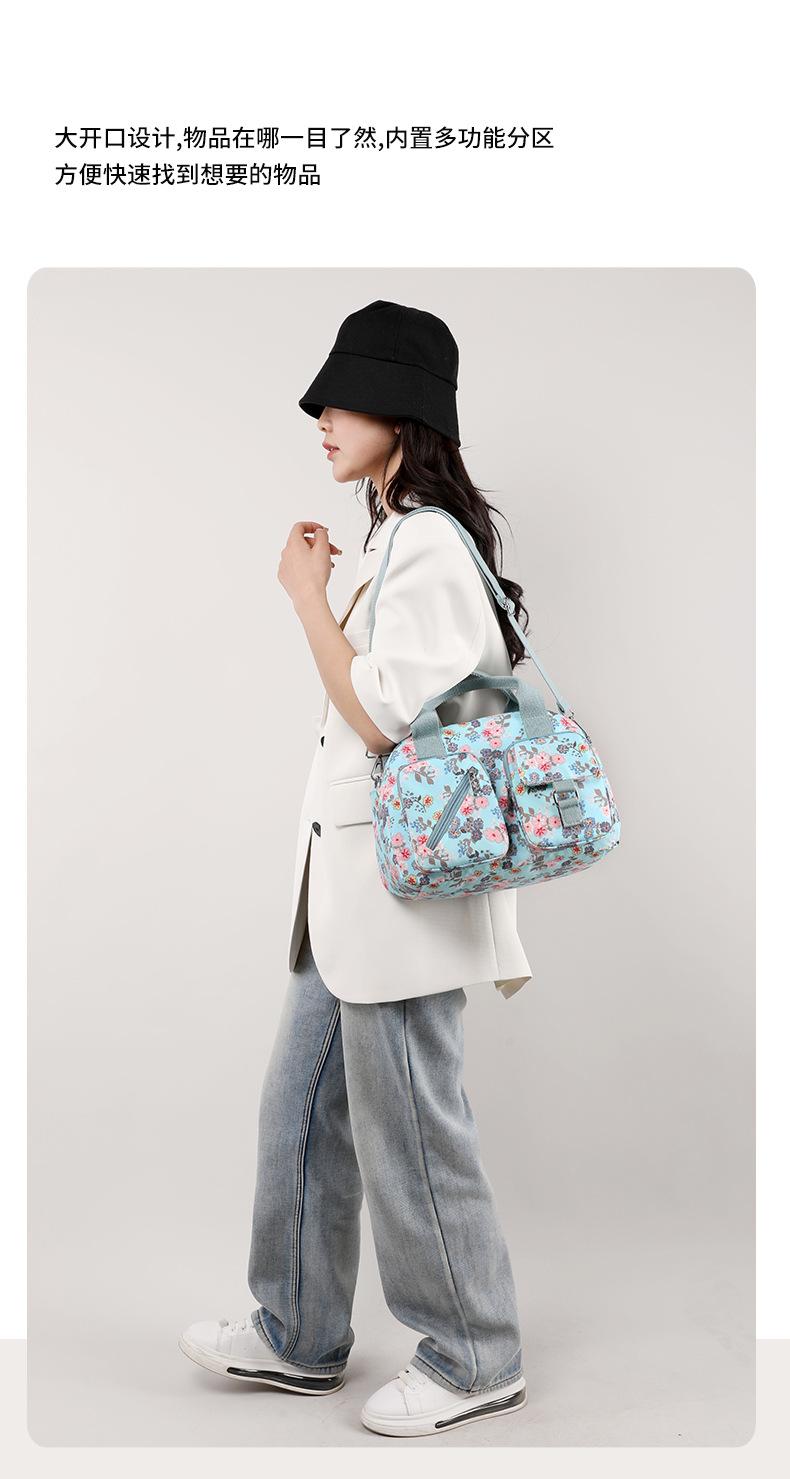 패션 프린트 여성 가방 나일론 발수성 중년 어머니 숄더백 대용량 야외 여행 휴대용 크로스바디 백