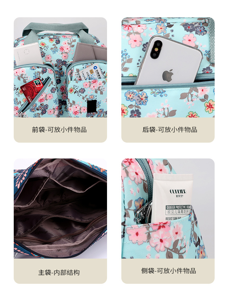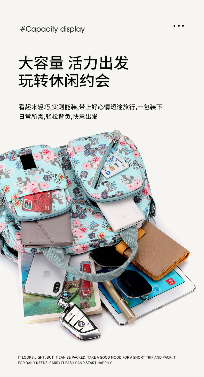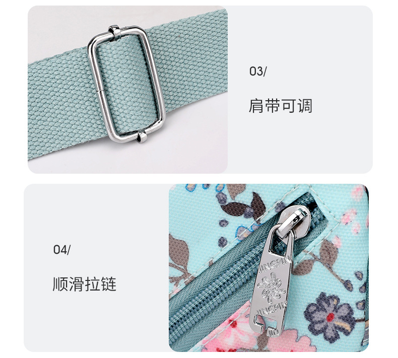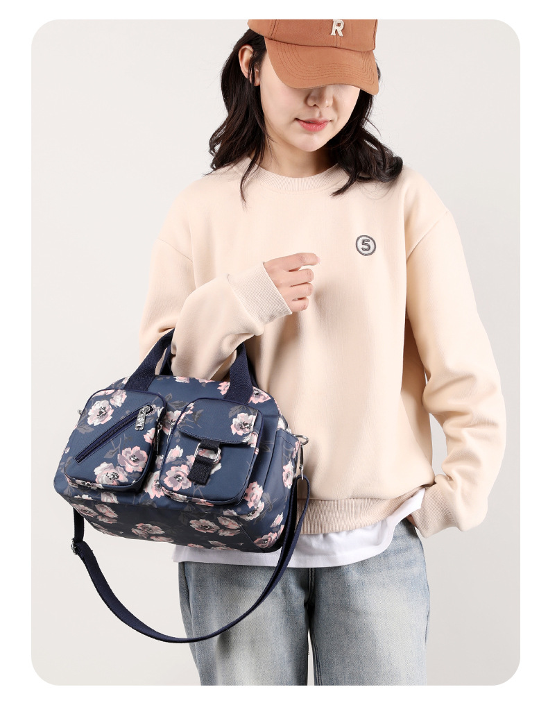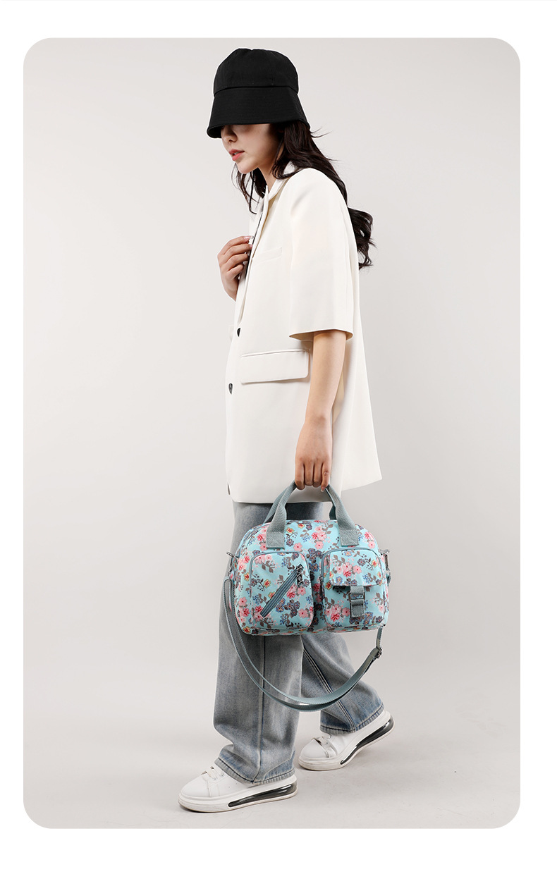 패션 프린트 여성 가방 나일론 발수성 중년 어머니 숄더백 대용량 야외 여행 휴대용 크로스바디 백