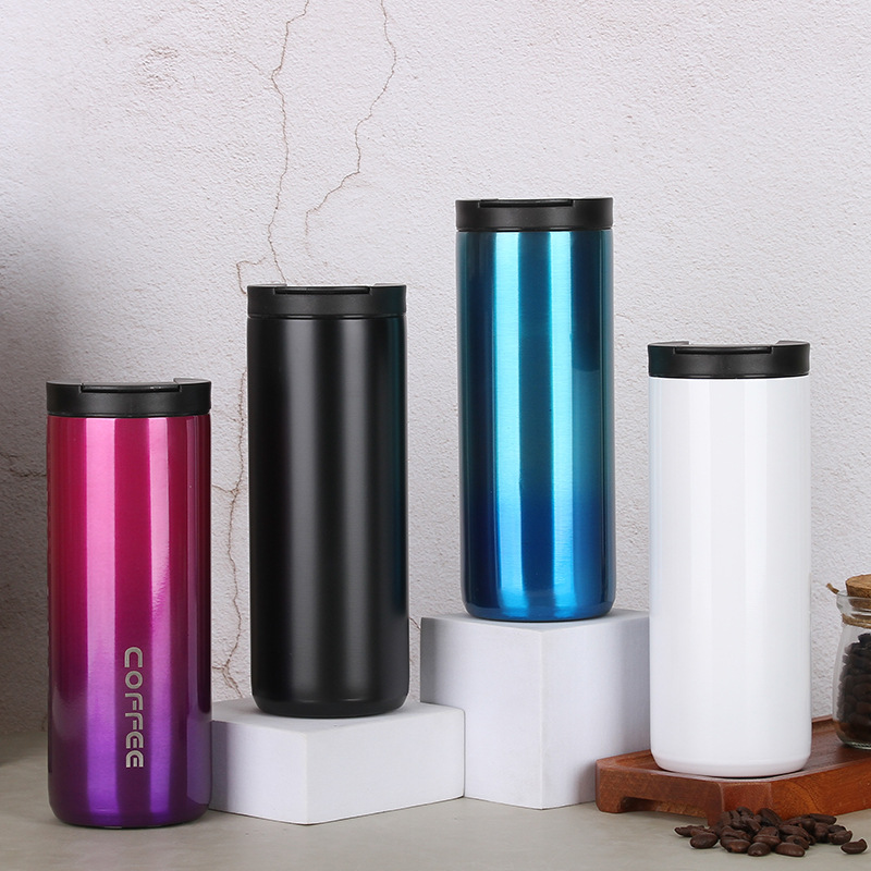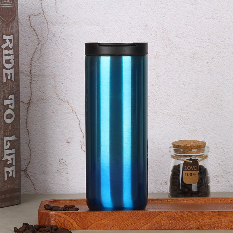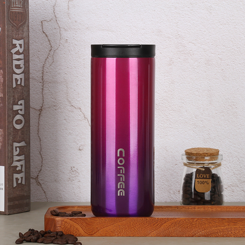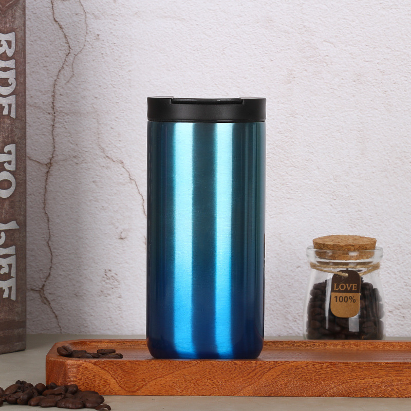 크리 에이 티브 한국 그라디언트 커피 컵 야외 휴대용 더블 스테인레스 스틸 컵 심플 진공 보온병 컵 도매