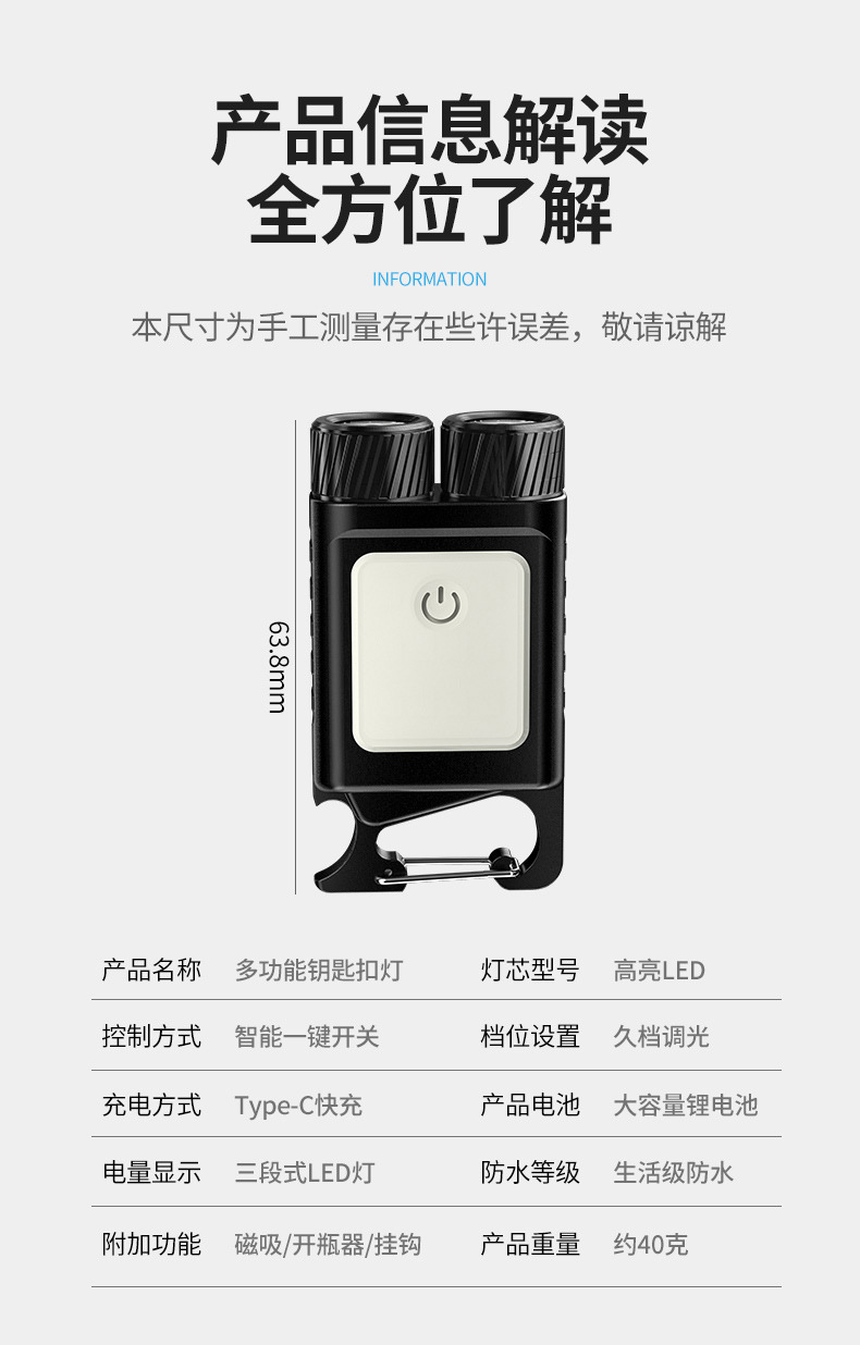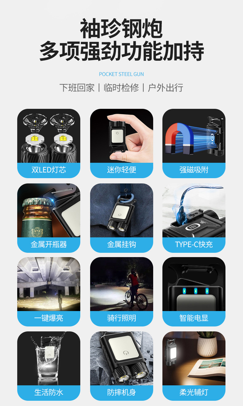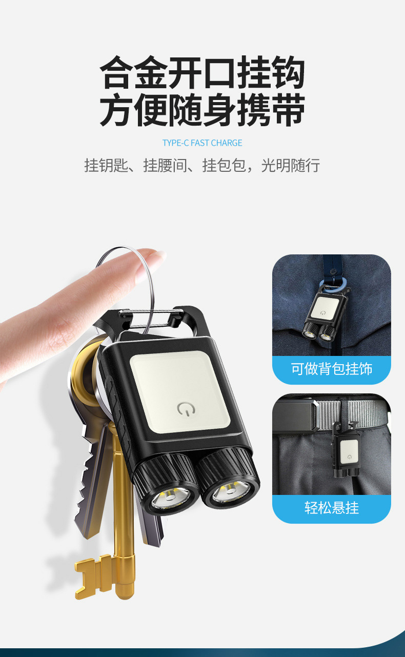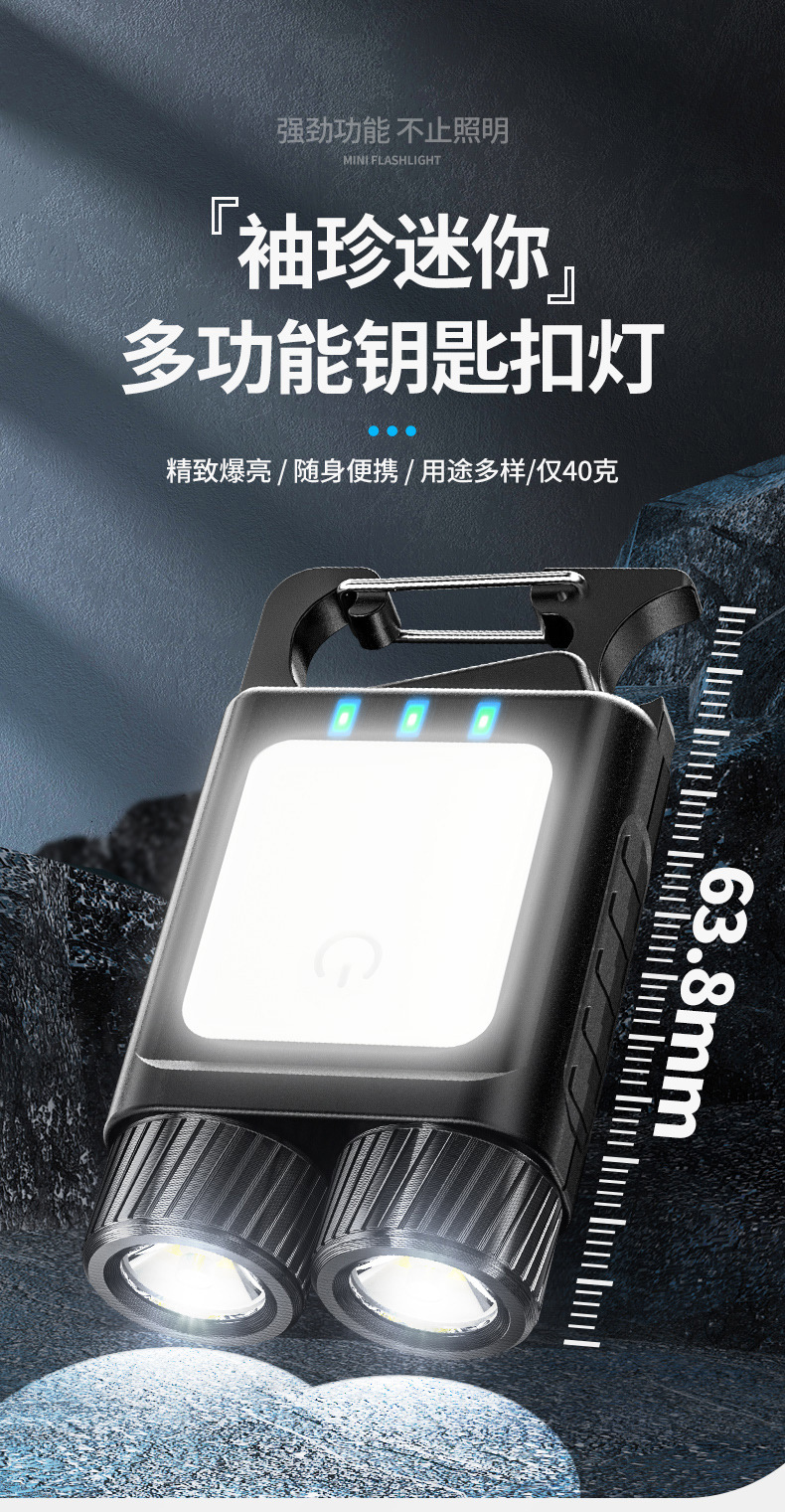 신다기능 강력 라이트 키 체인 더블 라이트 소형 손전등 충전 작업 비상 휴대 등 야외 캠핑 등