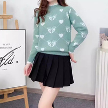 봄과 가을 새로운 긴 소매 니트웨어 플러스 사이즈 쉬폰 레이스 스티칭 스웨터베이스 느슨한 겉옷 얇은 낮은 크루넥스토어 가기