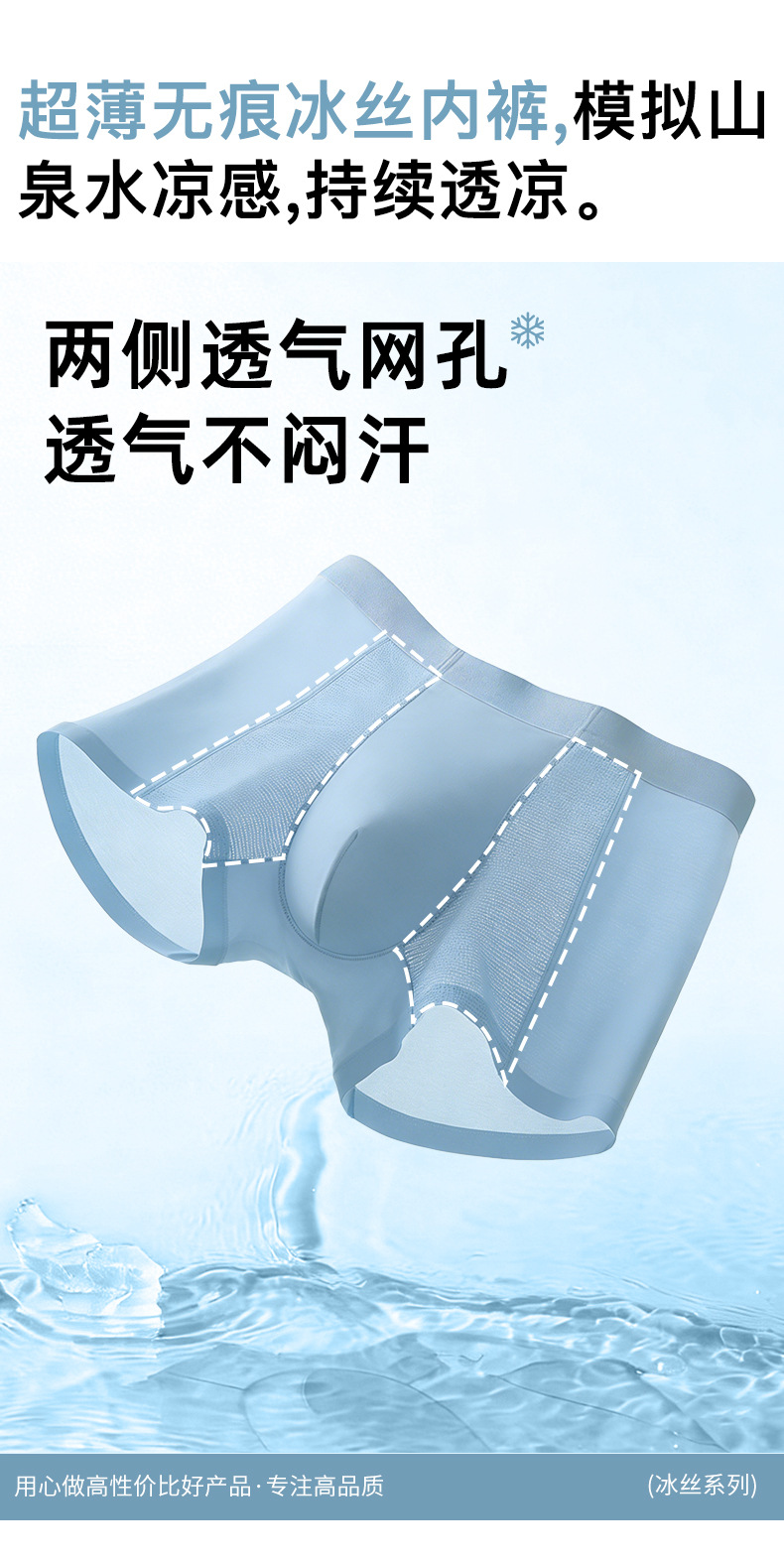 얇고 고품질의 여름용 경량 에어컨 팬츠 남성용 속옷 무봉제 아이스 실크 사각팬츠 라이브 방송 도매스토어 가기