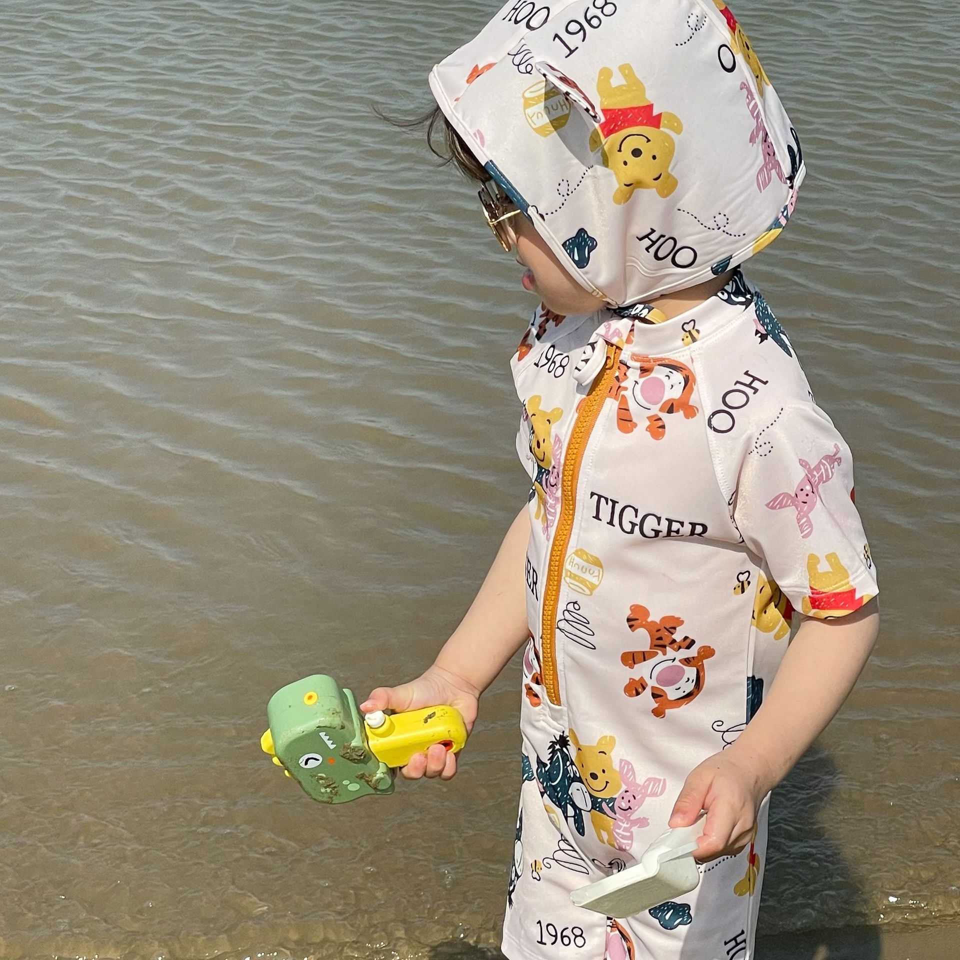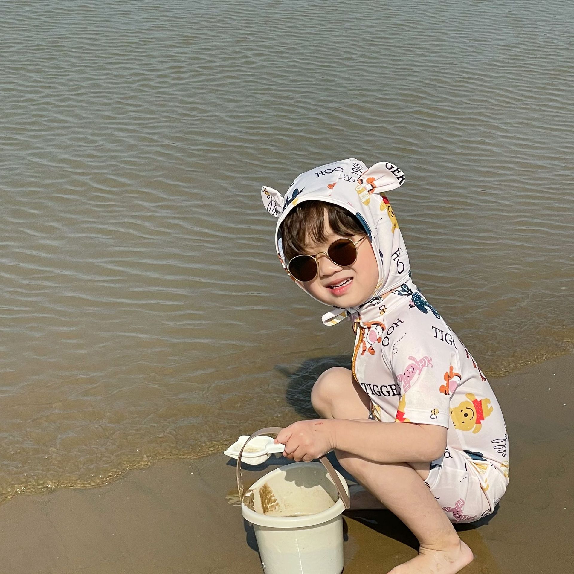 2025 한국판 아동 수영복 남아 여아 원피스 속건 휴가 수영복 귀여운 곰돌이 푸 수영복스토어 가기