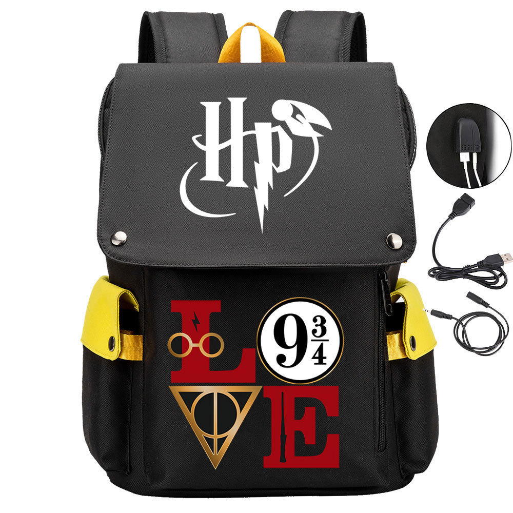 매직 아카데미 인쇄 USB 충전식 헤드 청소년 학생 책가방 남여 공용 배낭