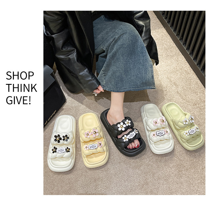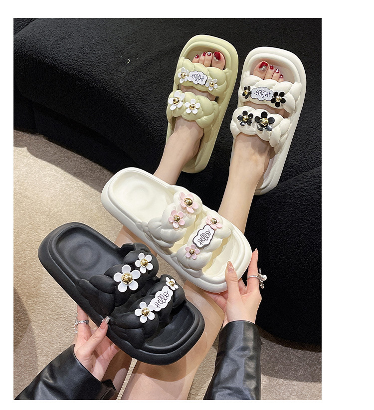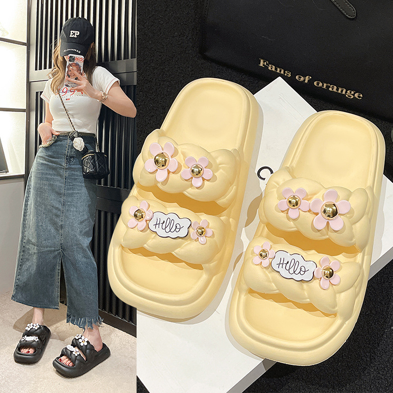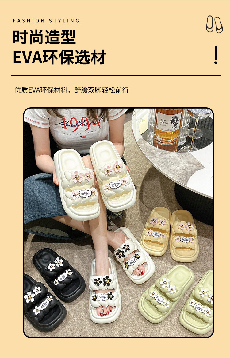 샌들과 슬리퍼 여성용 여름 패션 겉옷 가정용 귀여운 꽃 슬리퍼 EVA 슬립온 느낌 미끄럼 방지 욕실 음소거