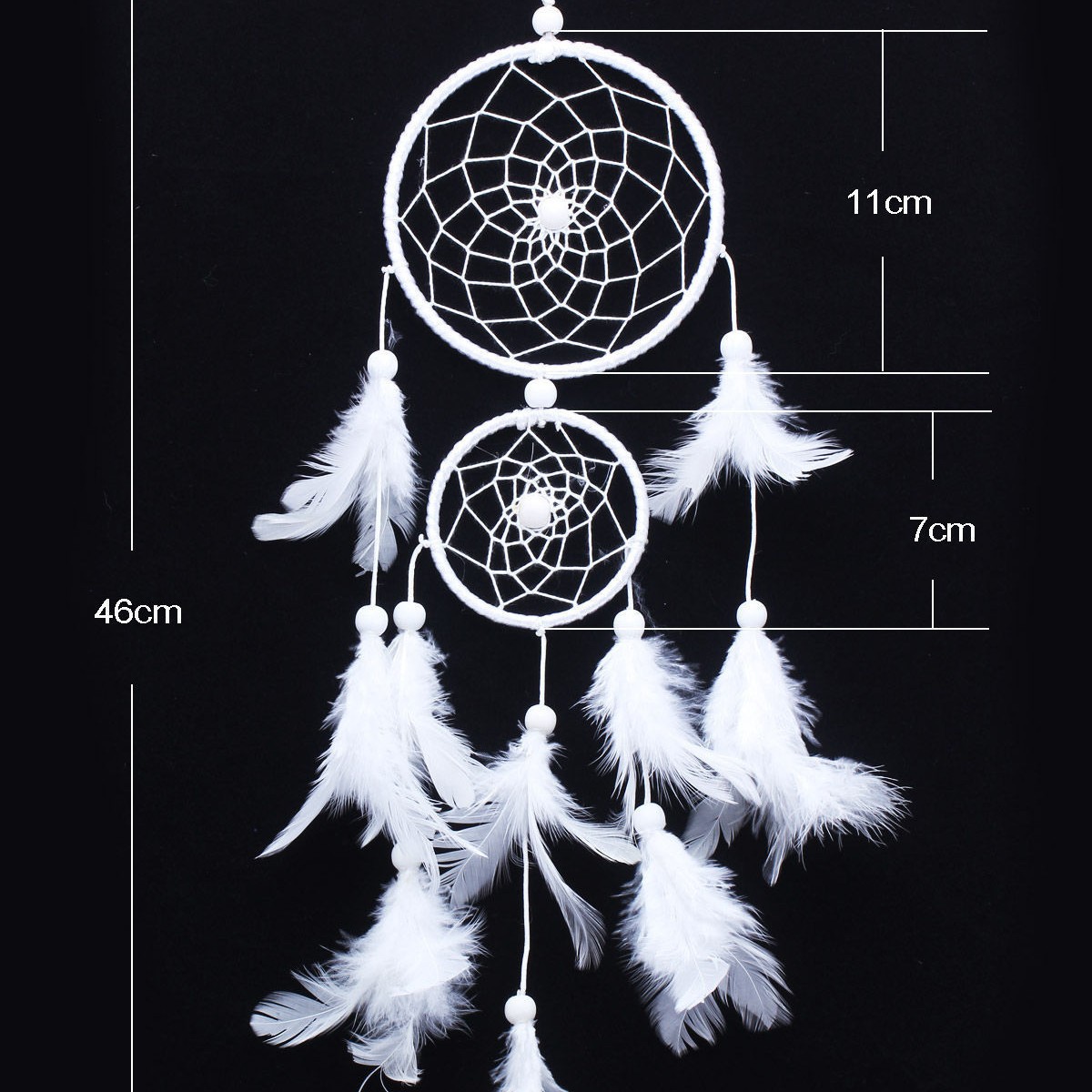 화이트 2 링 드림 캐쳐 홈 장식품 웨딩 장식 깃털 공예 바람 차임 펜던트 선물 XR067