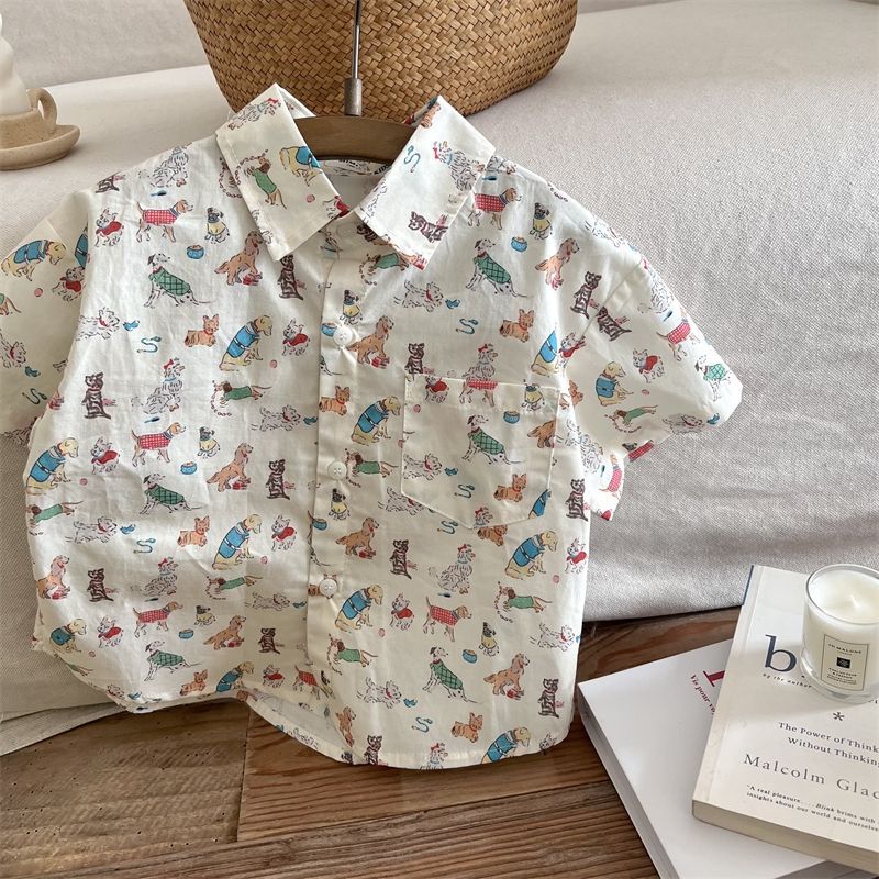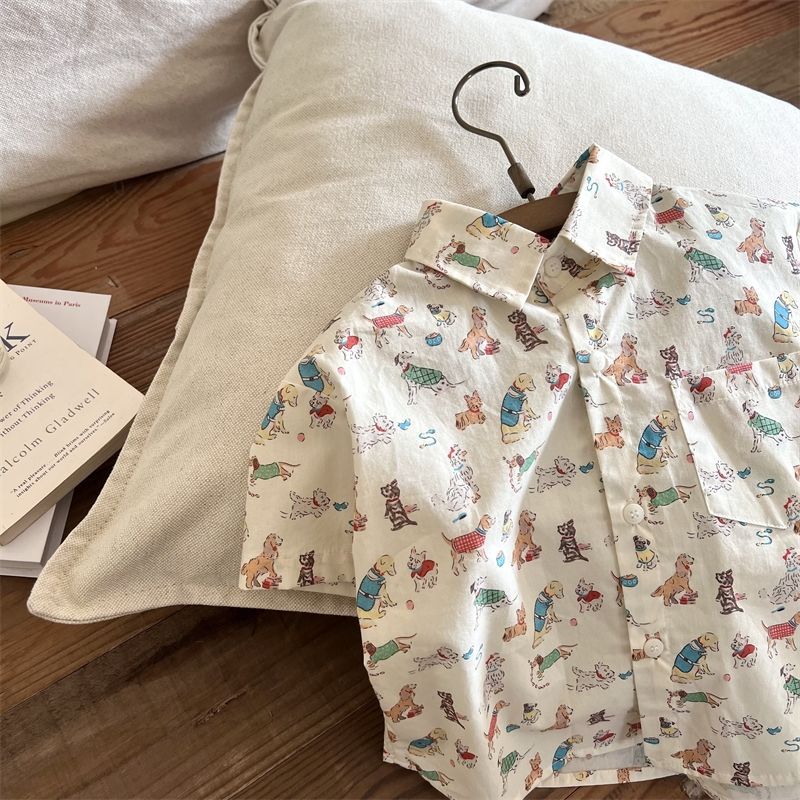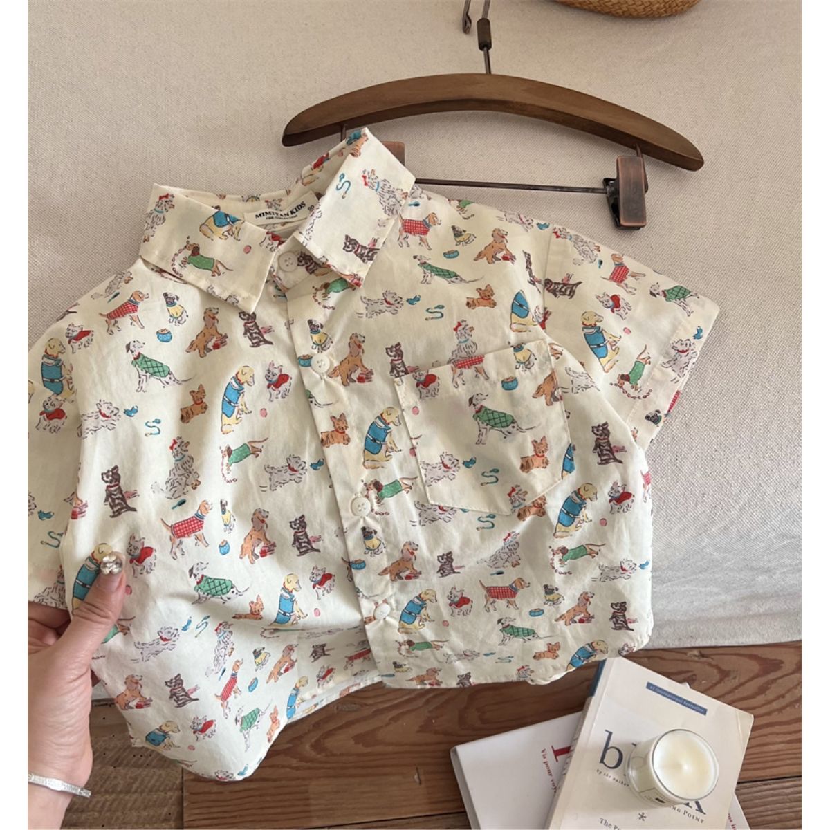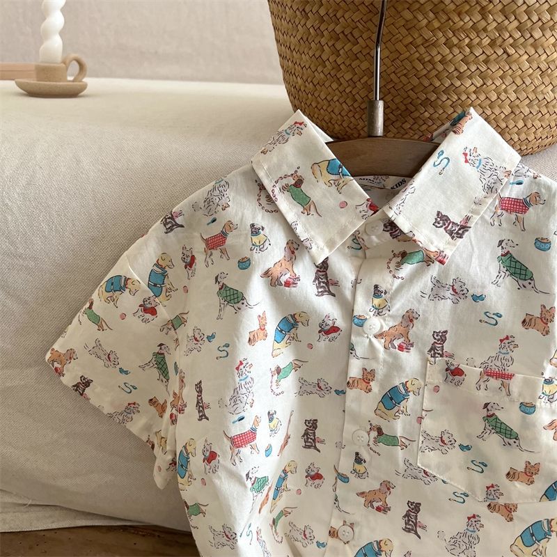 어린이 셔츠 2024 여름 스타일 소년과 소녀 강아지 전체 인쇄 만화 셔츠 아기 캐주얼 셔츠 반팔 유행스토어 가기