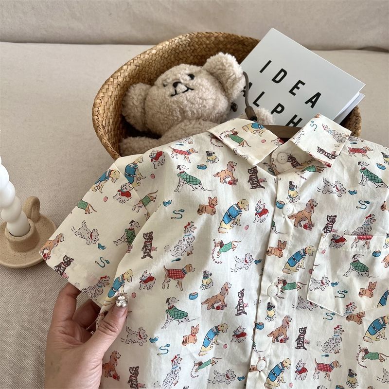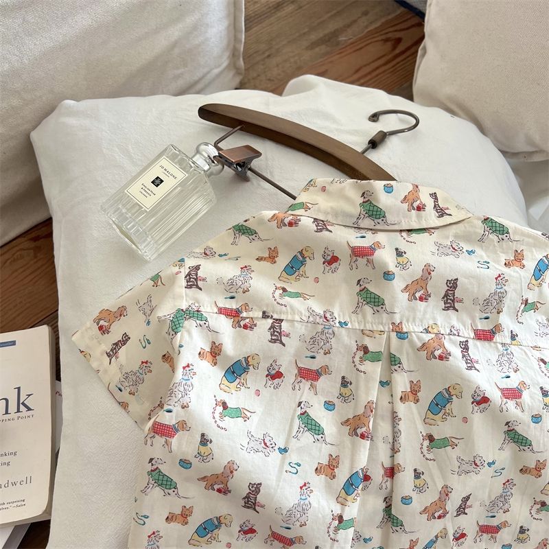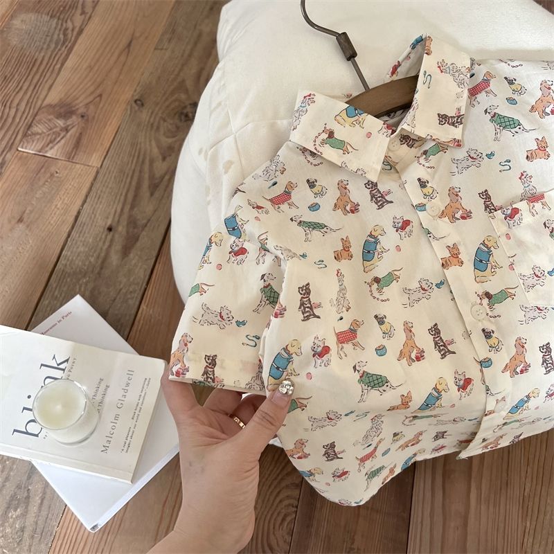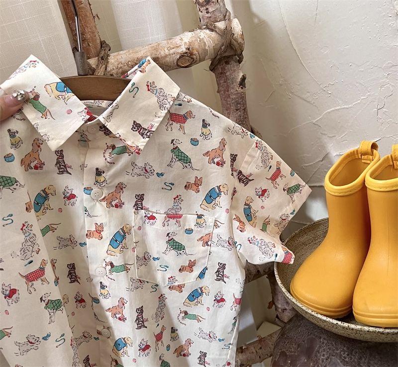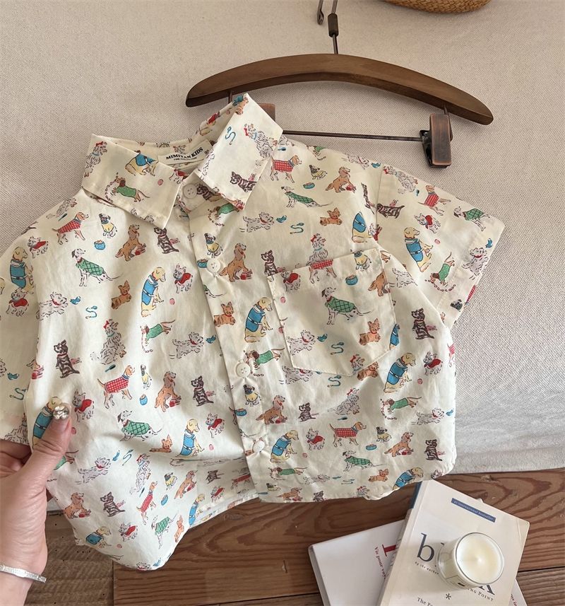 어린이 셔츠 2024 여름 스타일 소년과 소녀 강아지 전체 인쇄 만화 셔츠 아기 캐주얼 셔츠 반팔 유행스토어 가기