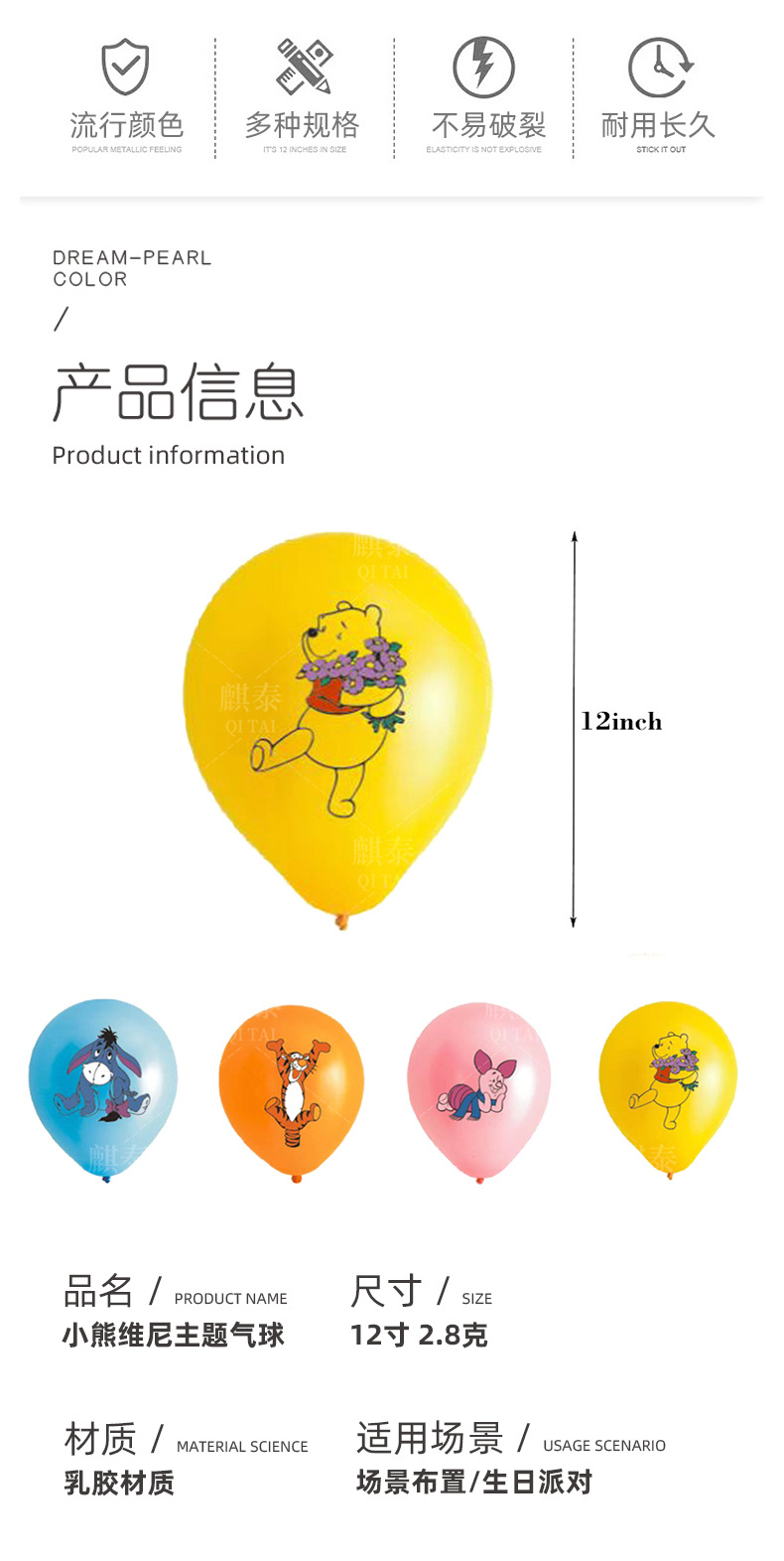 크로스 보더 곰돌이 푸 테마 풍선 생일 파티 장식 호랑이 곰돌이 푸 라텍스 풍선 세트