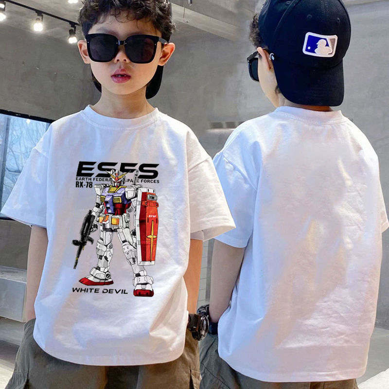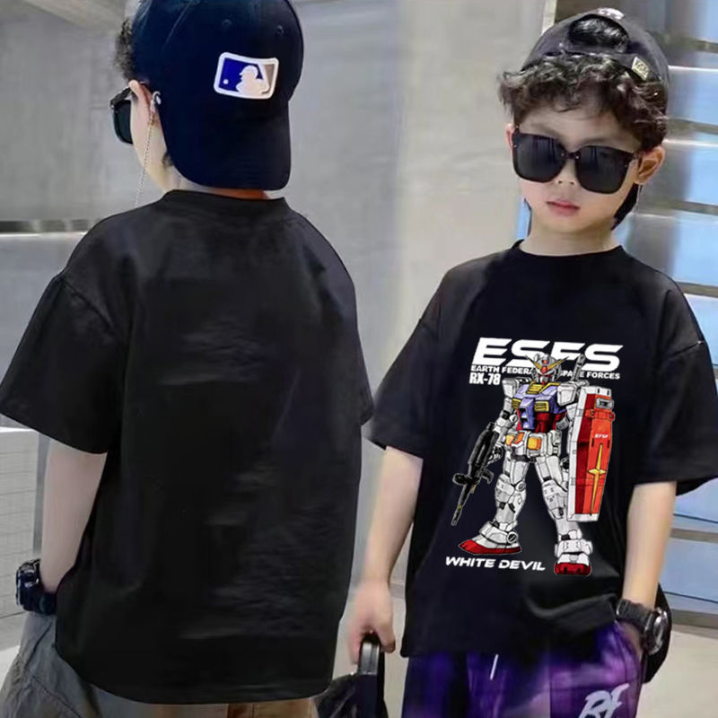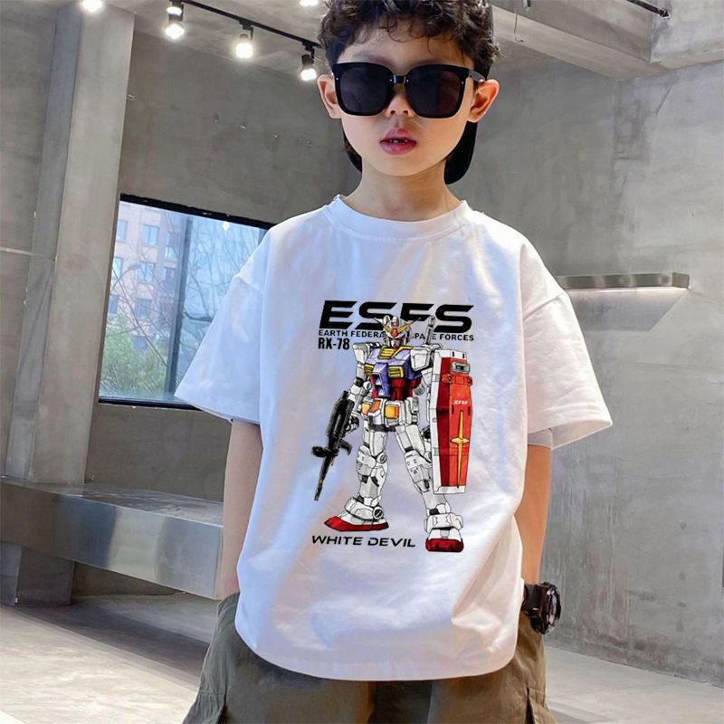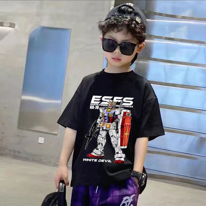건담 메카 카툰 프린트 남아 반팔 순면 티셔츠 여름 중년 아동 트렌디 캐주얼 탑 의류스토어 가기