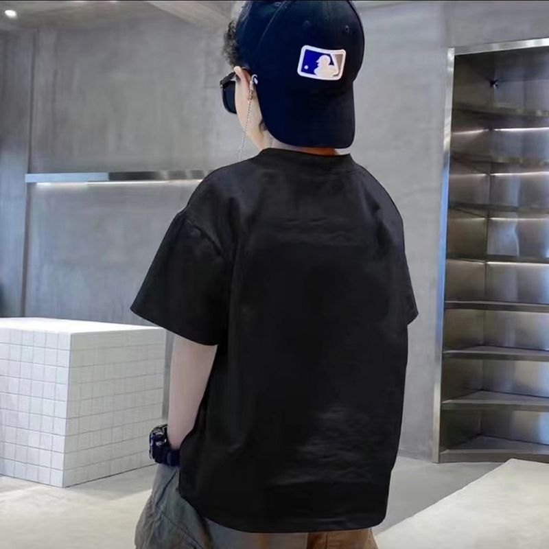 건담 메카 카툰 프린트 남아 반팔 순면 티셔츠 여름 중년 아동 트렌디 캐주얼 탑 의류