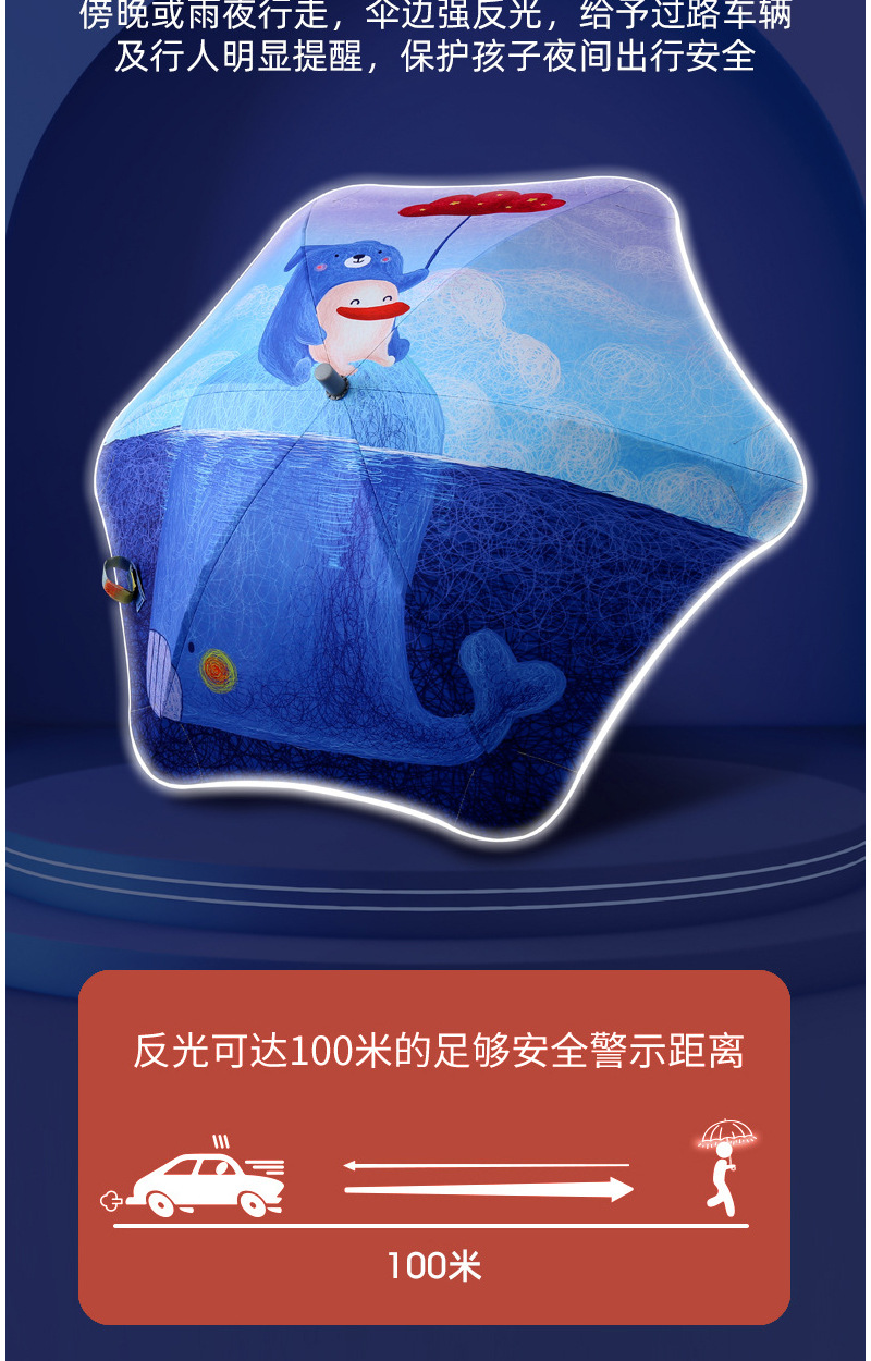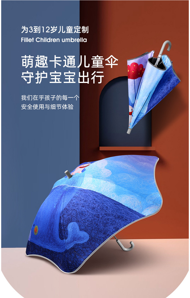 새로운 만화 안전 필렛 햇살과 비 방지 이중 목적 우산 초등학생을위한 강력한 반사 어린이 우산 광고