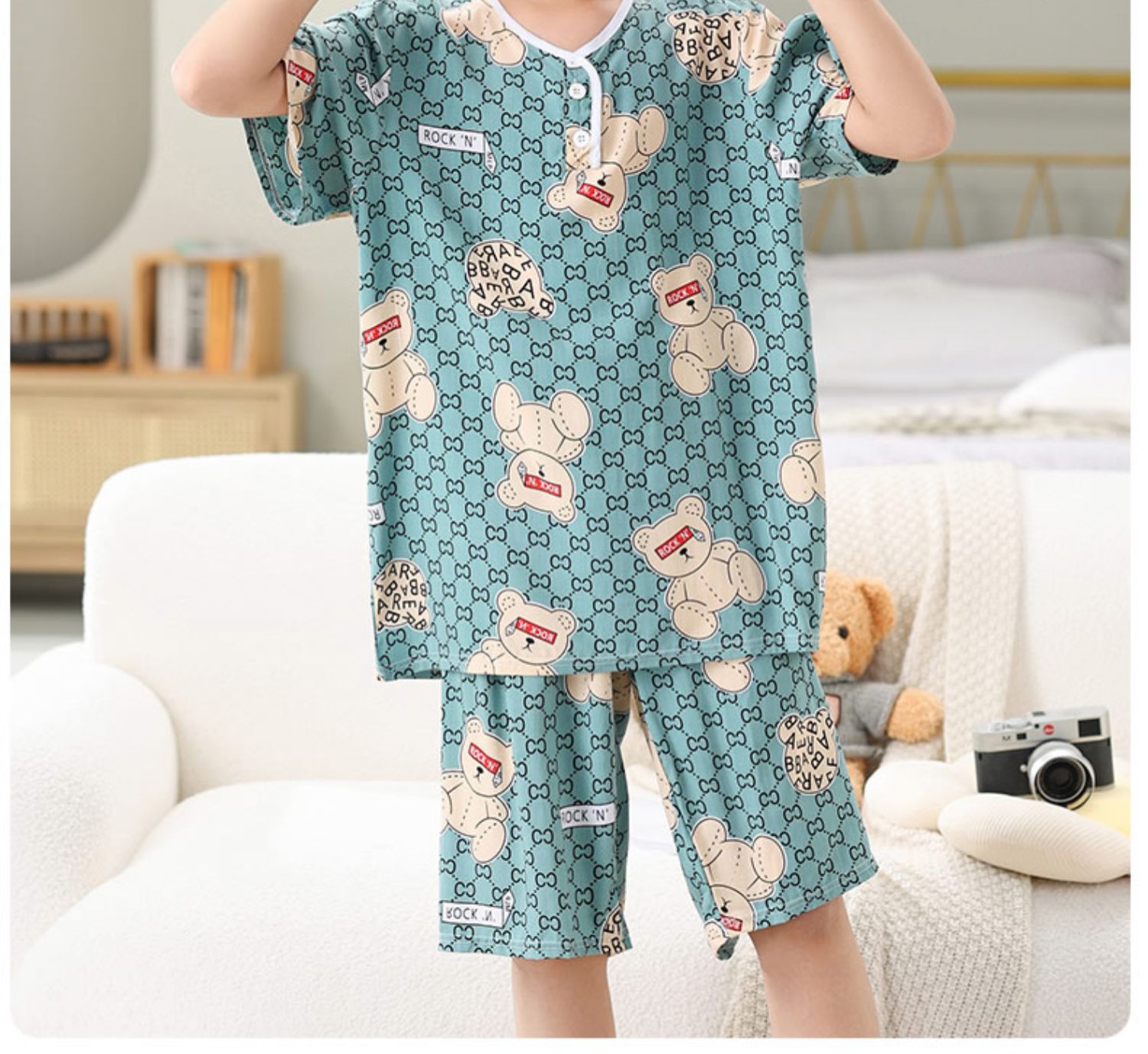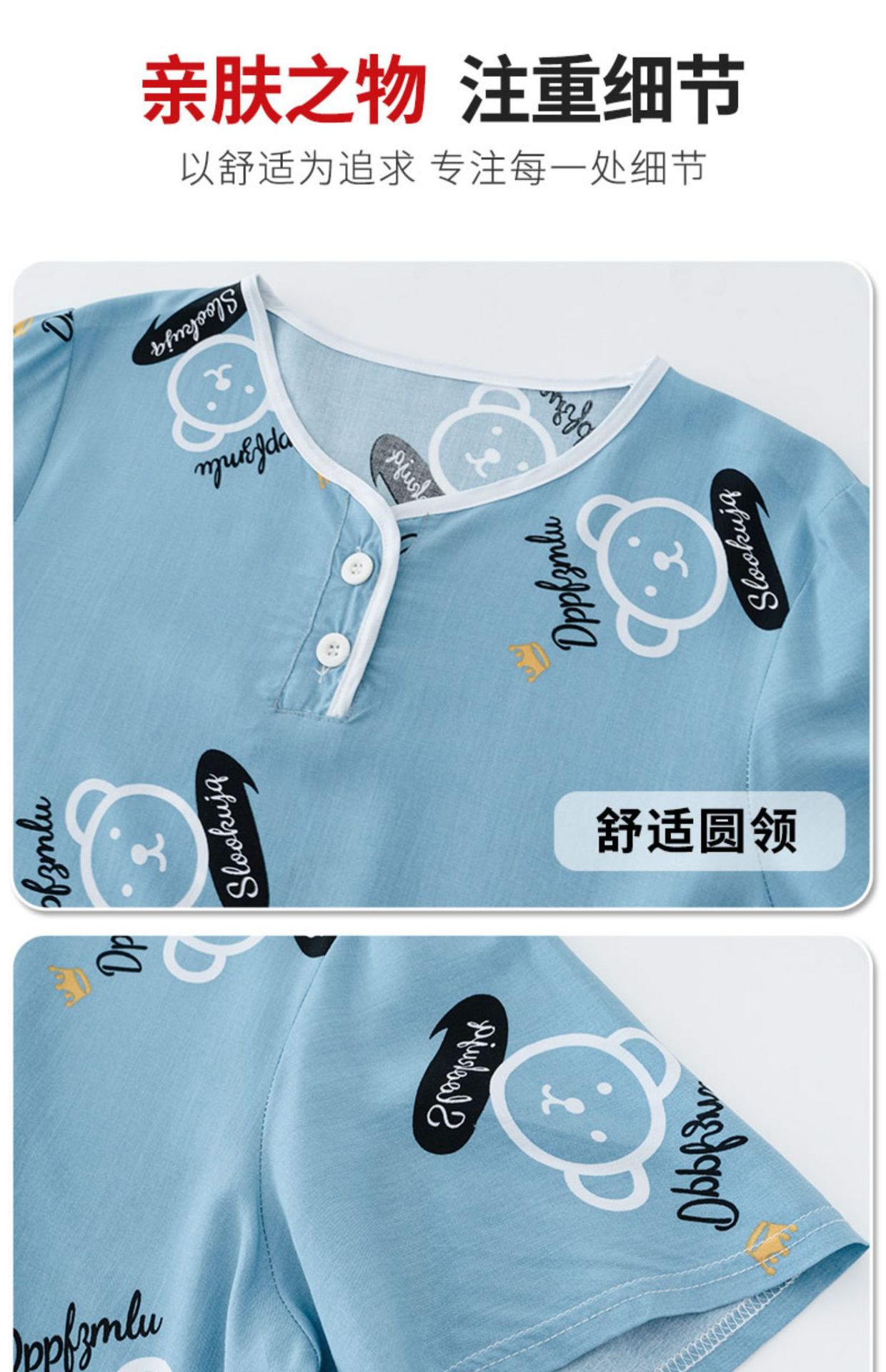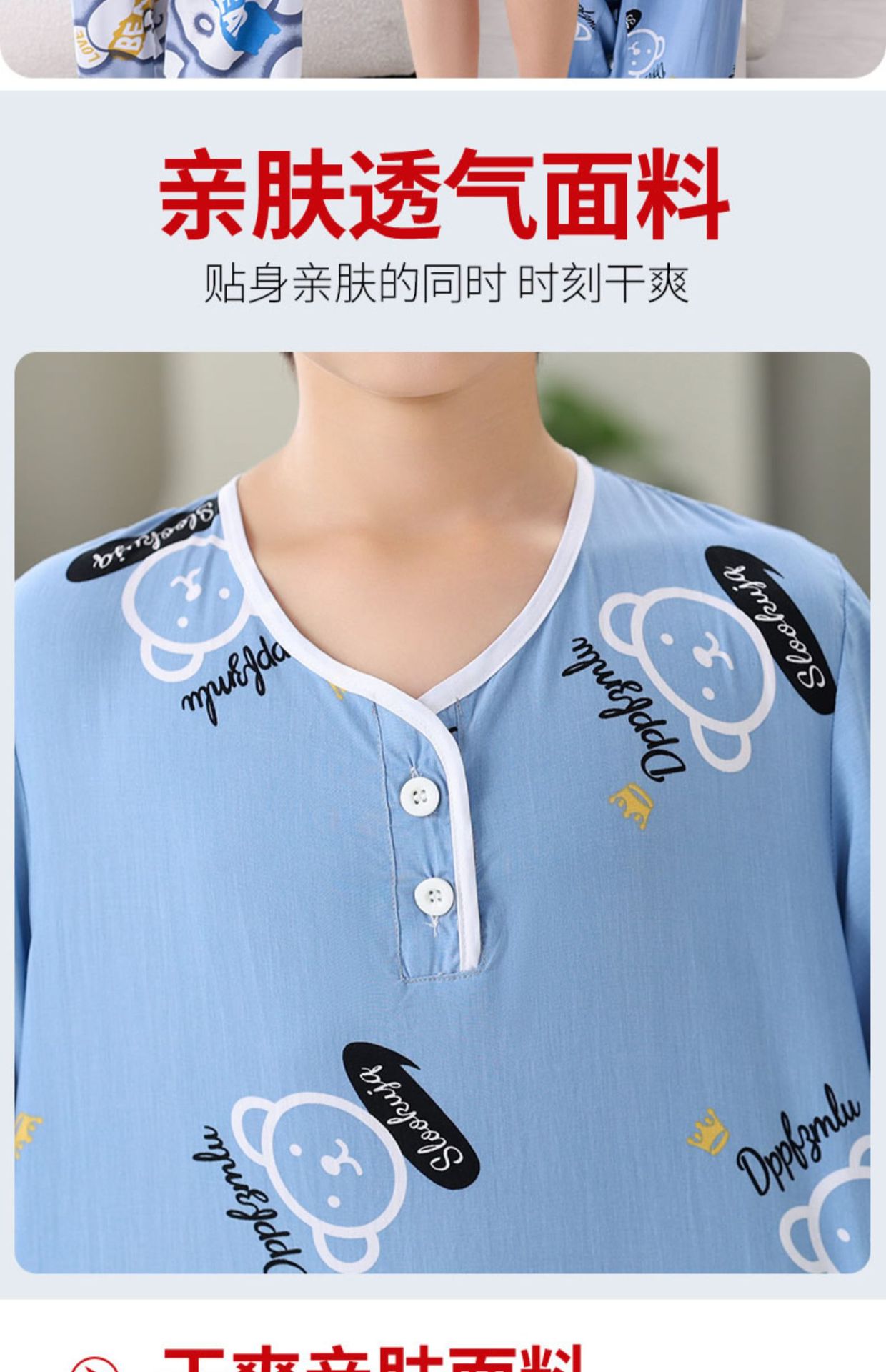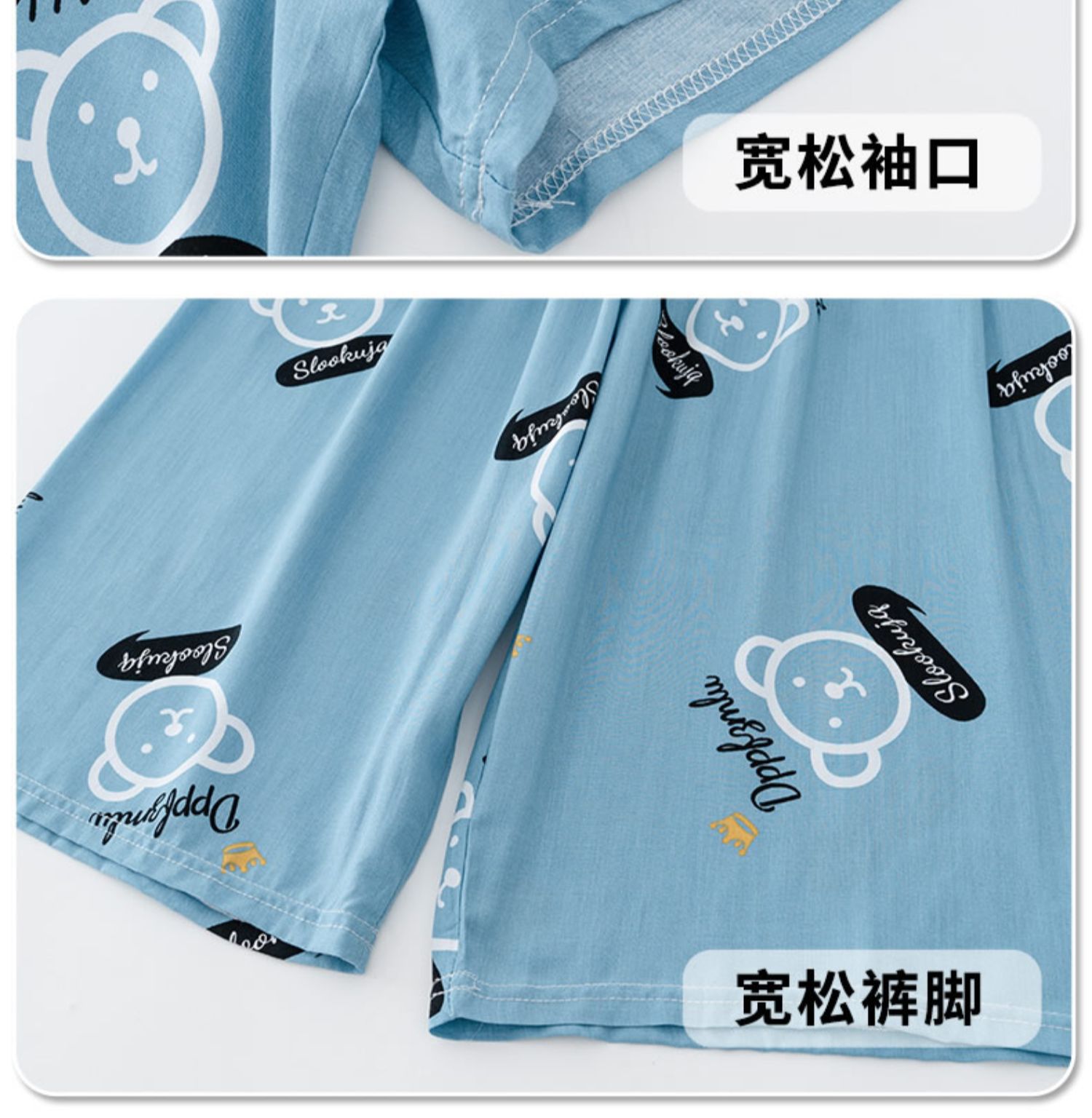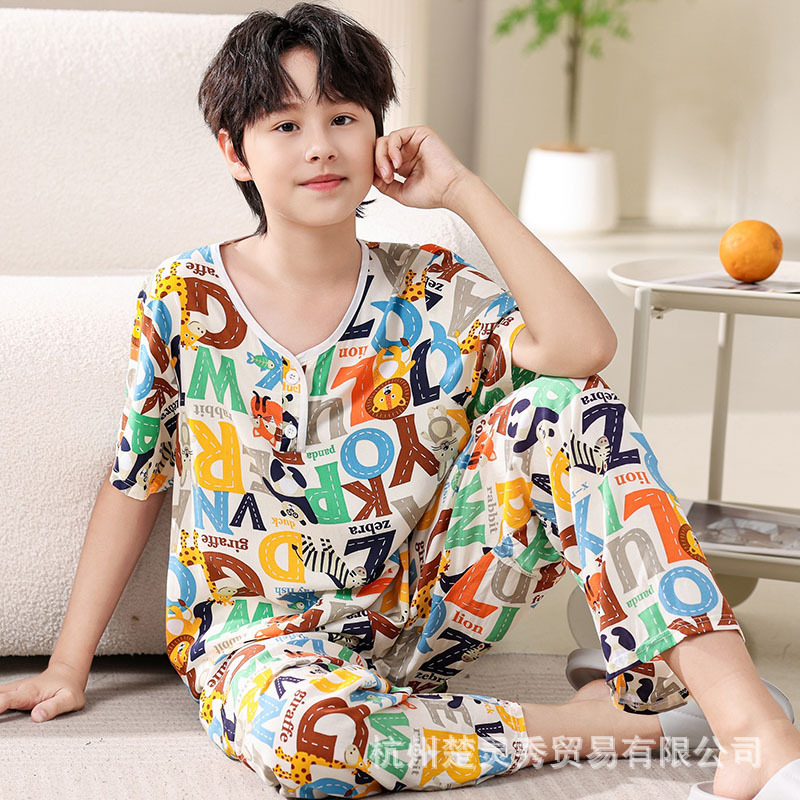 십대 면 실크 잠옷 남자의 중학교 긴 소매 세트 느슨한 면 실크 에어컨 세트 여름 얇은 중대형 어린이스토어 가기