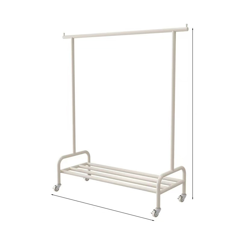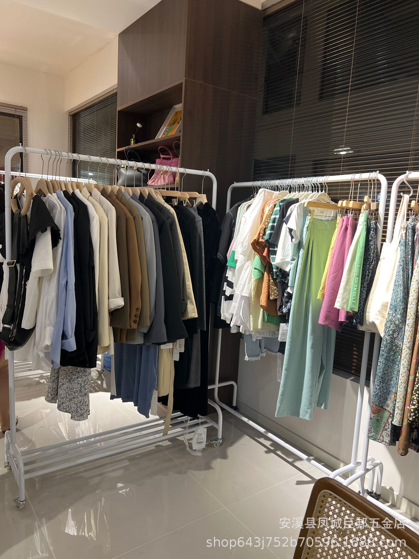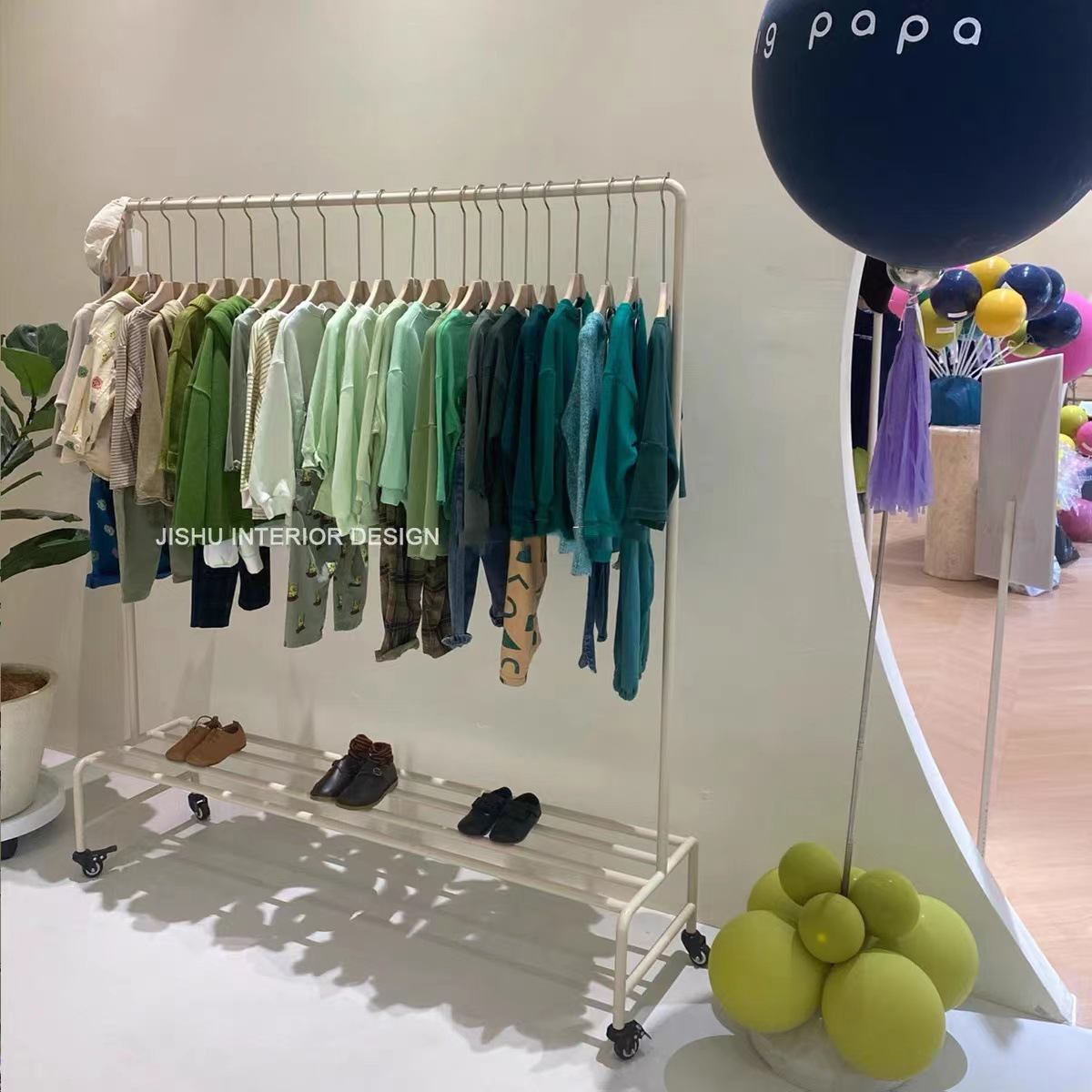 바퀴 달린 크림 스타일의 흰색 의류 진열대 아동 의류 모바일 선반 여성 의류 매장 바닥 스테인레스 스틸 행거