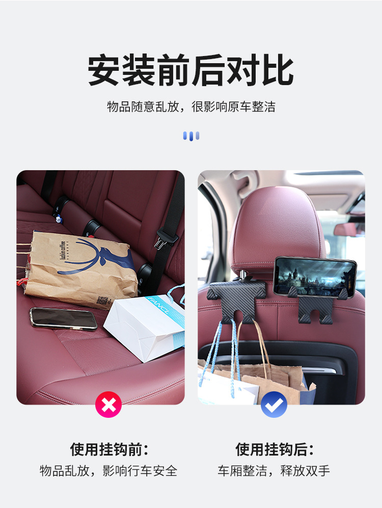 새로운 자동차용 시트 등받이 후크 브래킷, 편리한 숨겨진 목 베개 수납 공간, 자동차 등받이, 휴대폰 숨겨진 디자인스토어 가기