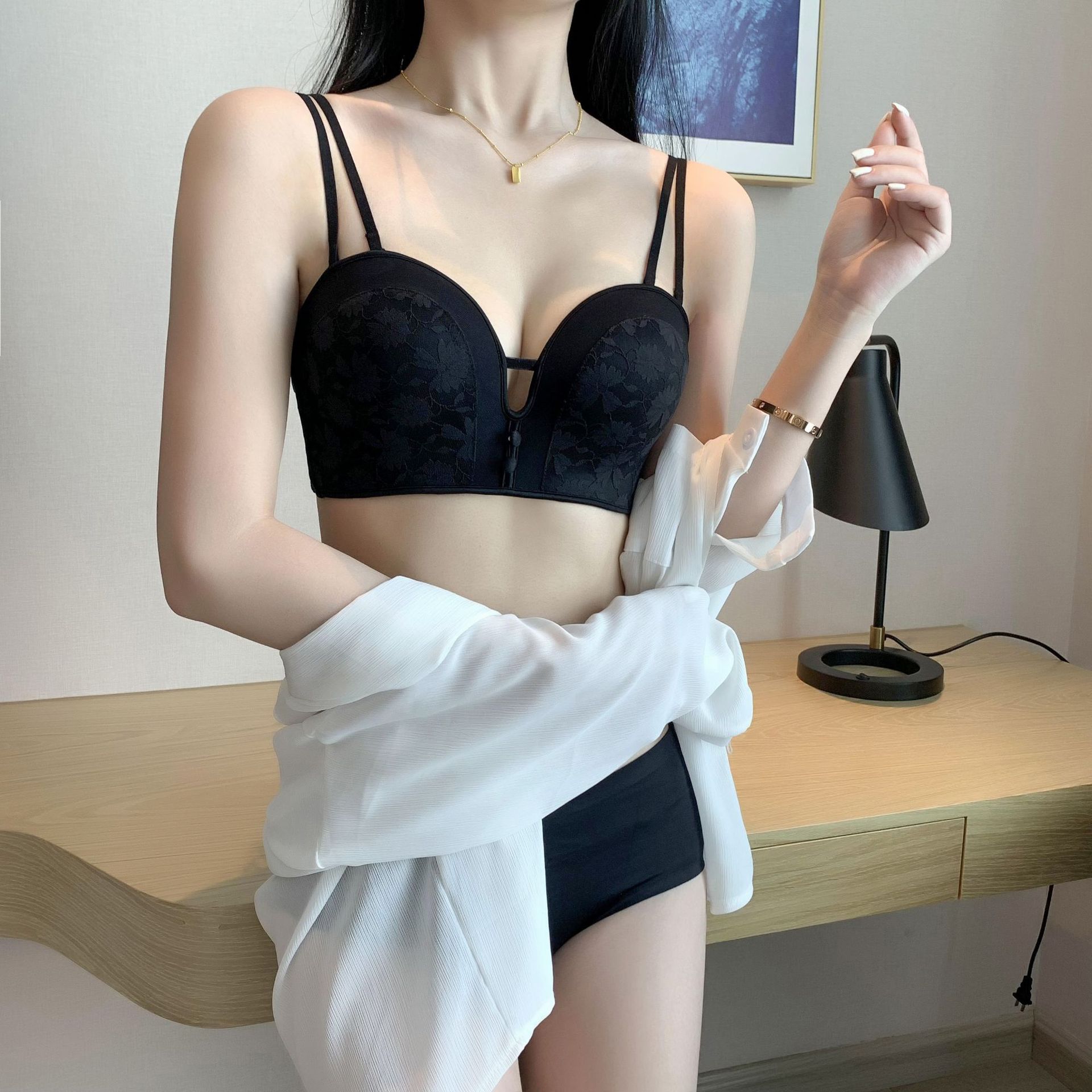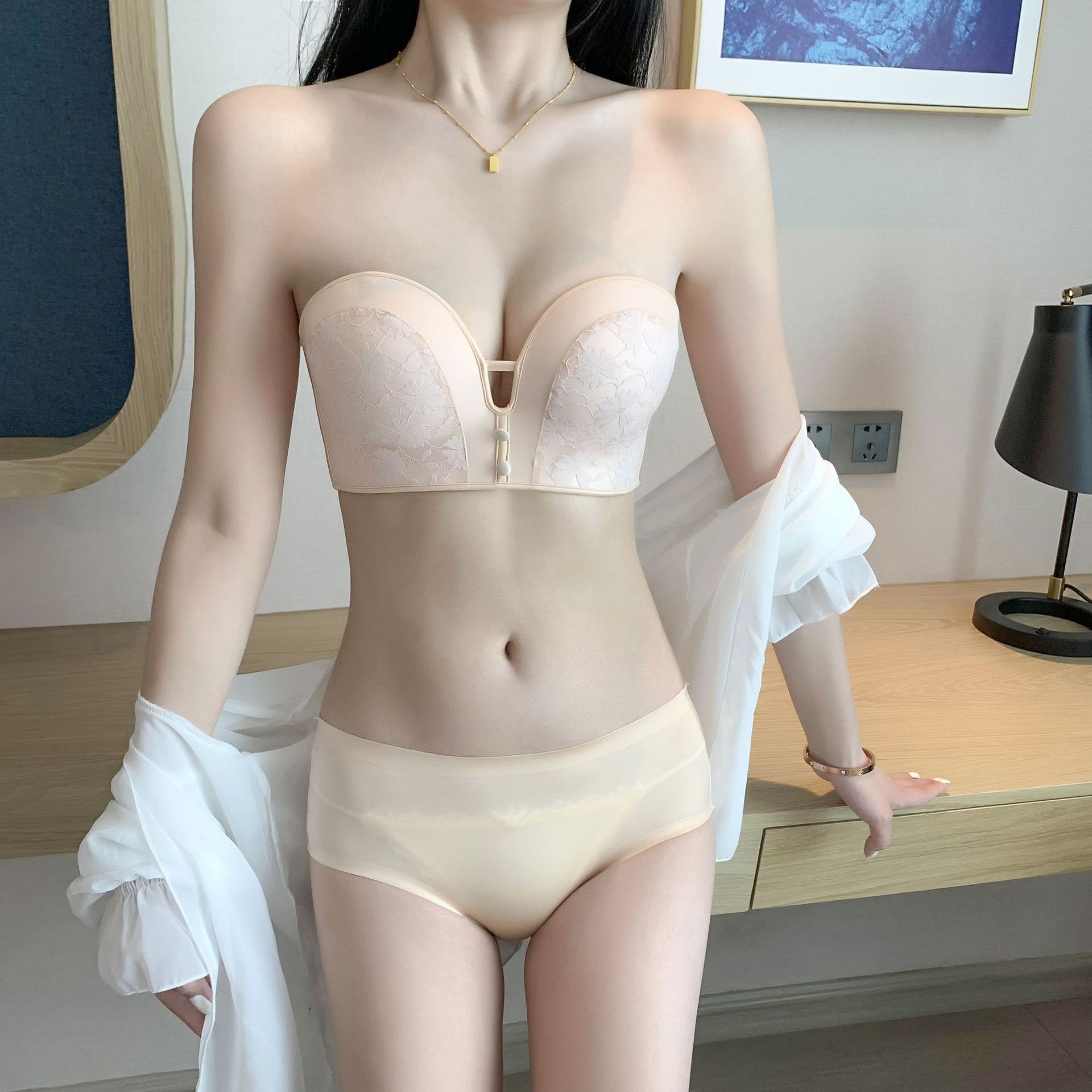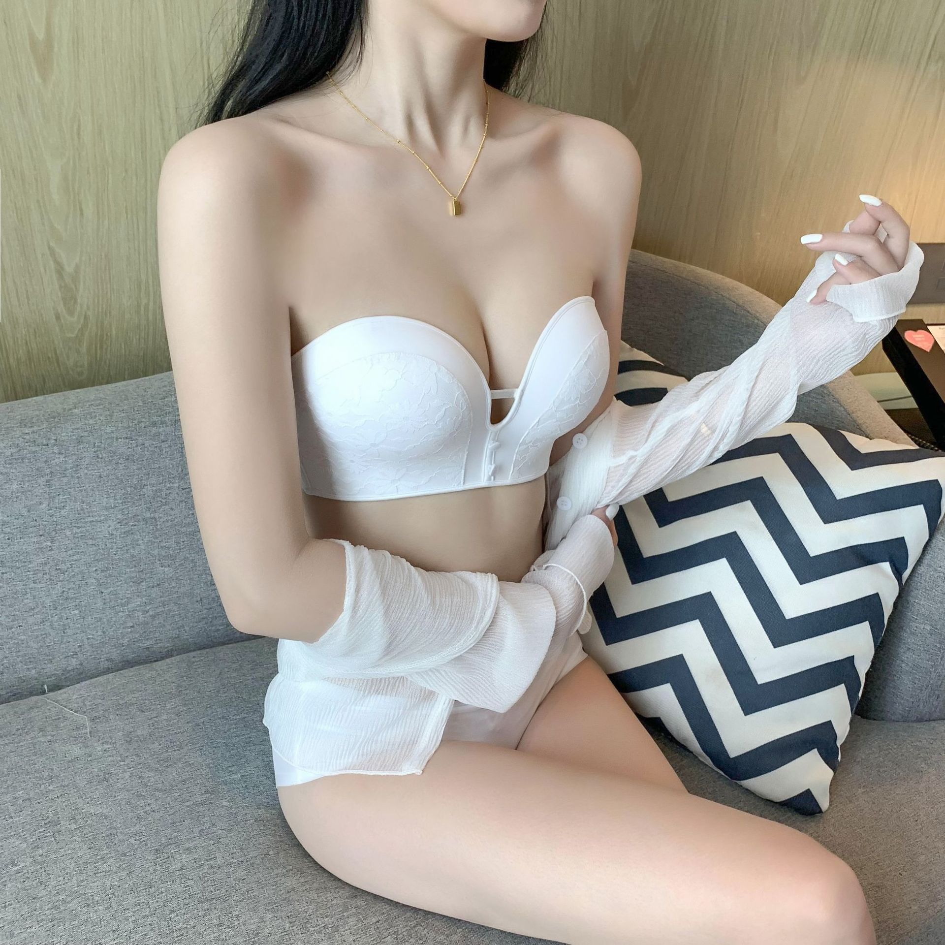 작은 가슴 푸시 업 끈이없는 속옷 여자의 두꺼운 미끄럼 방지 웨딩 원피스 보이지 않는 아름다운 뒤 튜브 탑 젊은 여자의 브래지어스토어 가기