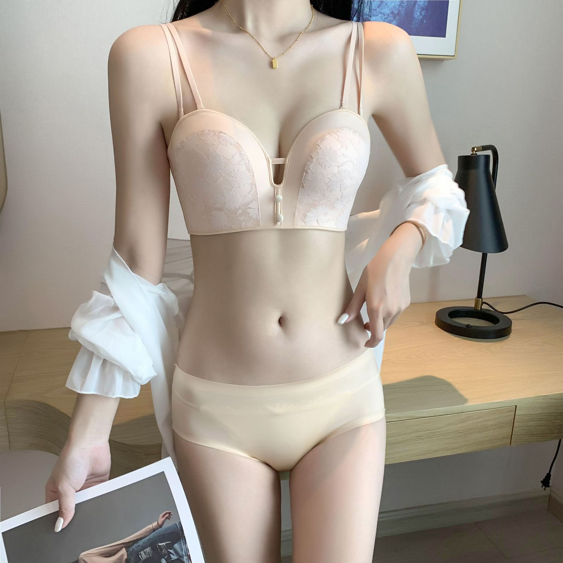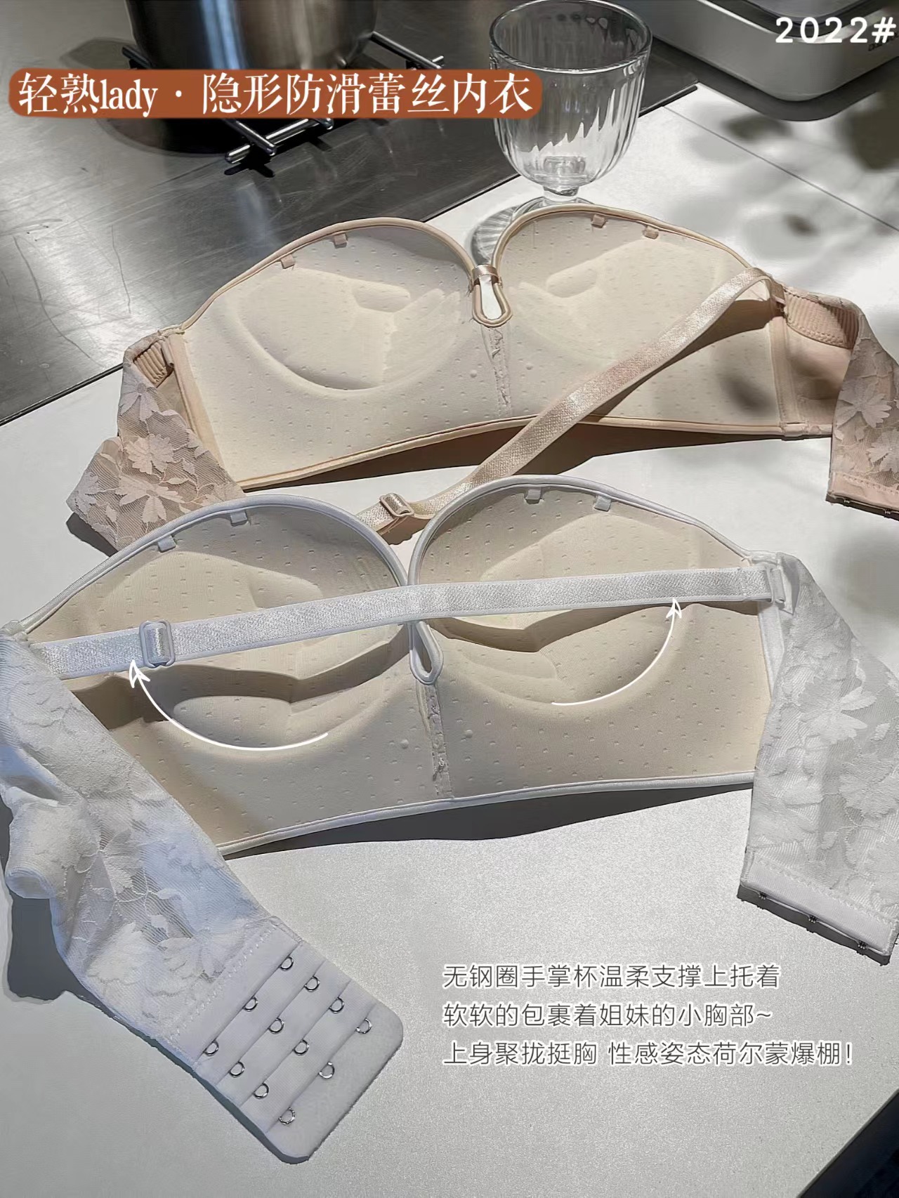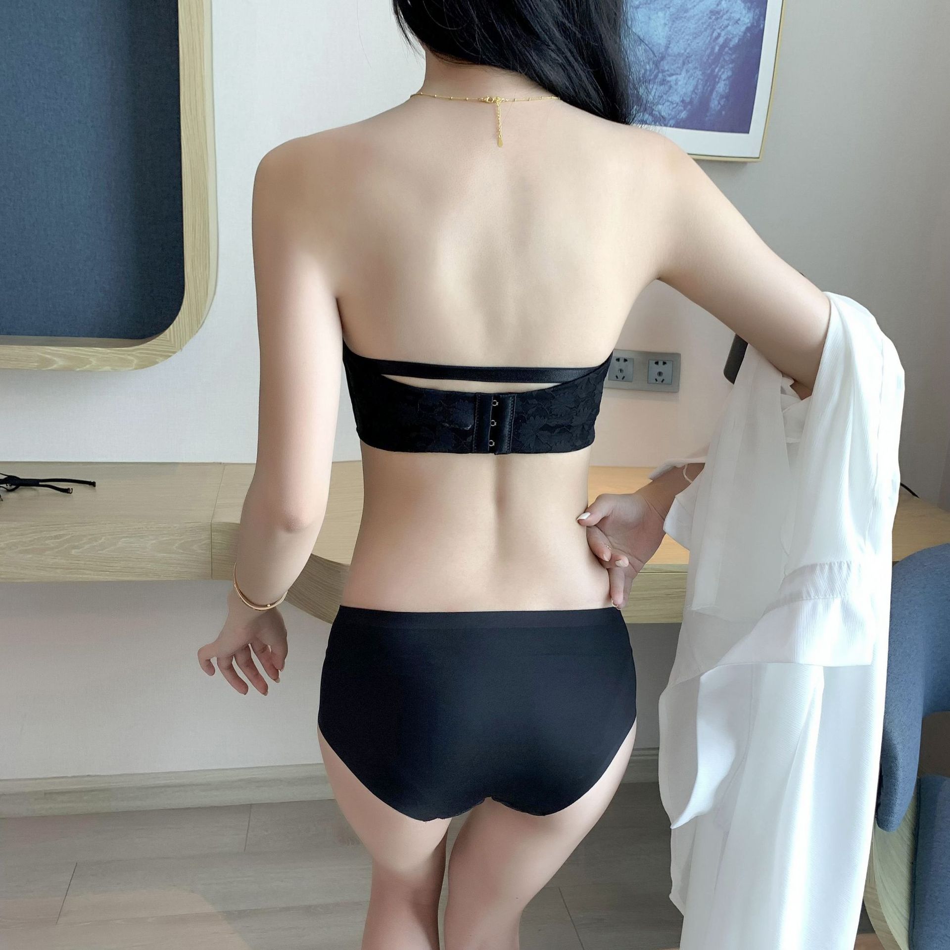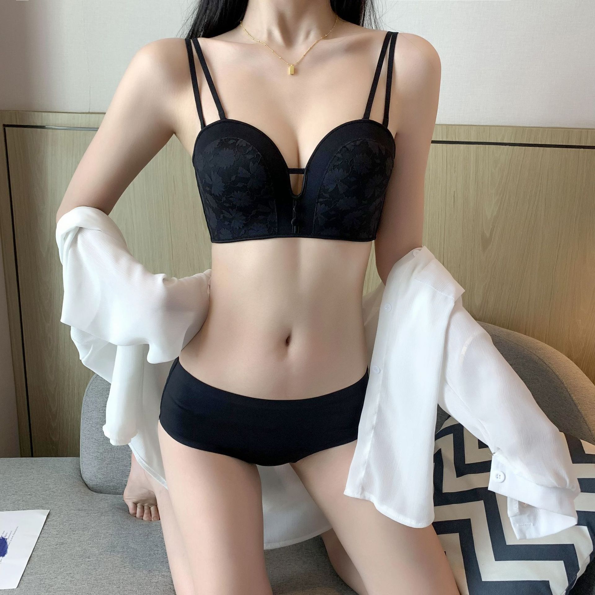 작은 가슴 푸시 업 끈이없는 속옷 여자의 두꺼운 미끄럼 방지 웨딩 원피스 보이지 않는 아름다운 뒤 튜브 탑 젊은 여자의 브래지어스토어 가기
