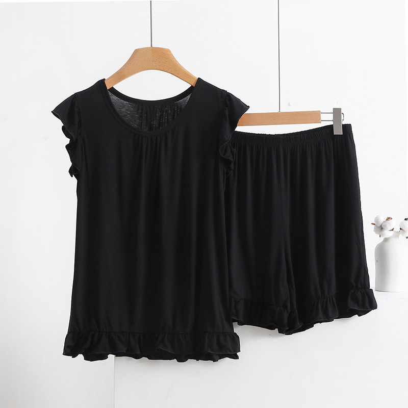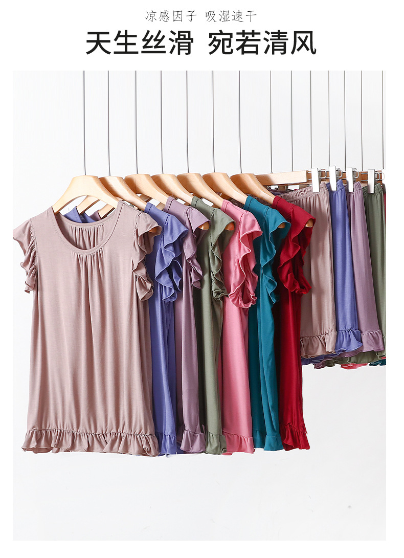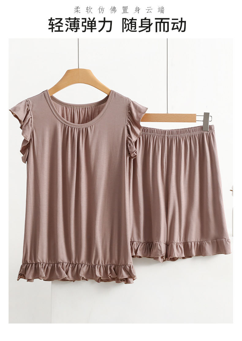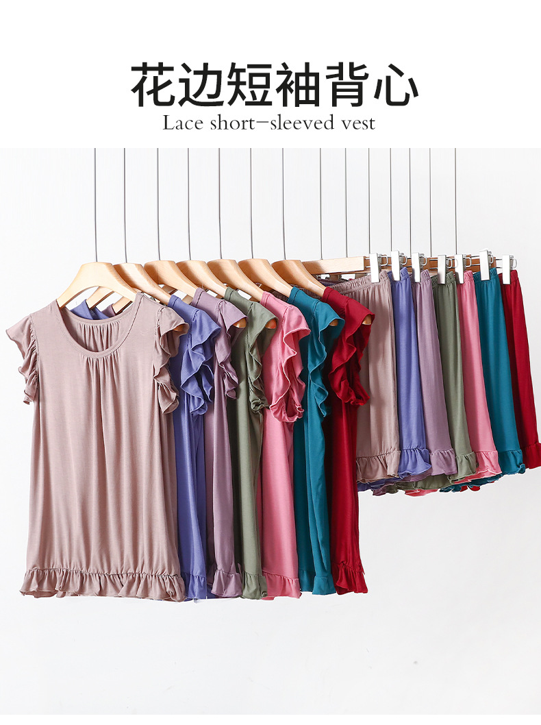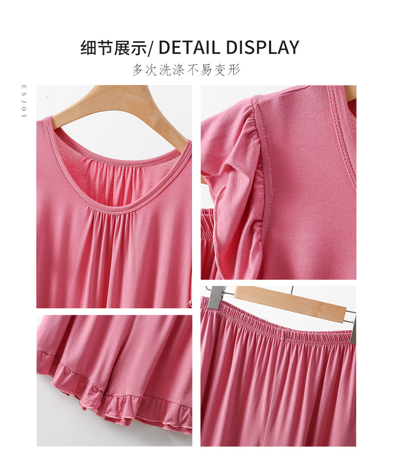 조끼 반바지 가정 의류 세트 200kg 모달 투피스 여성 여름 플러스 사이즈 레이스 잠옷 느슨한 얇은스토어 가기