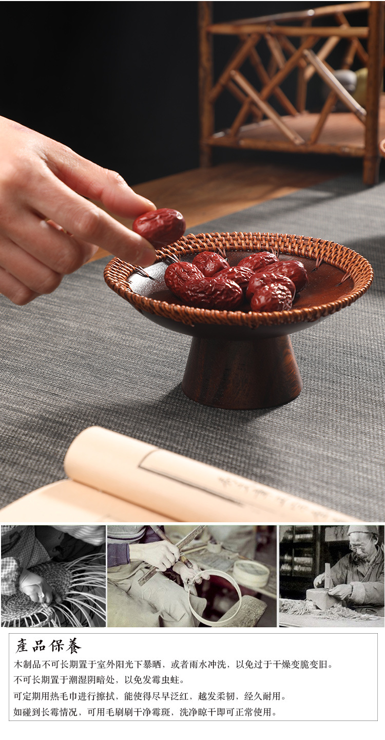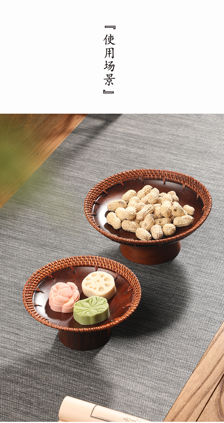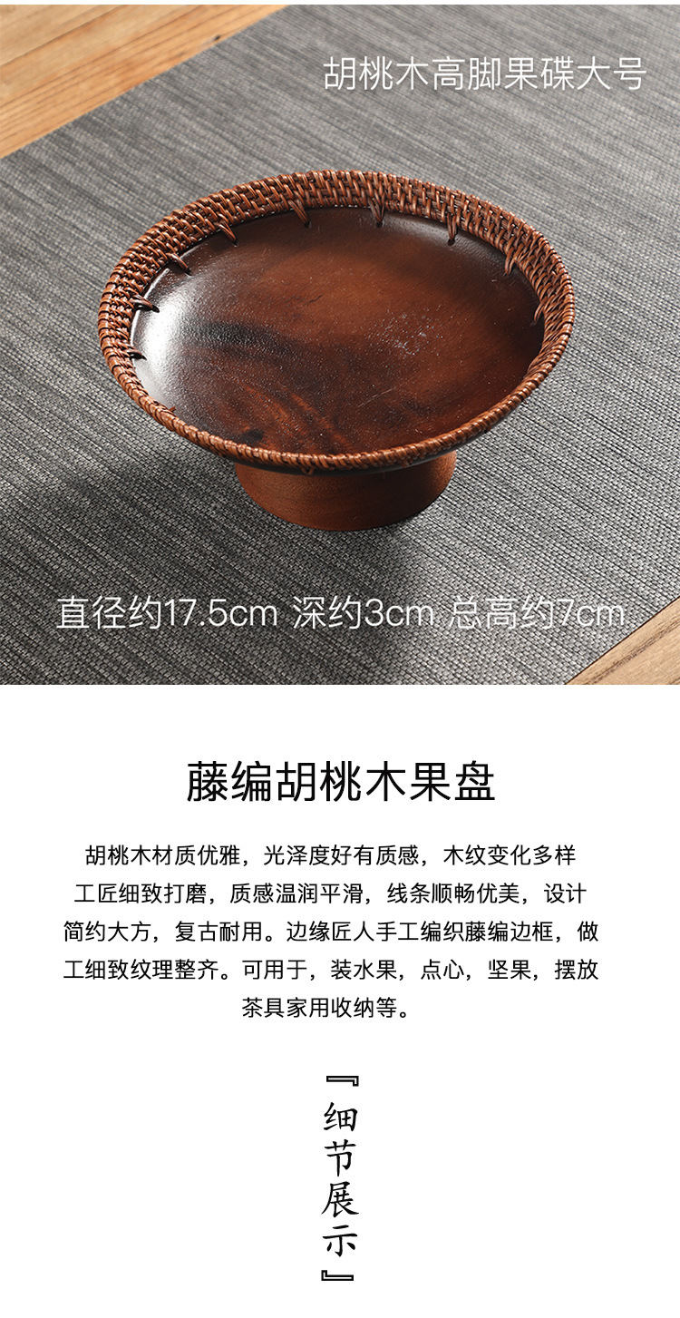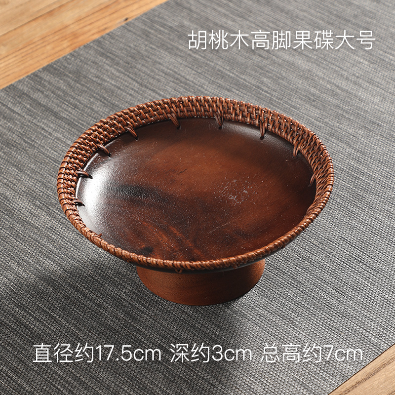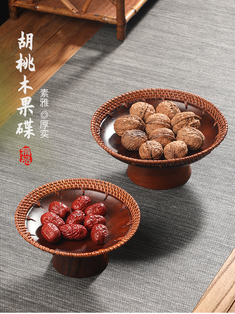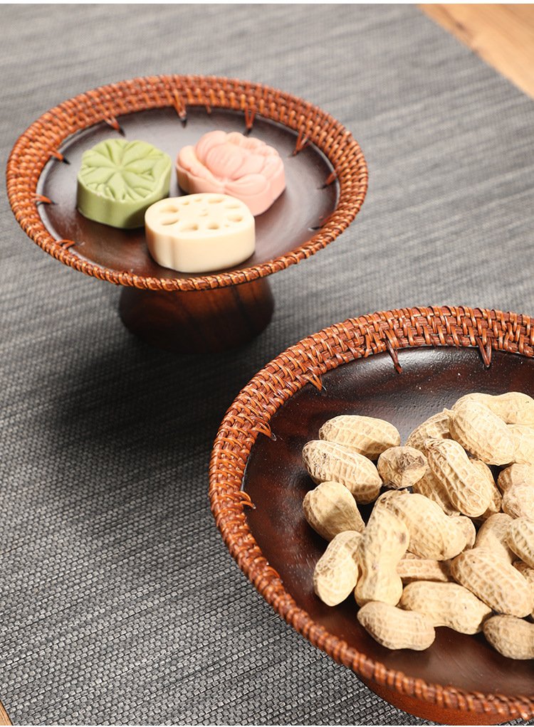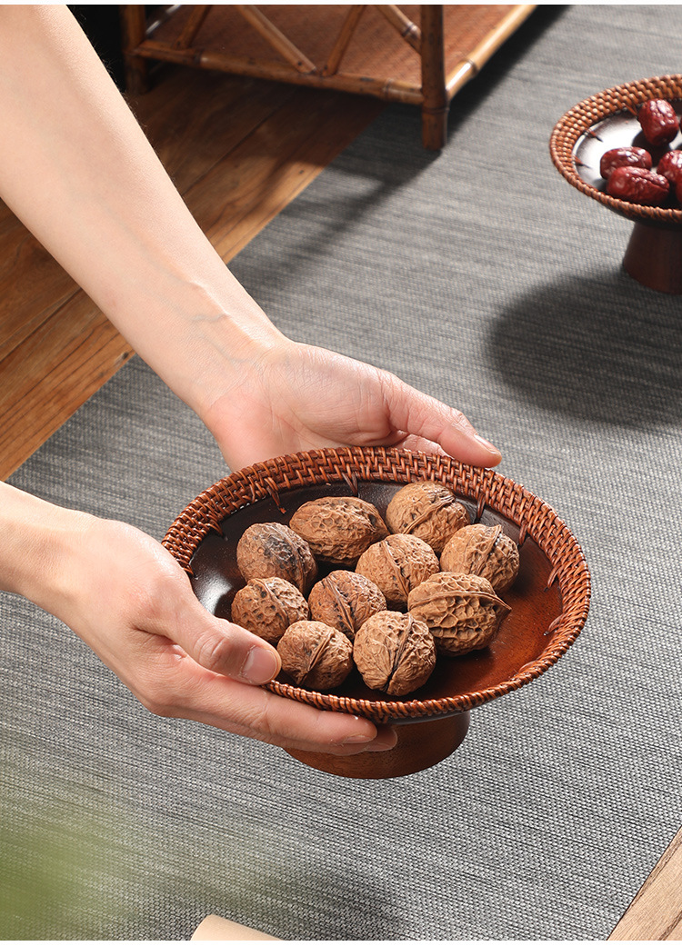 수제 등나무 키 큰 호두 과일 접시 중국 단단한 나무 딤섬 바구니 멜론 씨앗 접시 과자 말린 과일 차 보관 바구니스토어 가기
