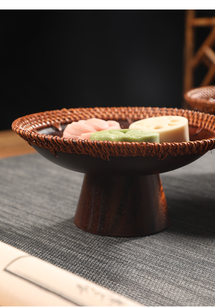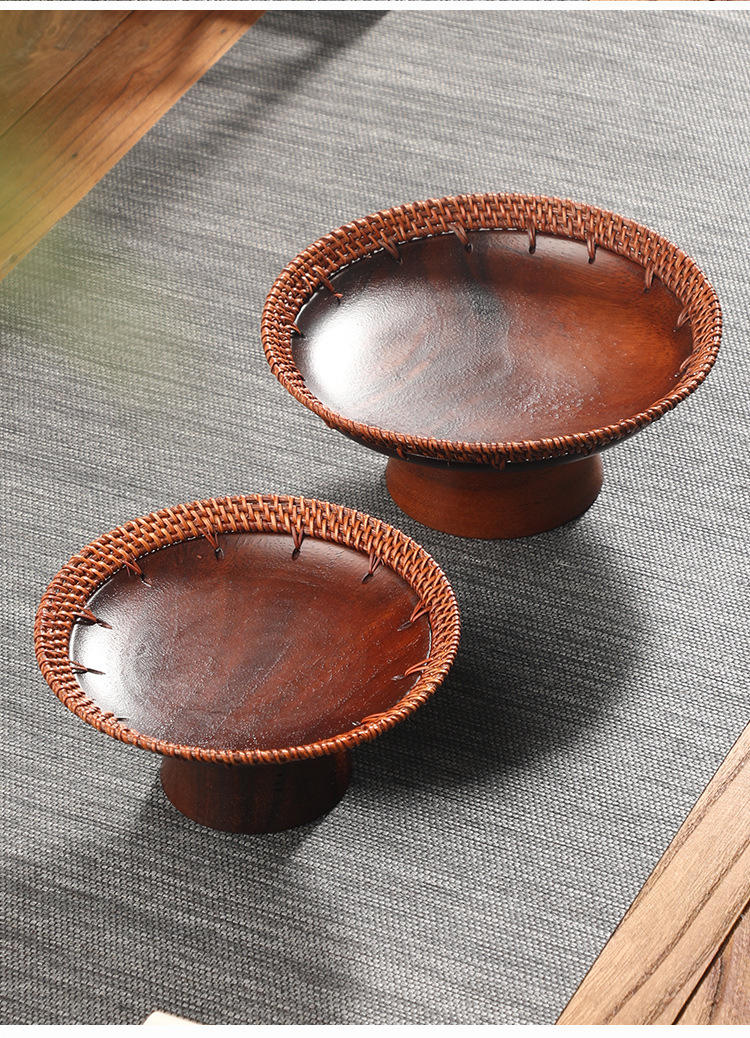 수제 등나무 키 큰 호두 과일 접시 중국 단단한 나무 딤섬 바구니 멜론 씨앗 접시 과자 말린 과일 차 보관 바구니