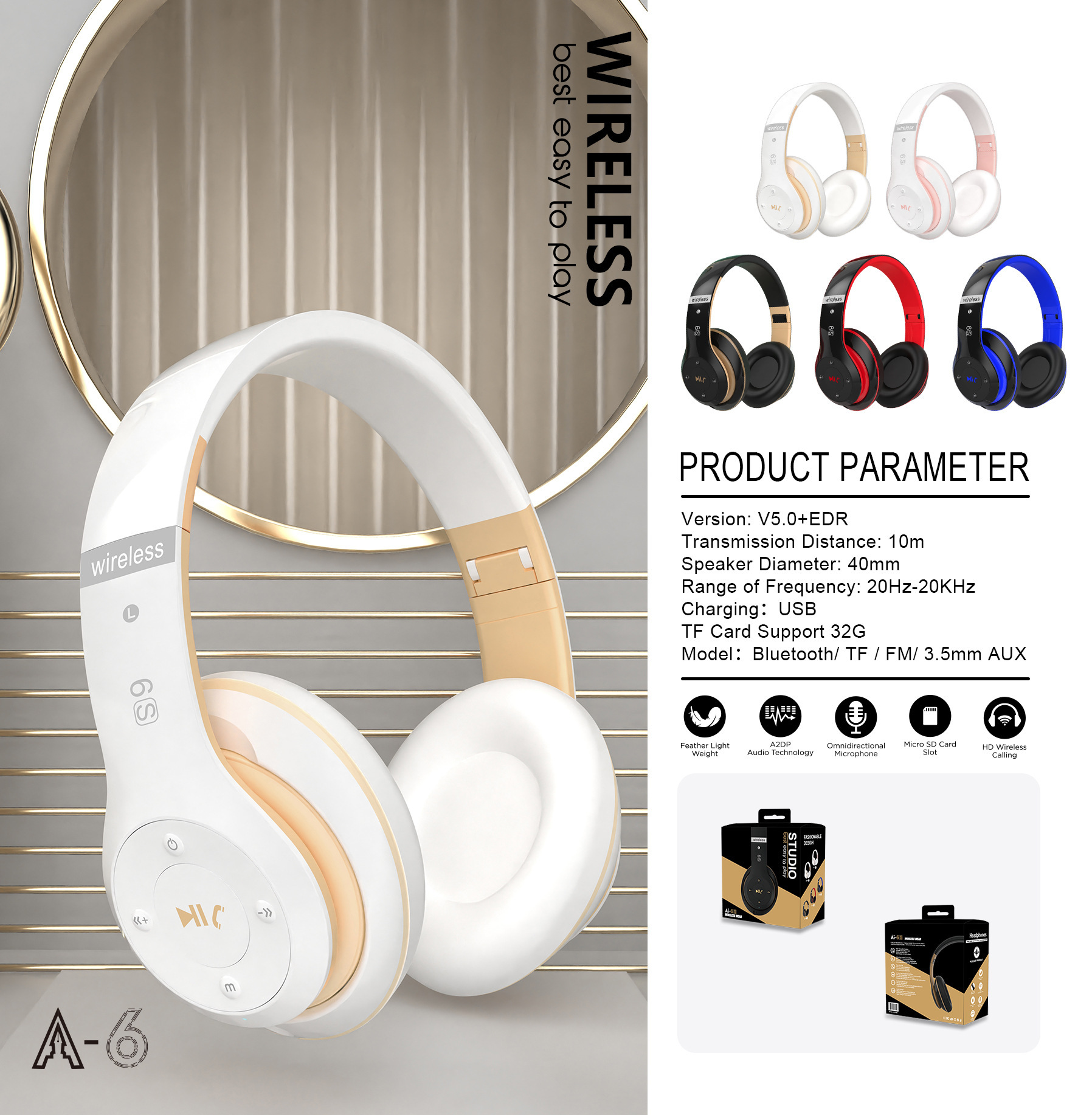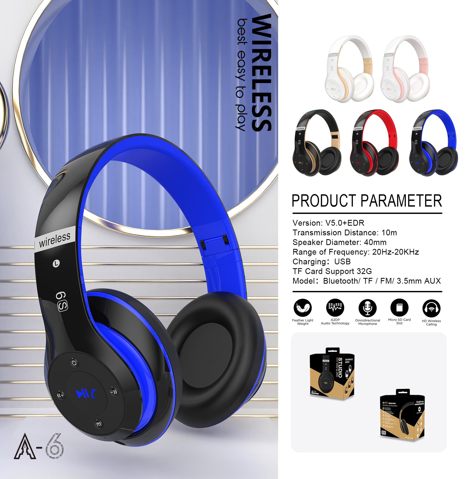 A6S 헤드셋 블루투스 무선 스테레오 이어폰, 카드 삽입 통화 및 게임 기능, 비즈니스 이어폰 공장스토어 가기