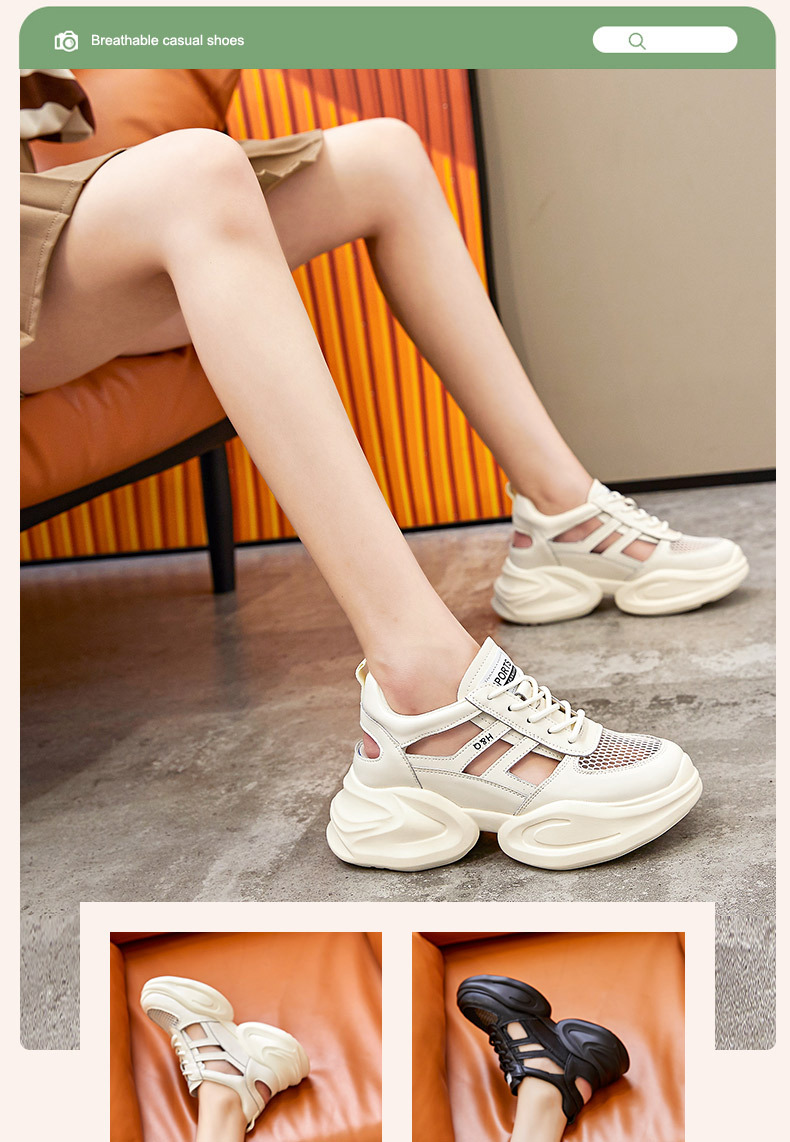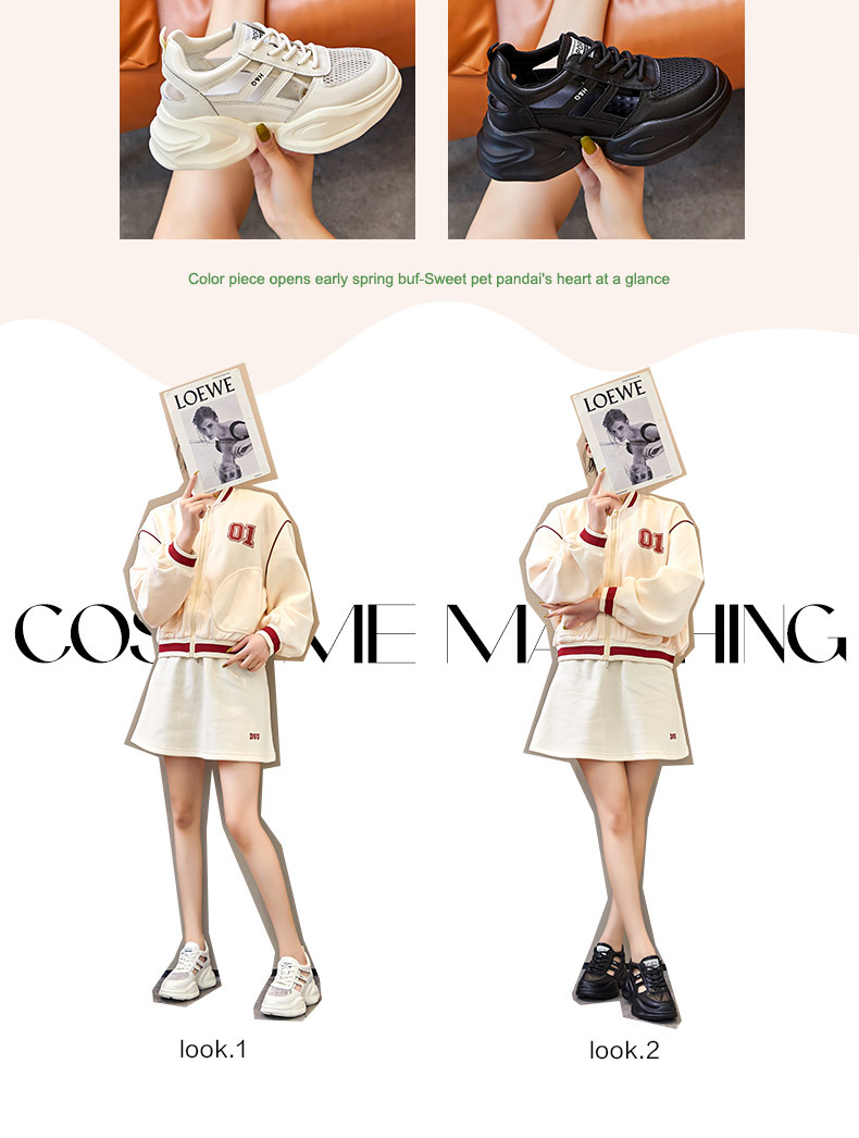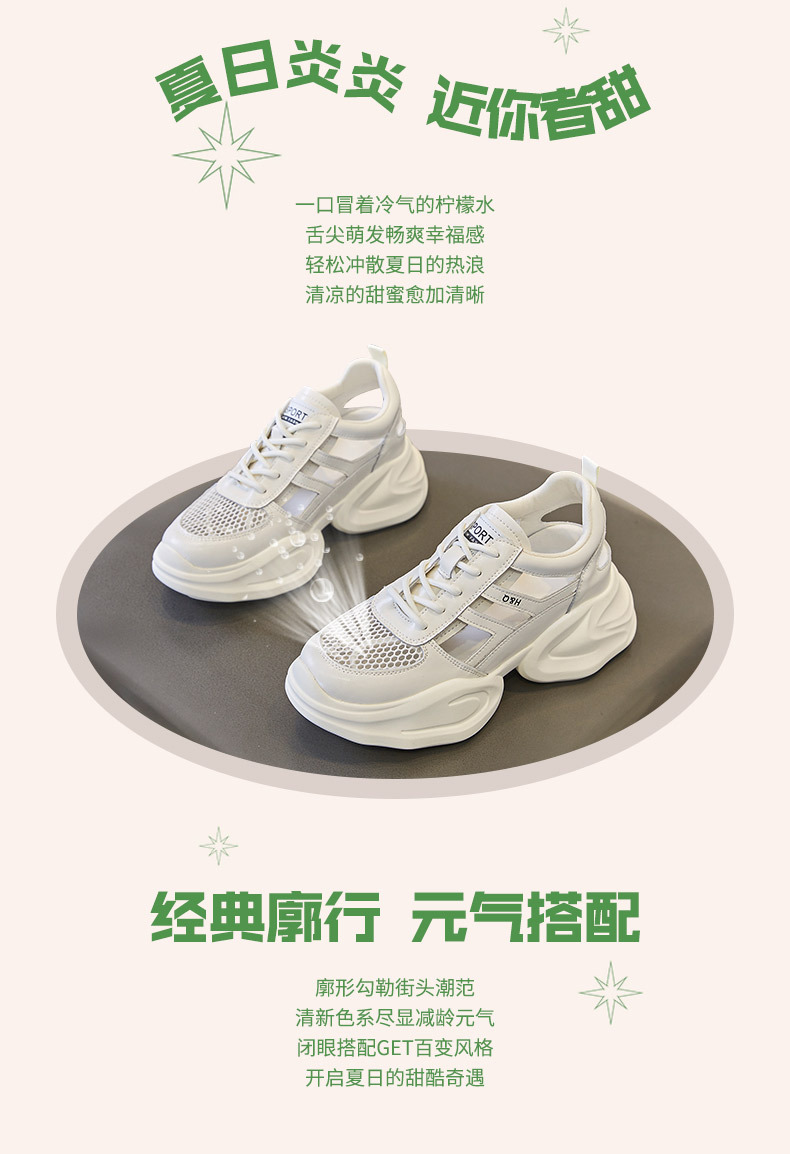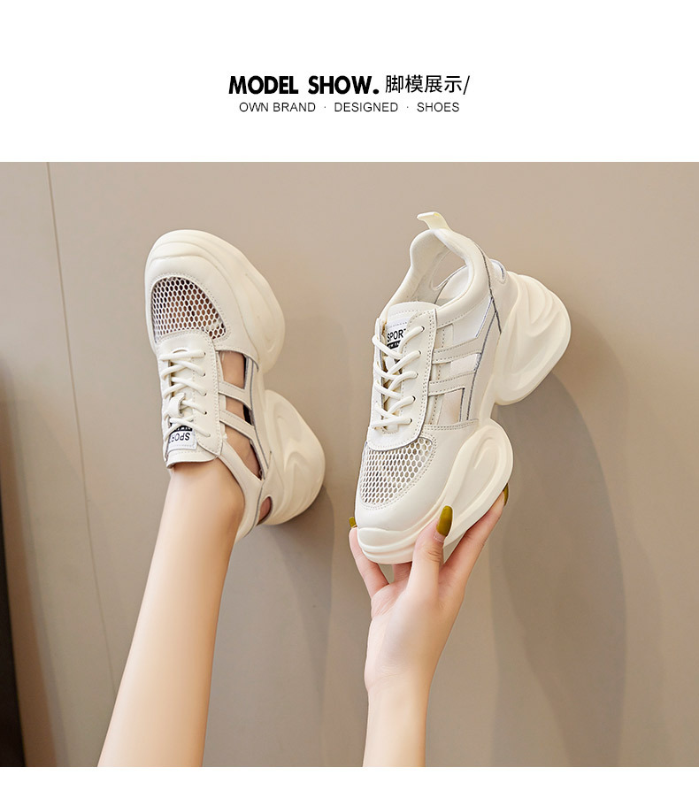 흰색 두꺼운 밑창 높이 증가 여성 신발 작은 2024 새로운 봄과 여름 화이트 메쉬 통기성 토레 신발스토어 가기