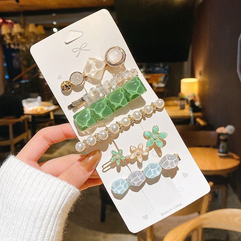 곰 깃털 머리핀 6 종 세트 진주 라인 석 가위 머리핀 한국 인 스타일 빈티지 앞머리 클립 요정 헤어 액세서리스토어 가기