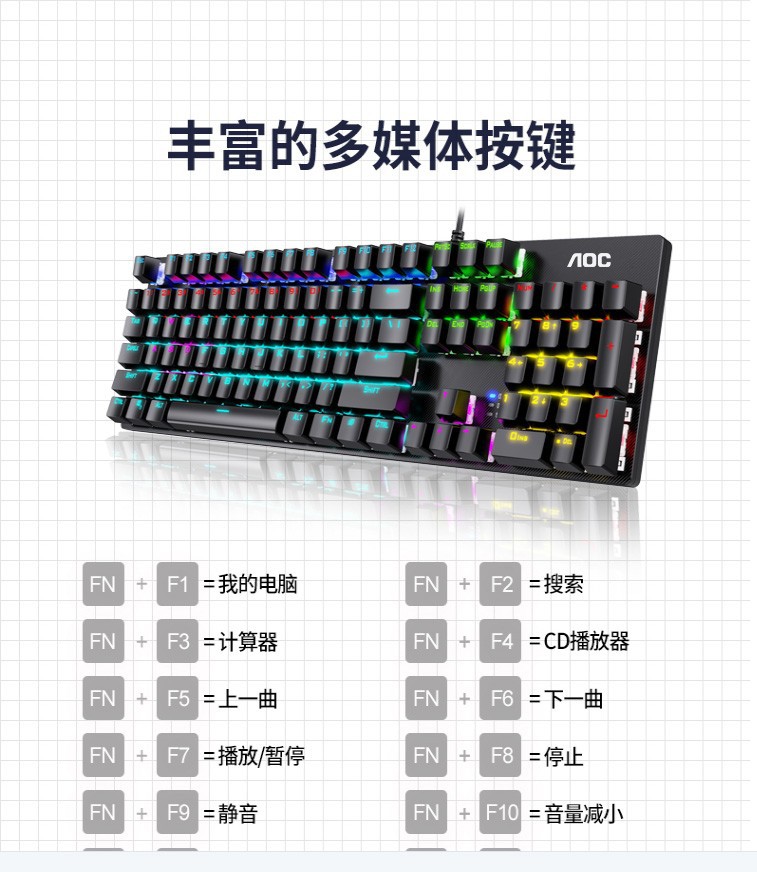 AOC GK410 플라스틱 버전 혼합 라이트 그린 축 기계 키보드 usb 노트북 데스크톱 컴퓨터 게임 유니버설 lol