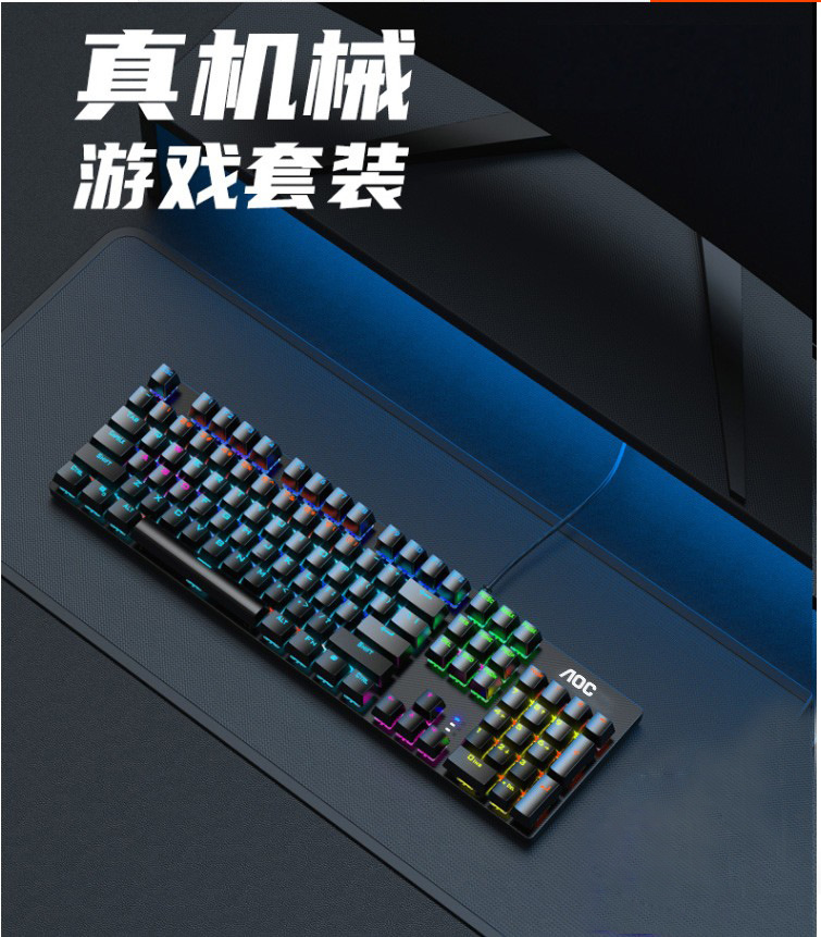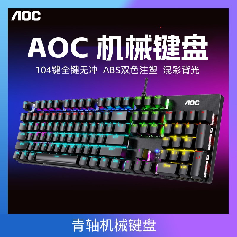 AOC GK410 플라스틱 버전 혼합 라이트 그린 축 기계 키보드 usb 노트북 데스크톱 컴퓨터 게임 유니버설 lol스토어 가기
