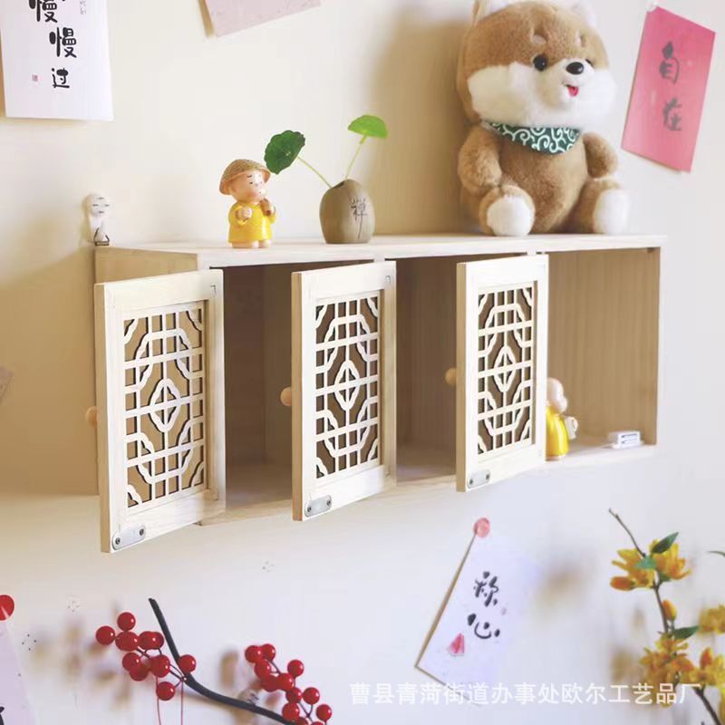 단단한 나무 벽걸이 형 벽걸이 형 벽 수납 캐비닛 수납 선반 기숙사 어린이 수납 상자스토어 가기