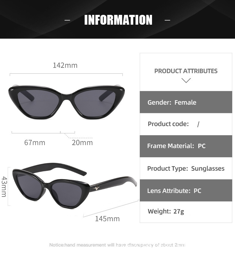 20323 뉴 빈티지 트라이앵글 캣츠 아이 스몰 페이스 선글라스 여성용 블랙 한국 선글라스