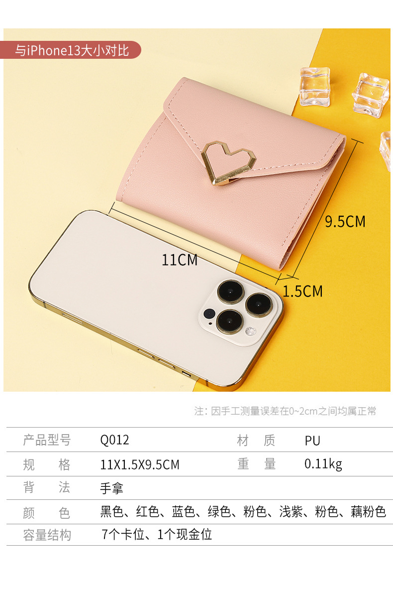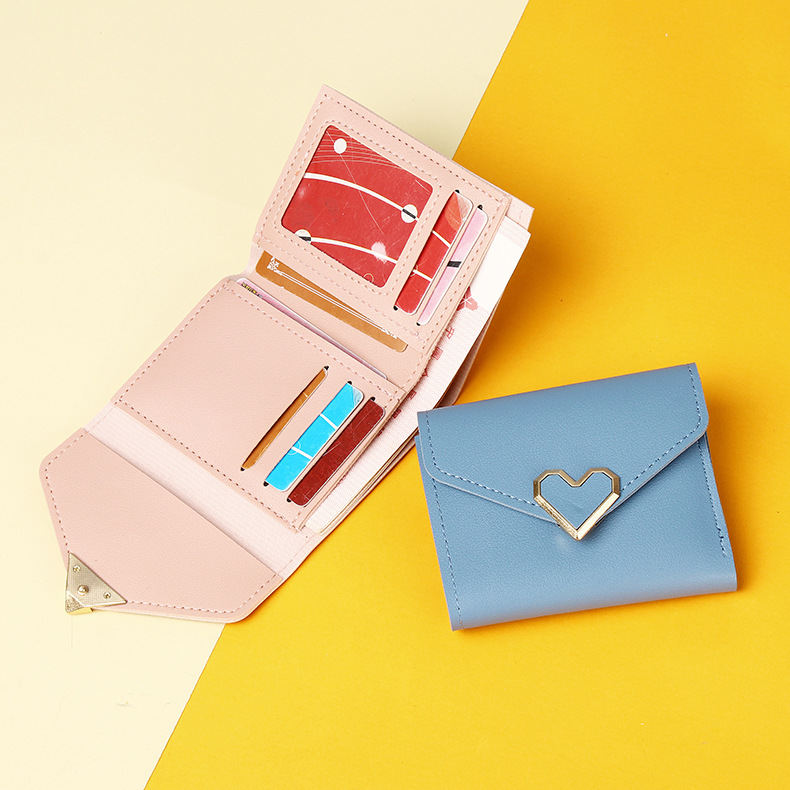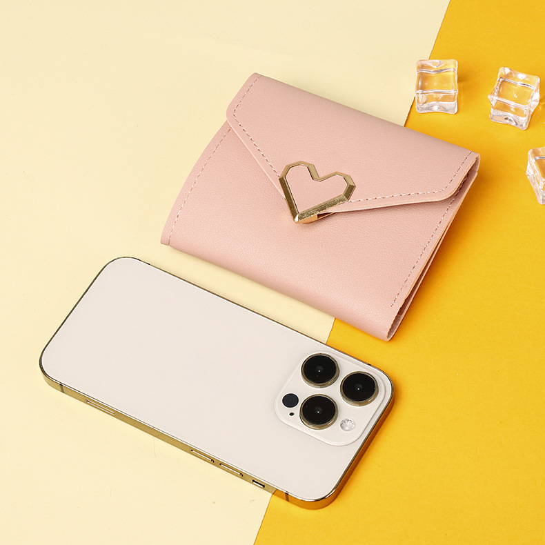 크로스보더 2026년 신상 여성용 짧은 지갑 패션 70% off 하트 모양 지갑 카드홀더 학생용 미니 동전 지갑 도매스토어 가기