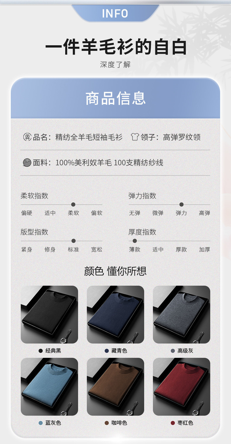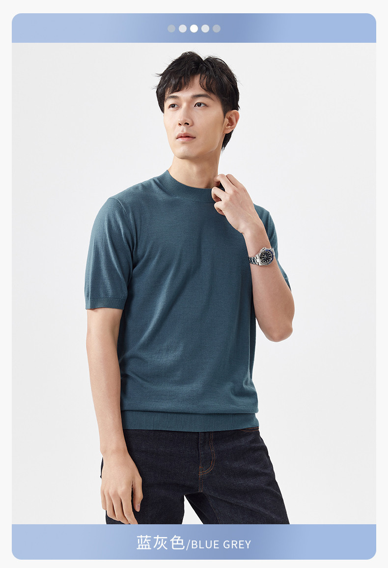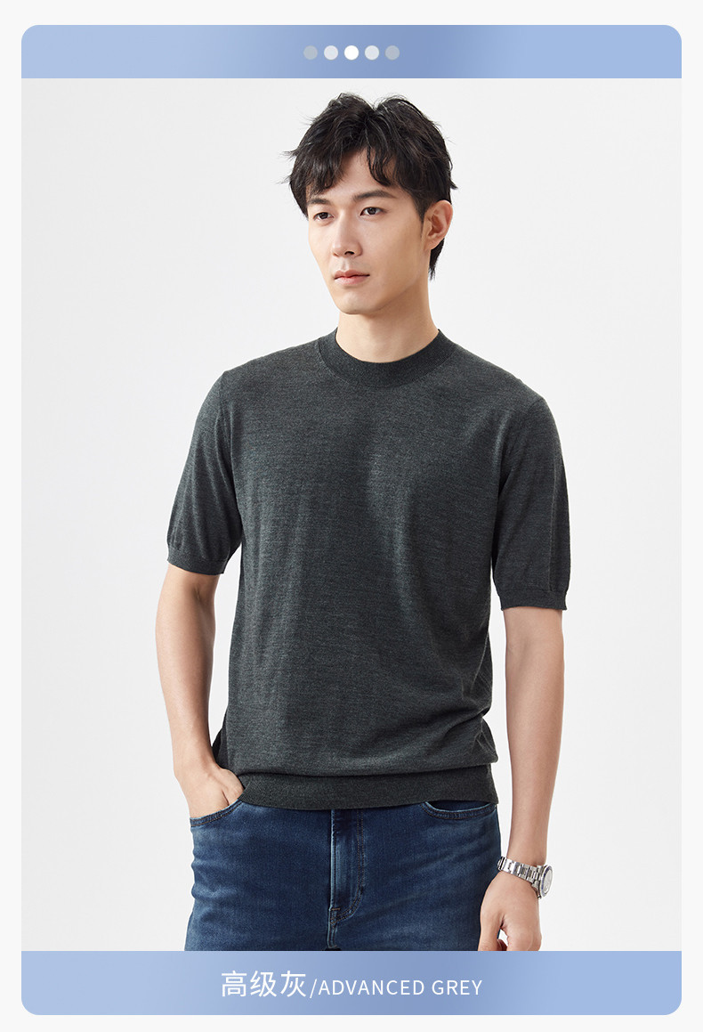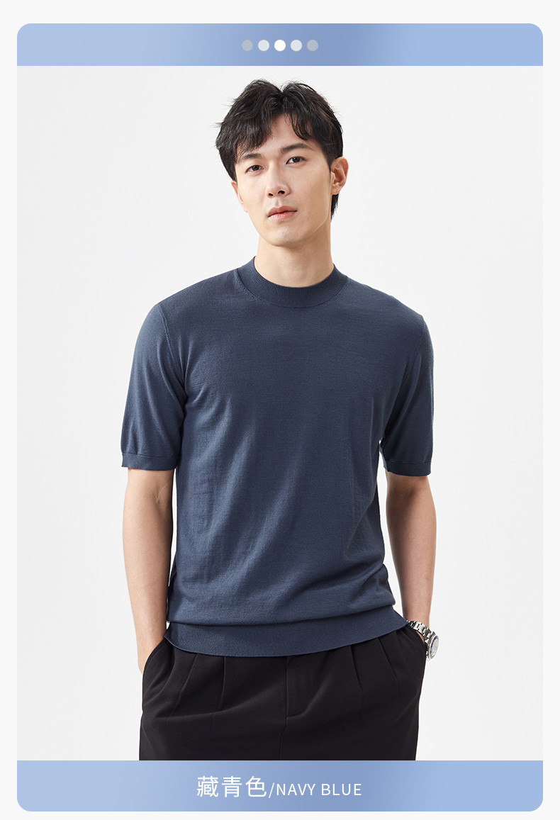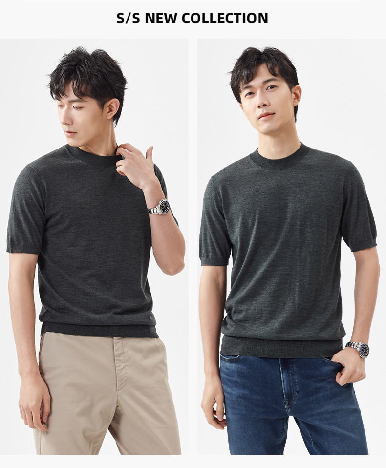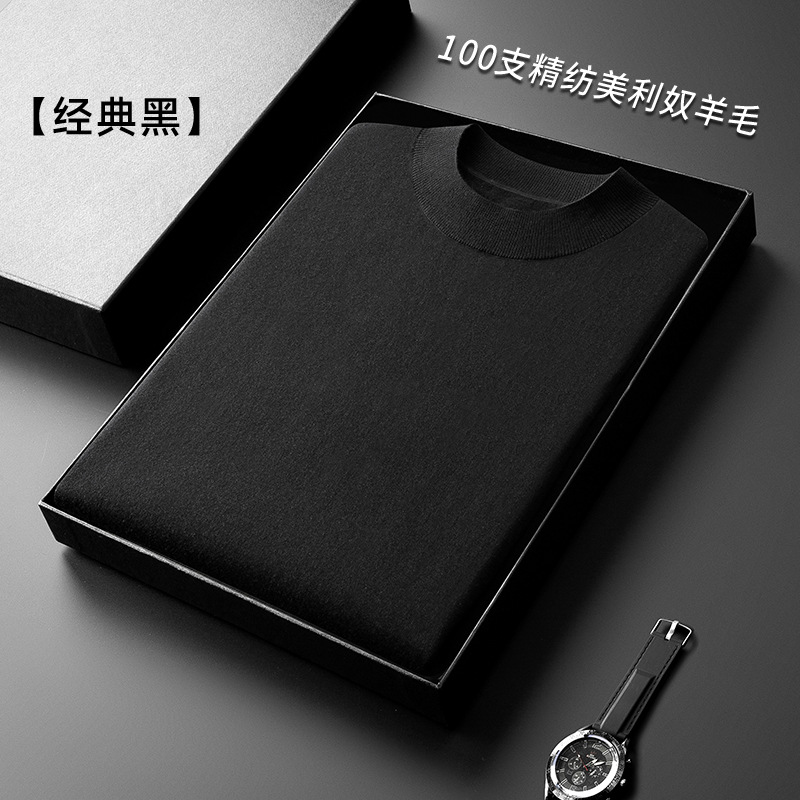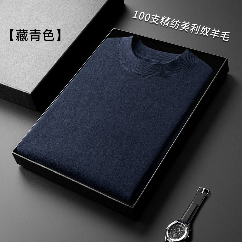 경량 기계 빨 100 메리노 퓨어 울 스웨터 크루넥 반팔 티셔츠 남성용 봄과 가을 니트 남성용 베이스 셔츠스토어 가기