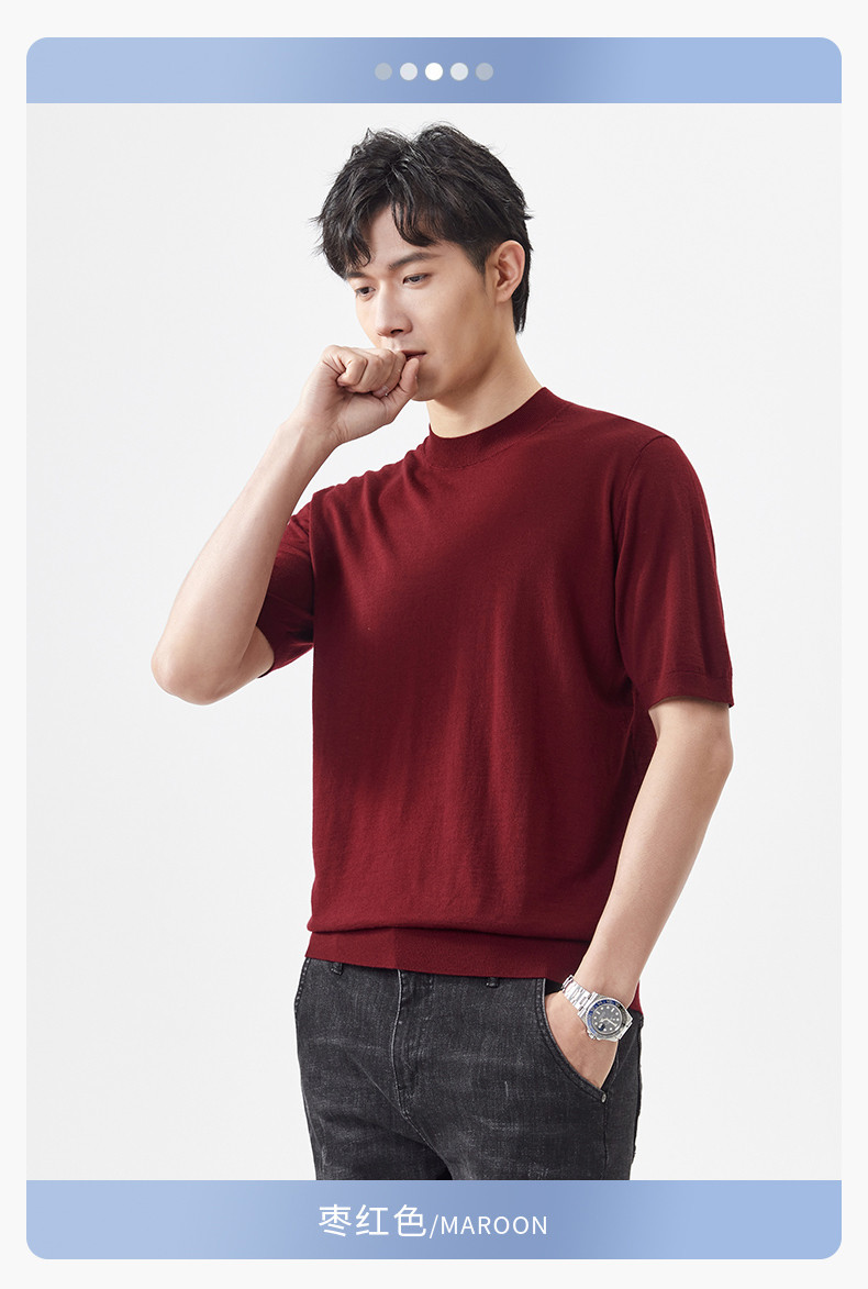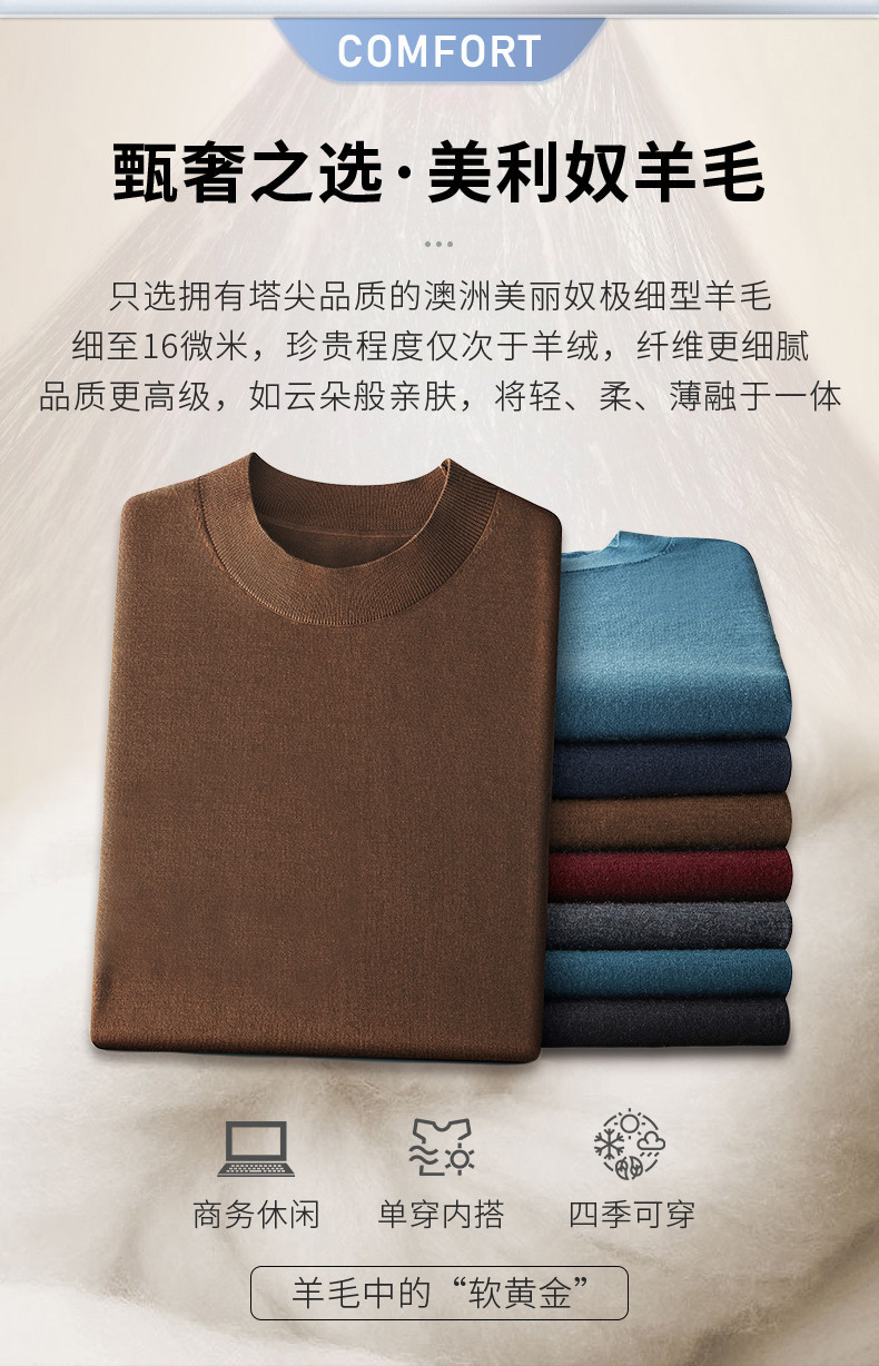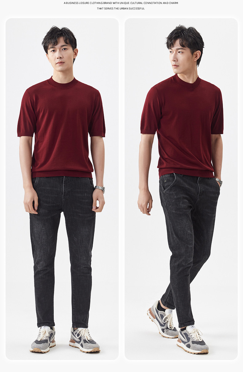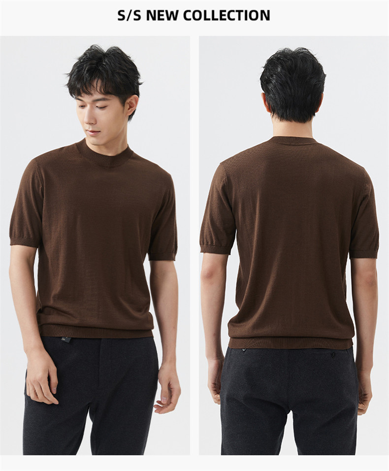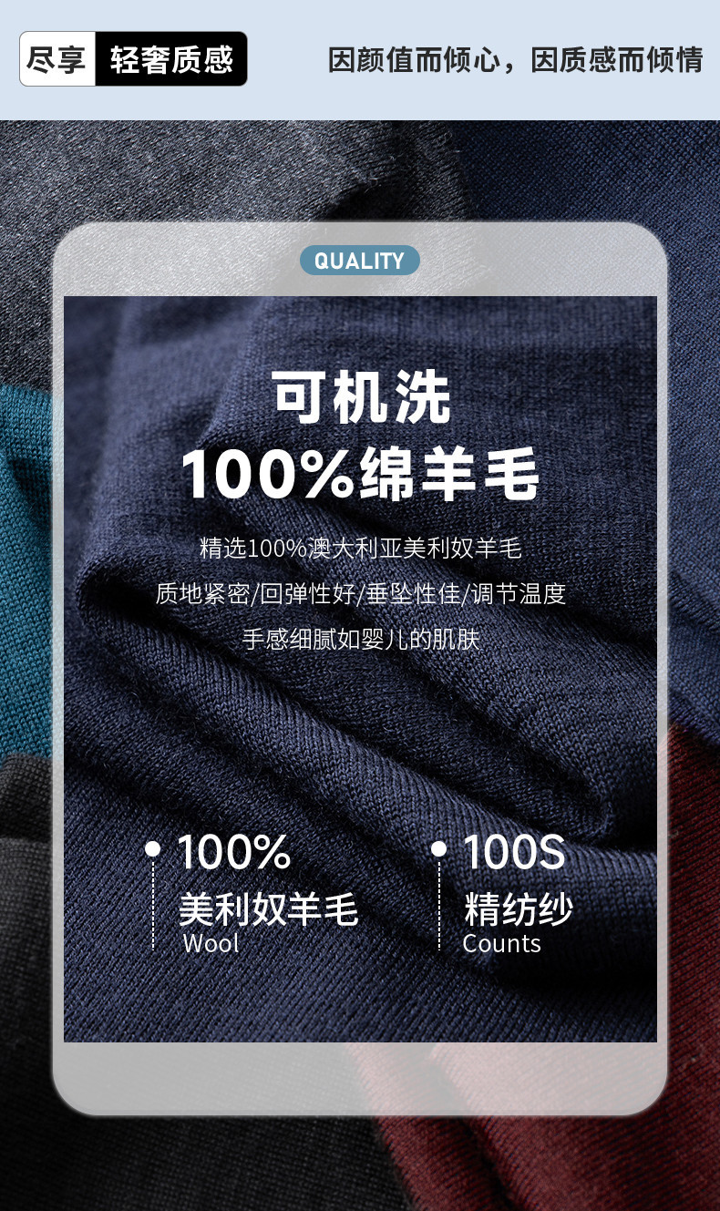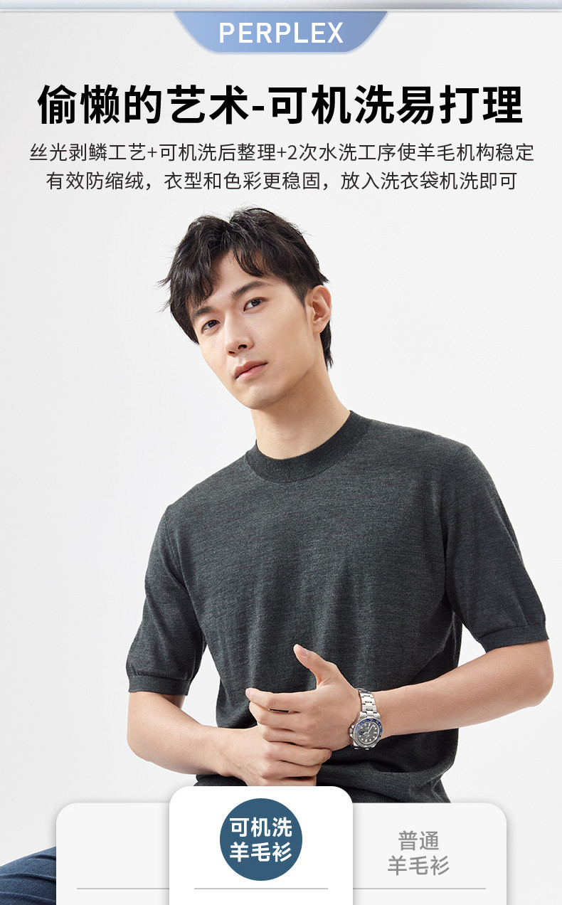 경량 기계 빨 100 메리노 퓨어 울 스웨터 크루넥 반팔 티셔츠 남성용 봄과 가을 니트 남성용 베이스 셔츠스토어 가기