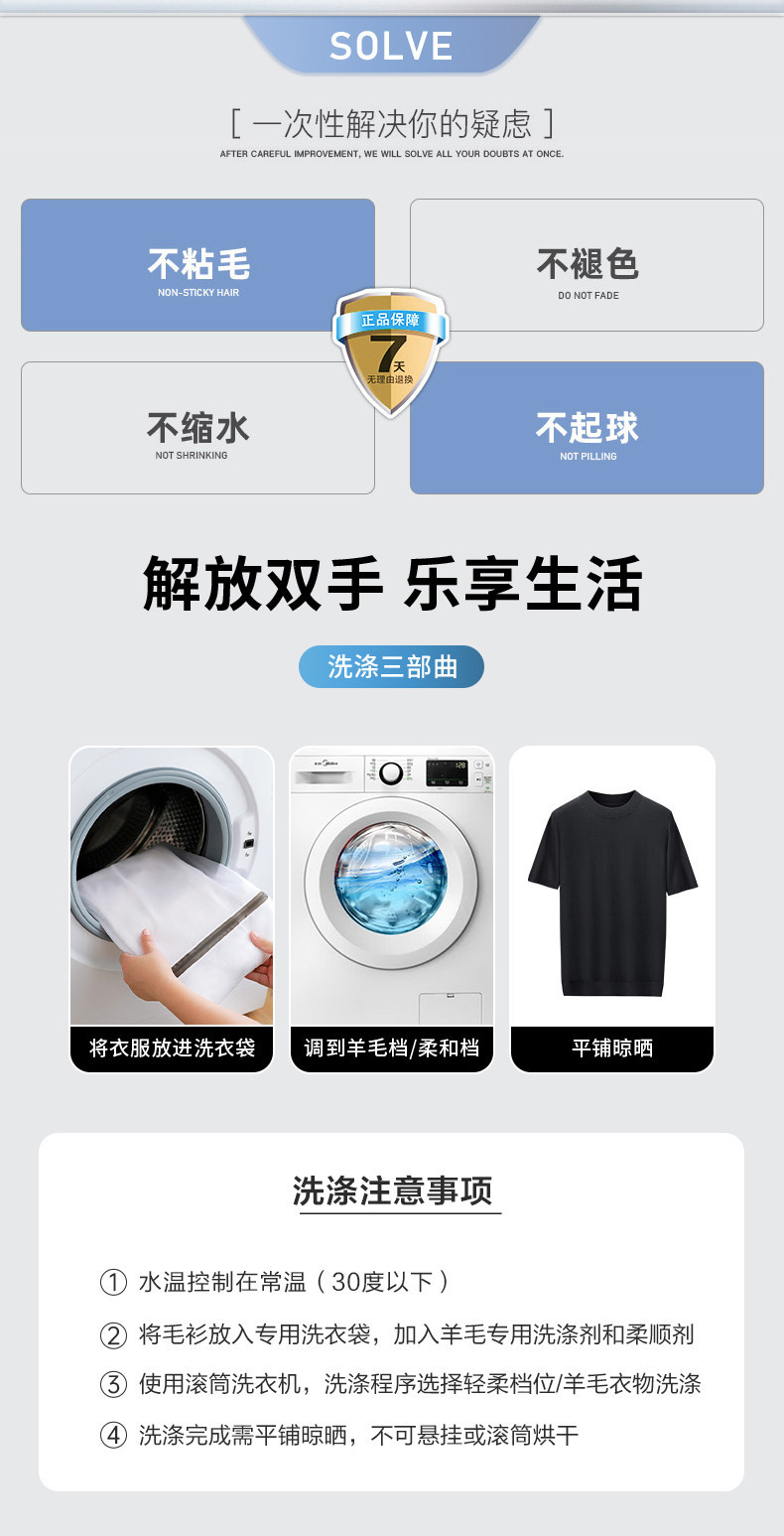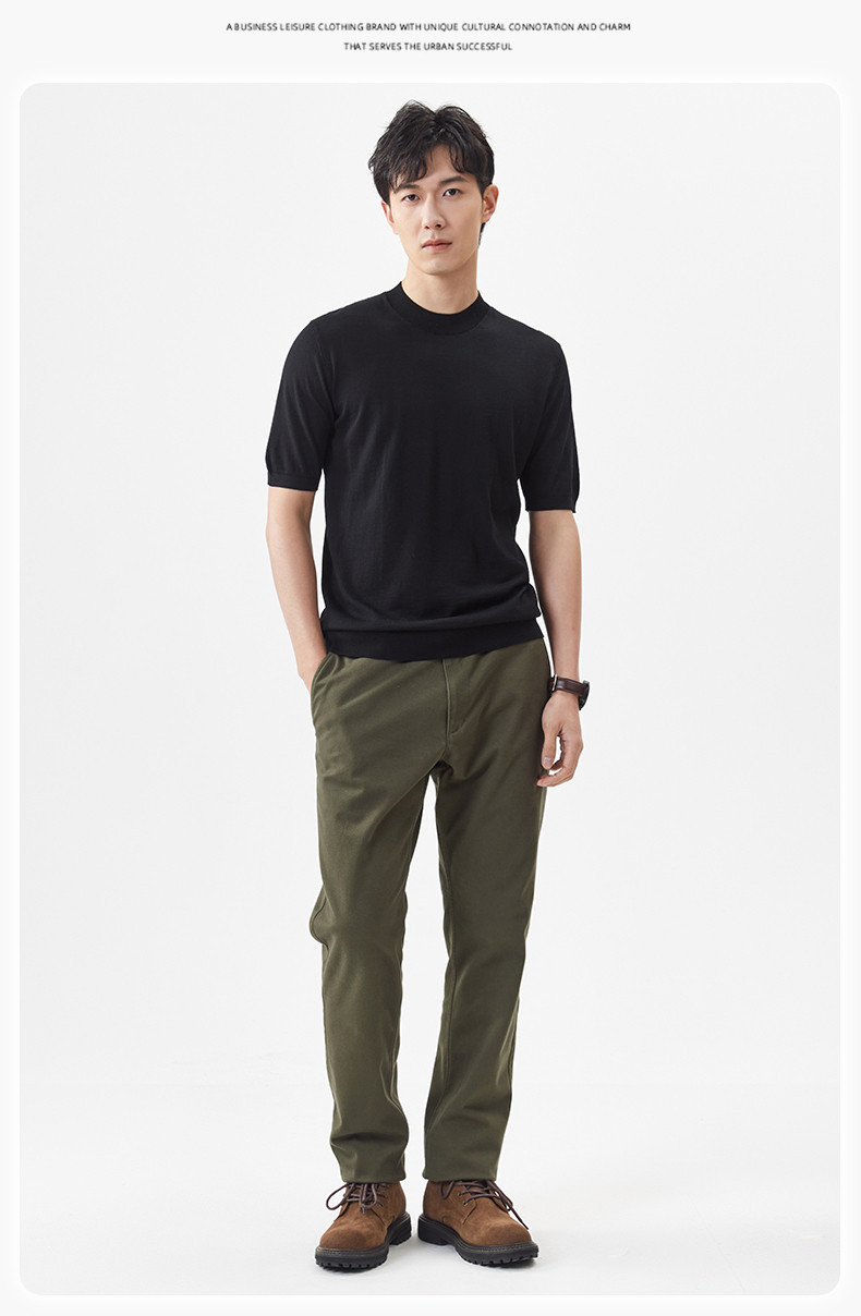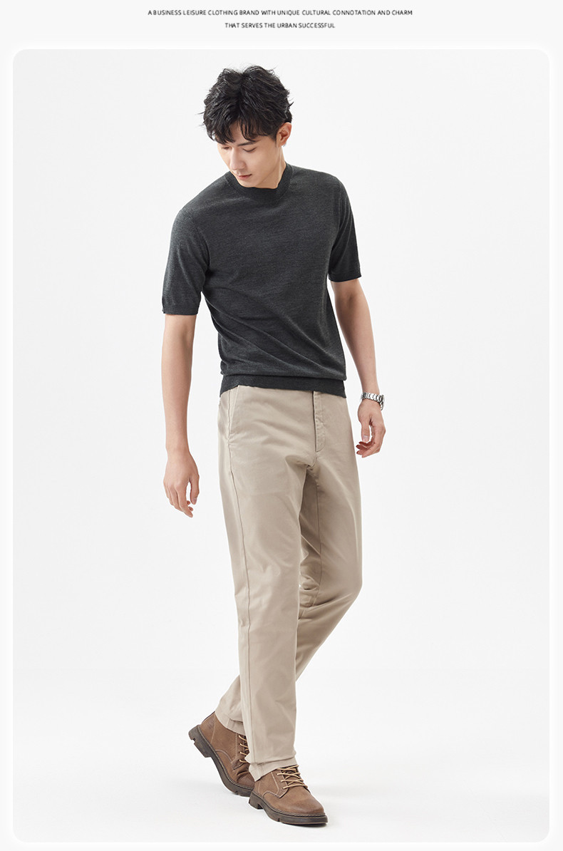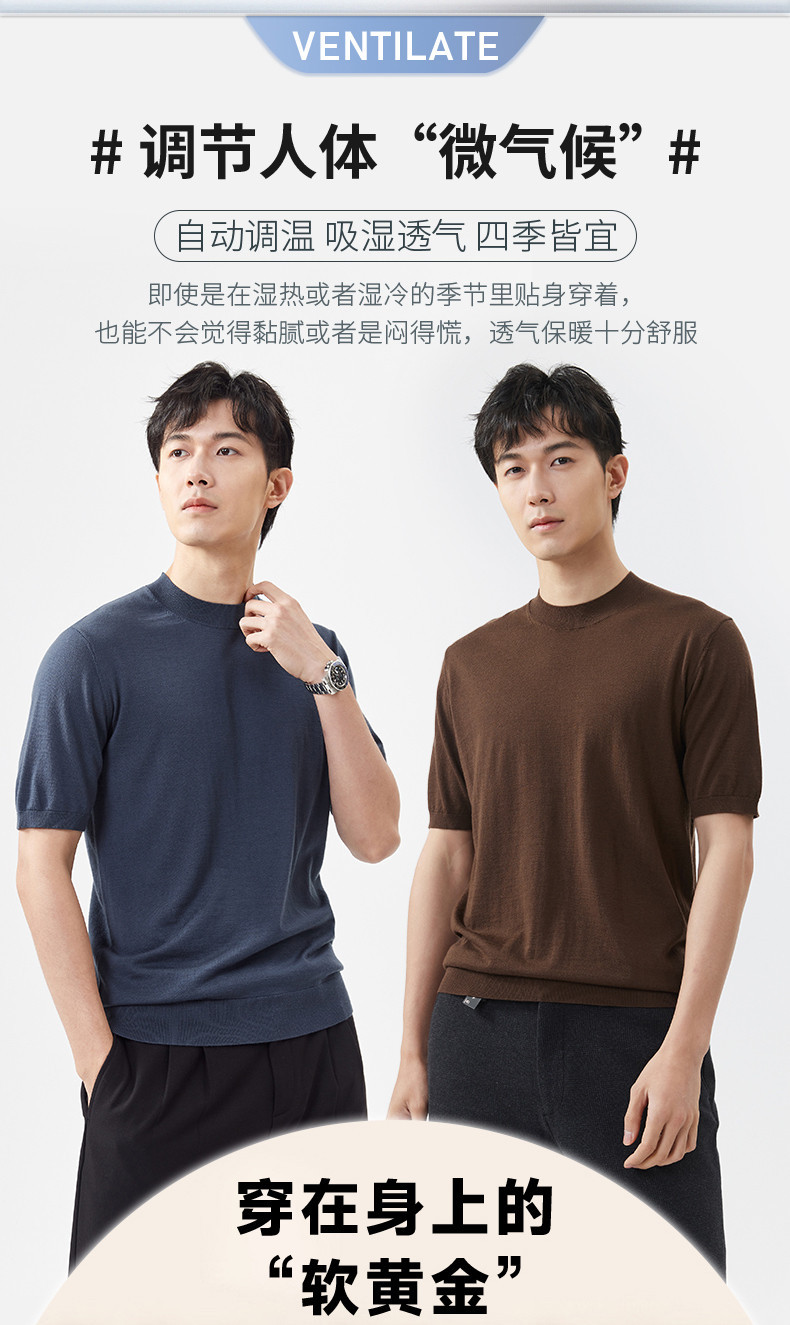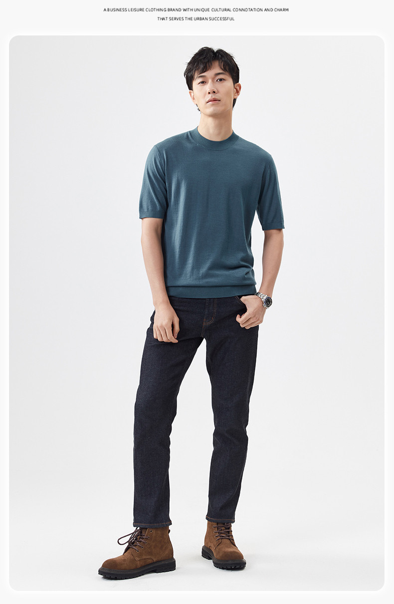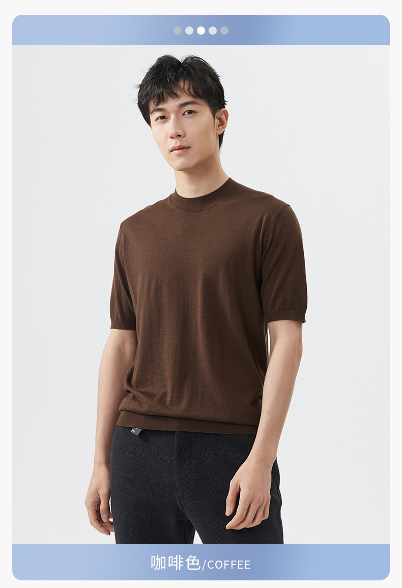 경량 기계 빨 100 메리노 퓨어 울 스웨터 크루넥 반팔 티셔츠 남성용 봄과 가을 니트 남성용 베이스 셔츠스토어 가기