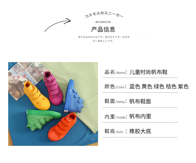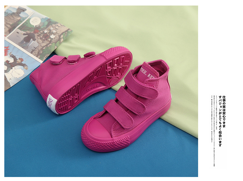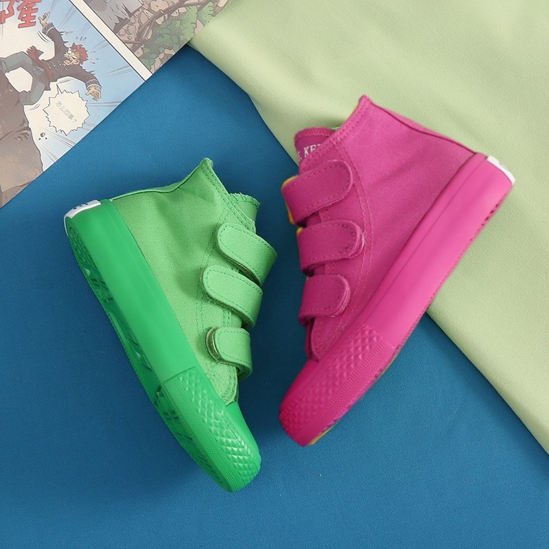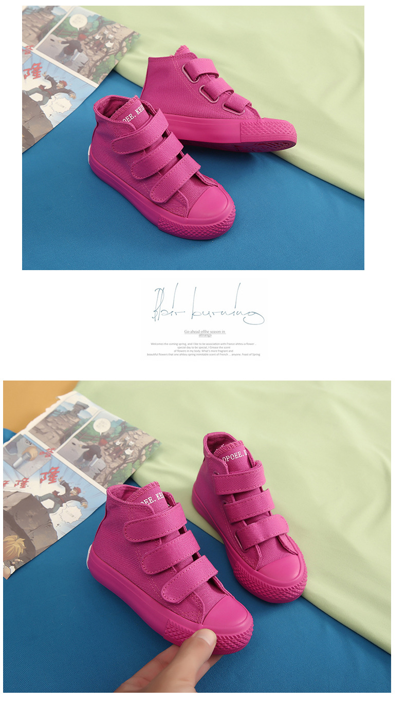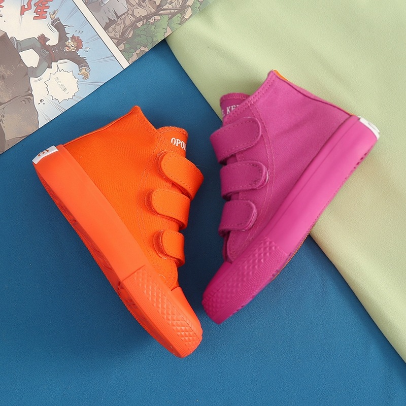 어린이 캔버스 신발 봄과 가을 한국식 만능 캔디 컬러 유아양 신발 하이탑 벨크로 캐주얼 소년 소녀 신발
