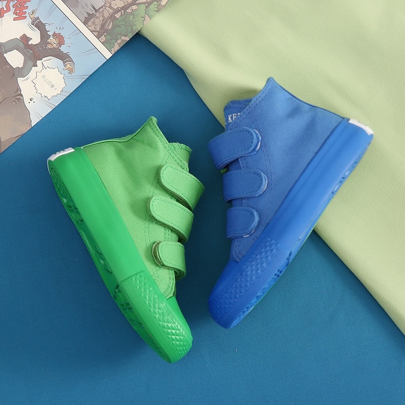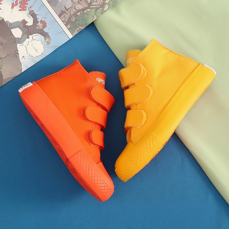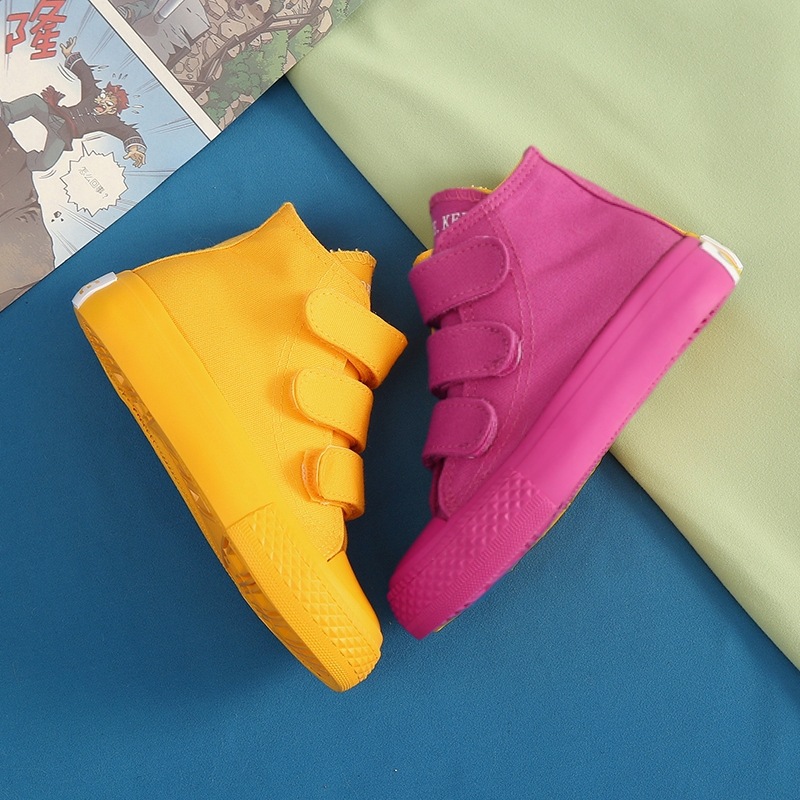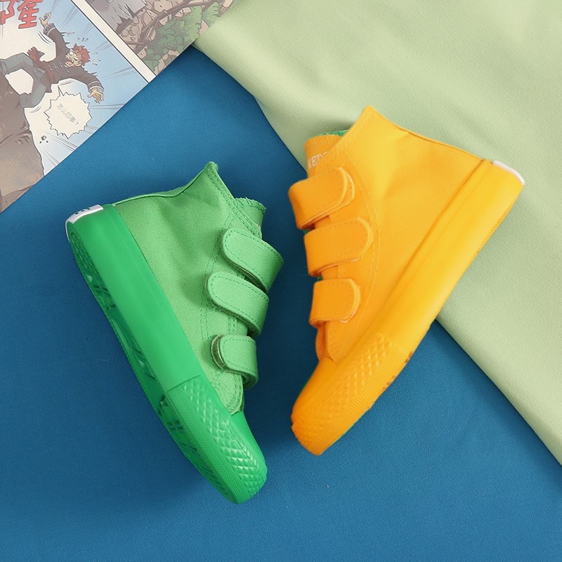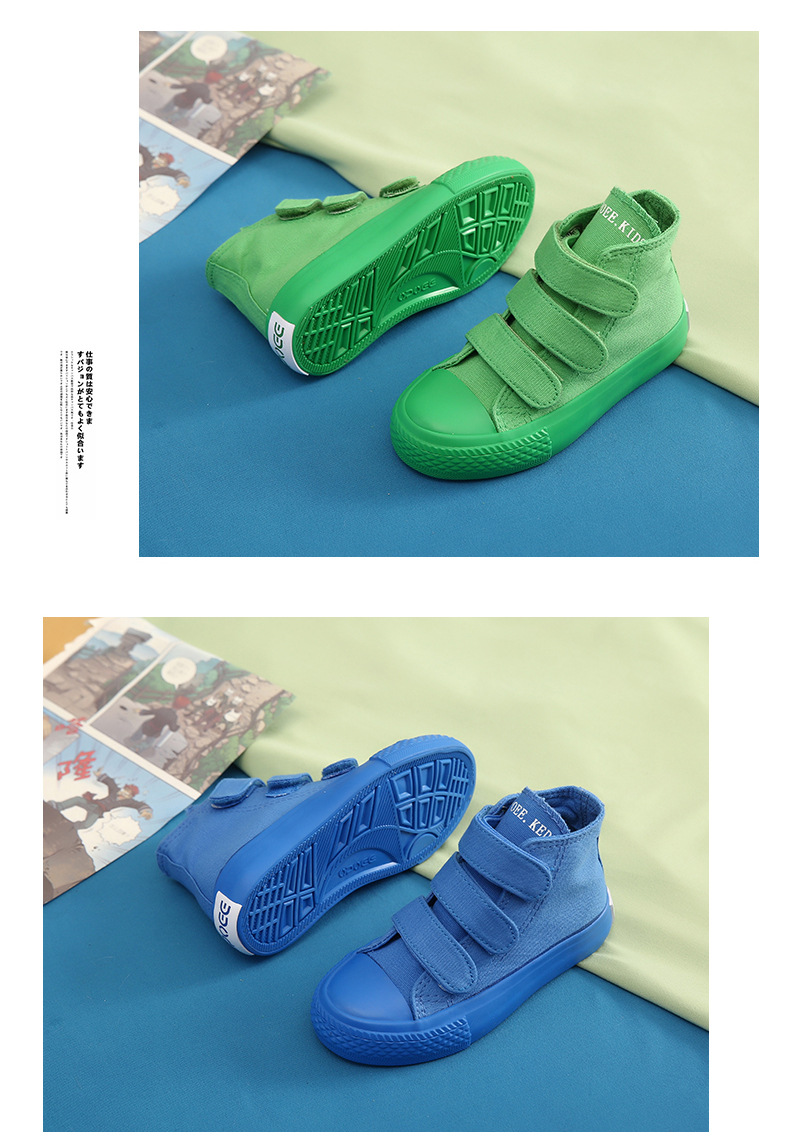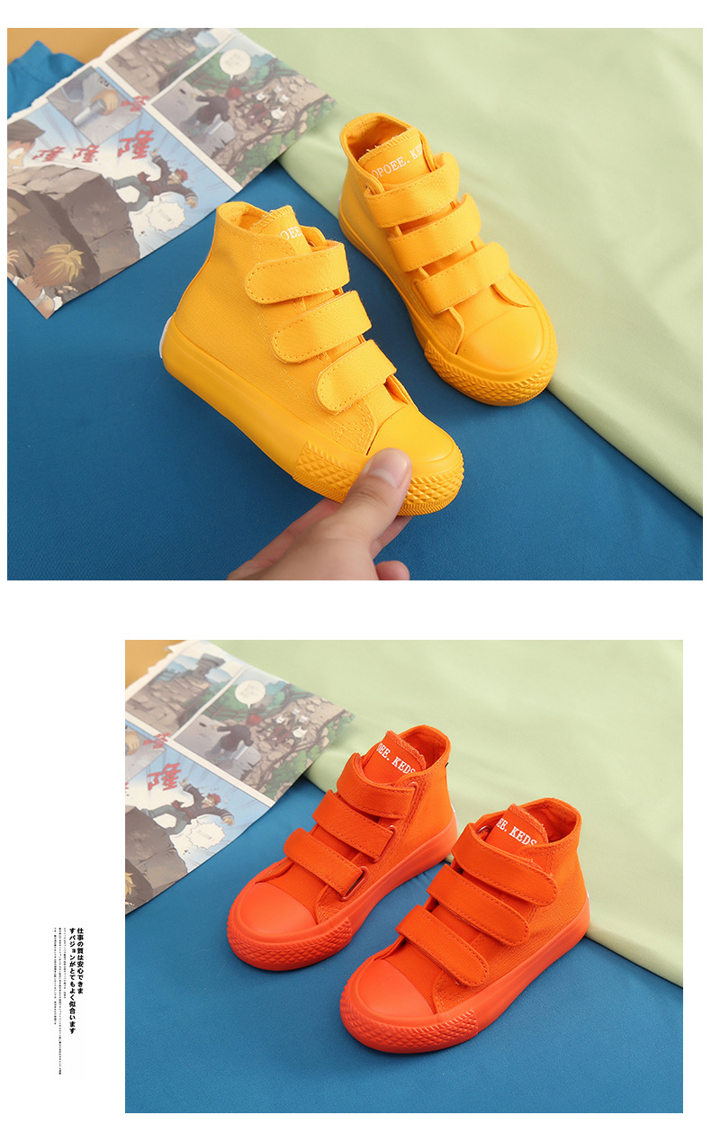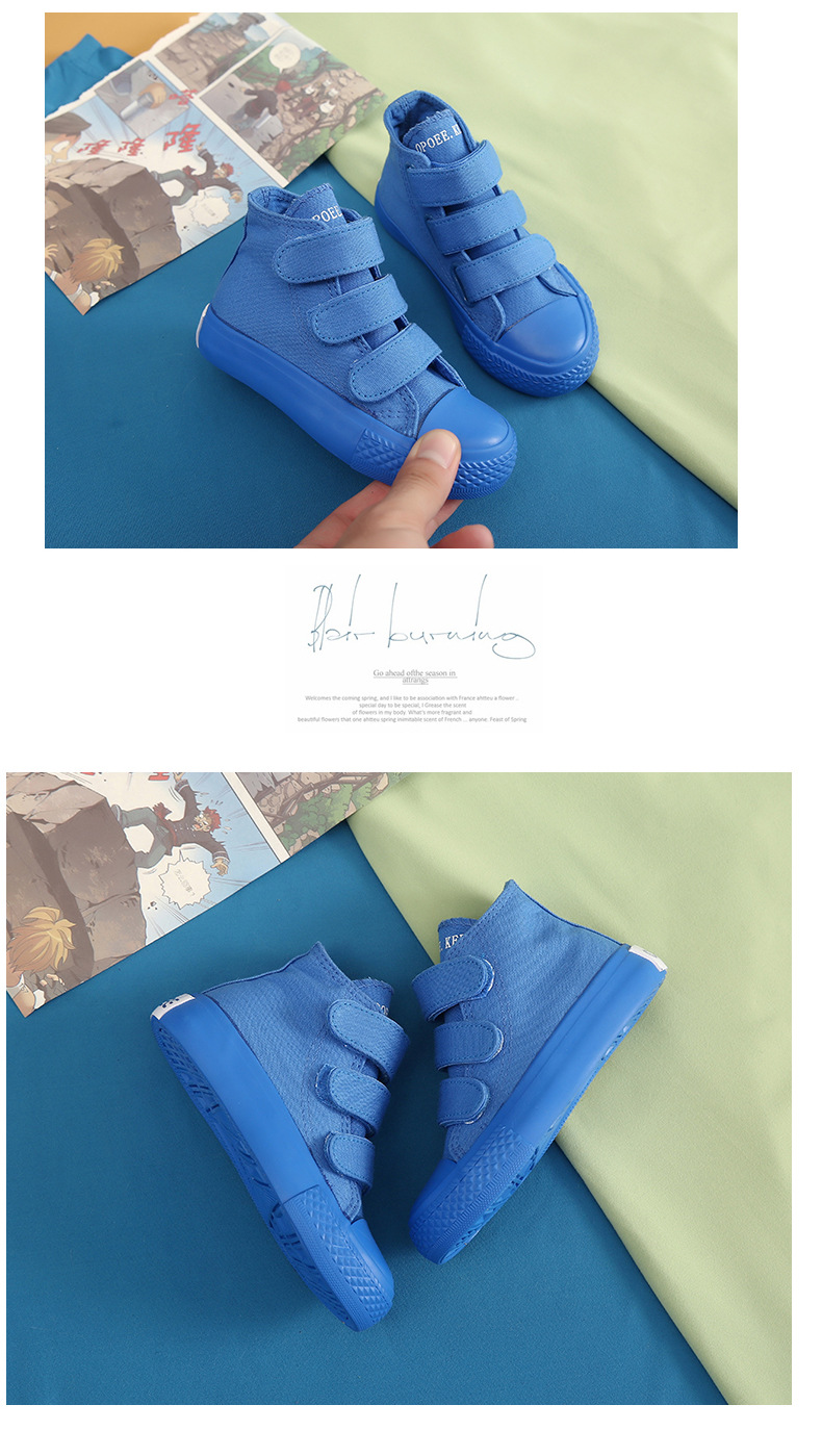 어린이 캔버스 신발 봄과 가을 한국식 만능 캔디 컬러 유아양 신발 하이탑 벨크로 캐주얼 소년 소녀 신발스토어 가기