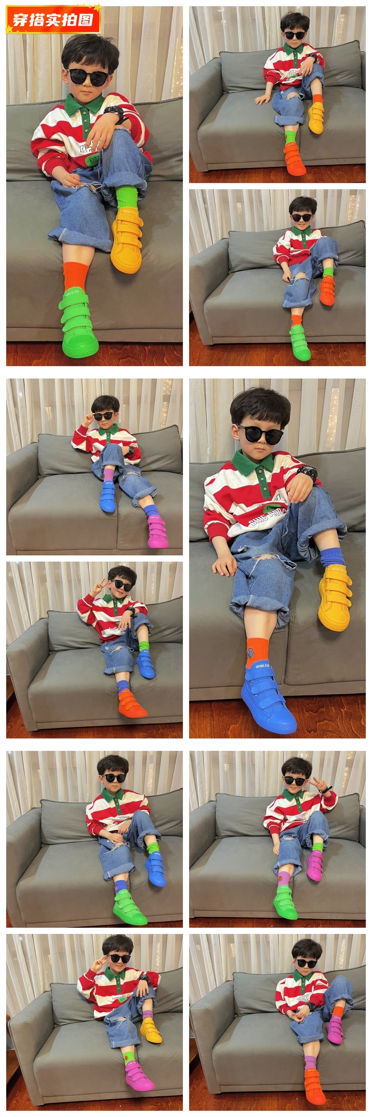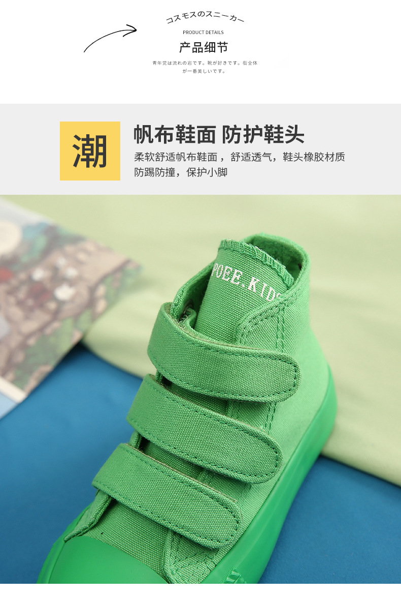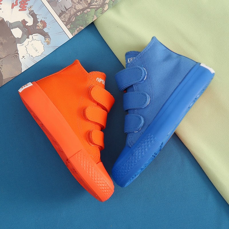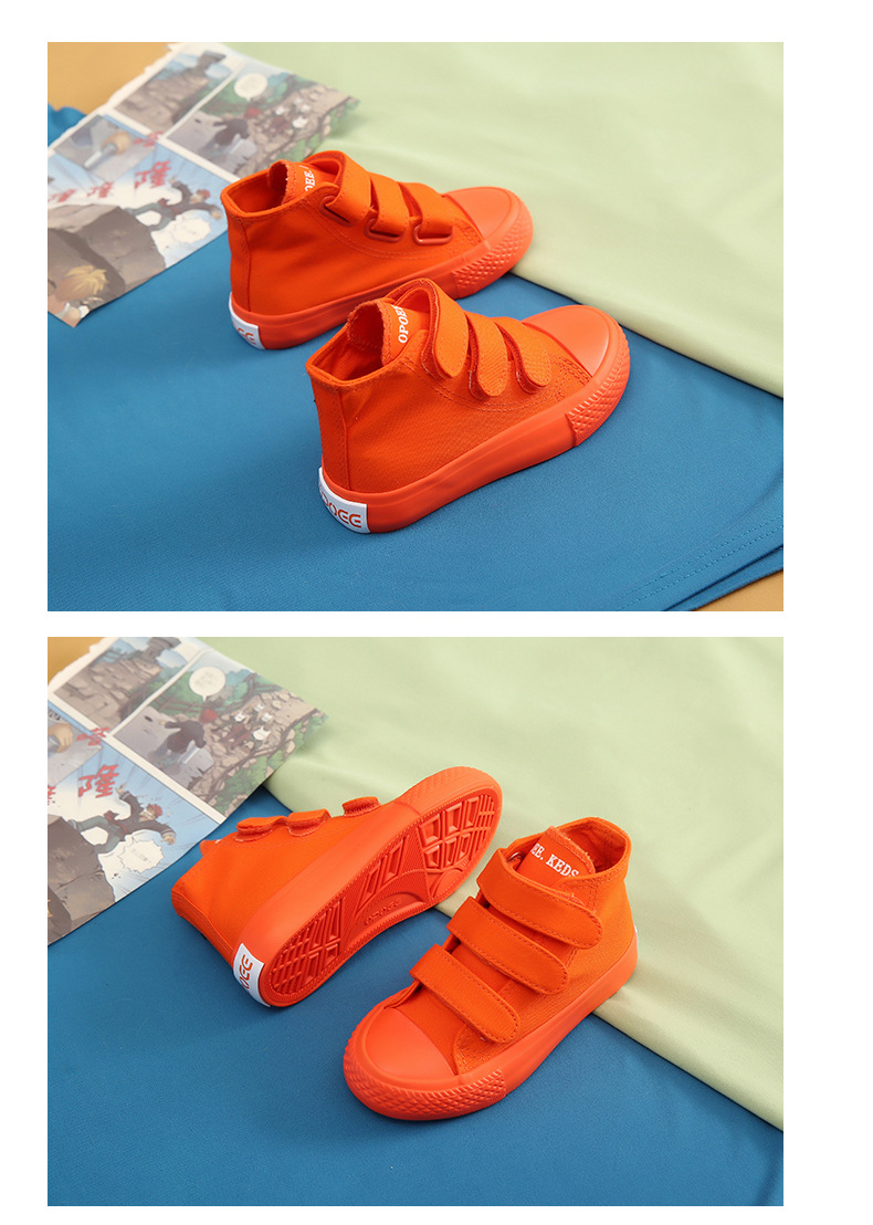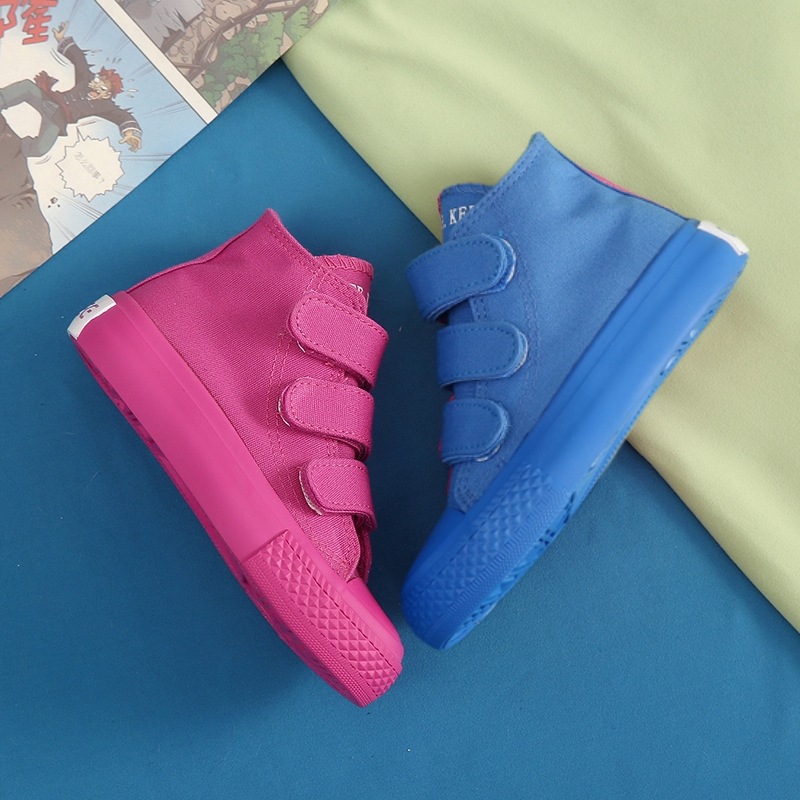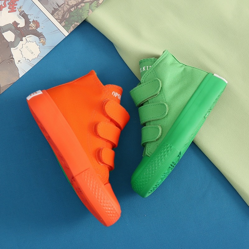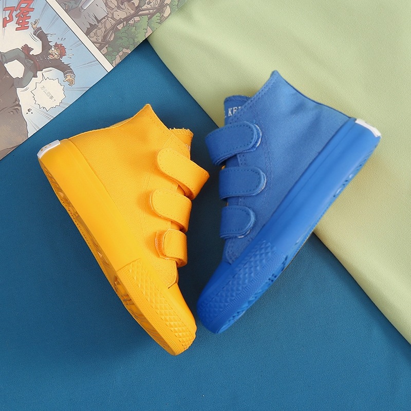 어린이 캔버스 신발 봄과 가을 한국식 만능 캔디 컬러 유아양 신발 하이탑 벨크로 캐주얼 소년 소녀 신발스토어 가기