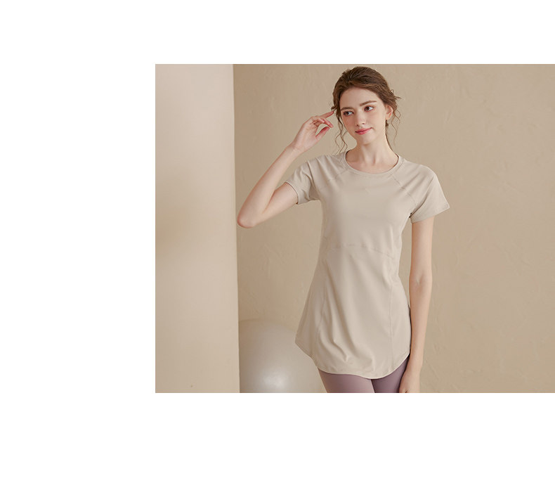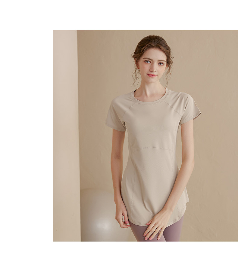2025 새로운 요가 착용 여성의 중간 길이 엉덩이 덮는 슬리밍 반팔 티셔츠 러닝 스포츠 탑 피트니스웨어 여름스토어 가기