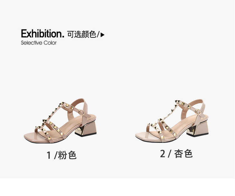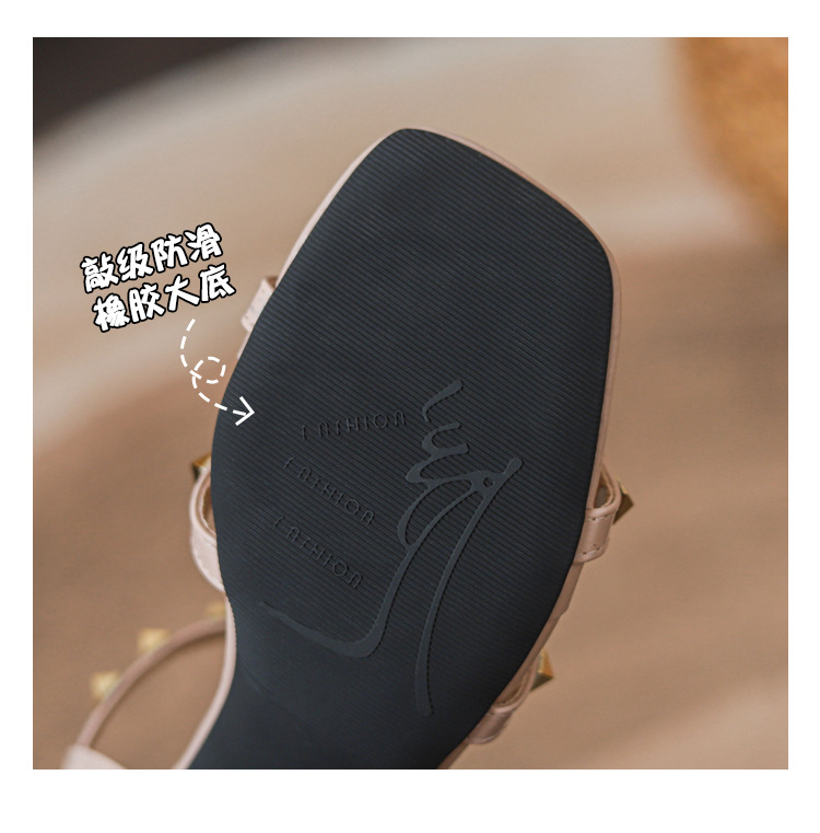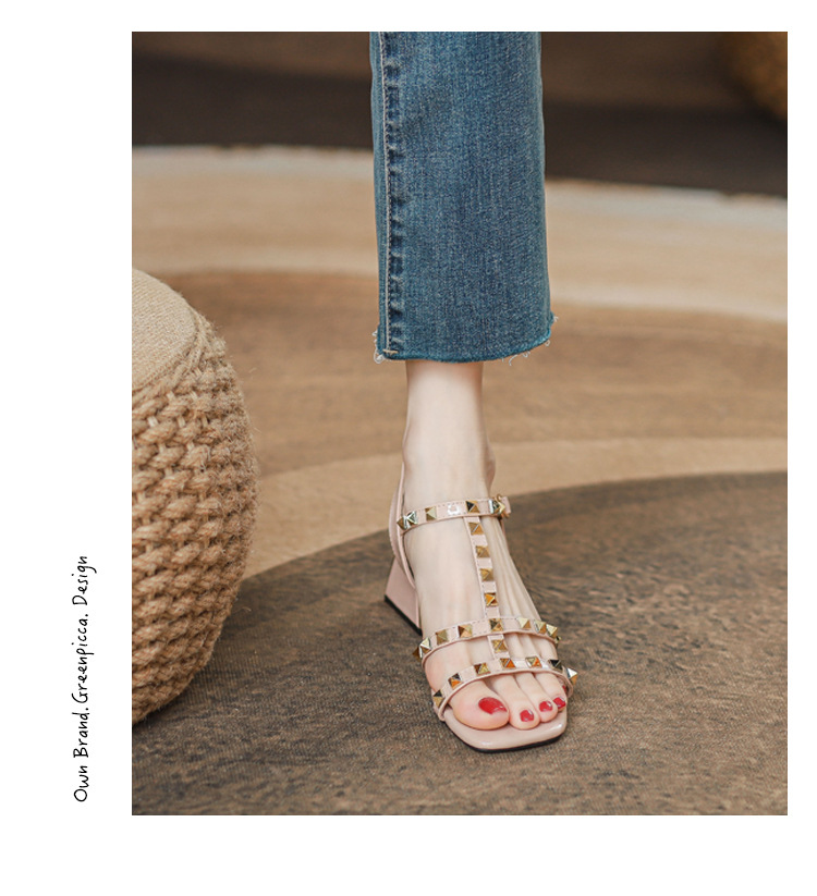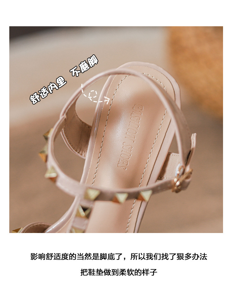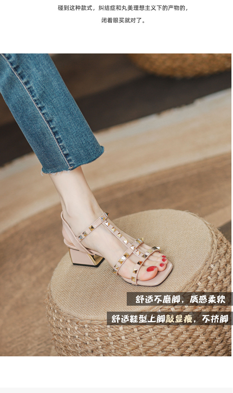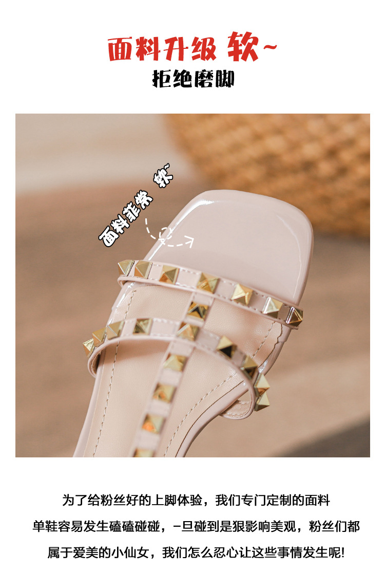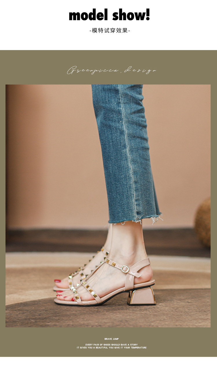 여성을위한 리벳 샌들 2025 여름 새로운 인터넷 연예인 패션 요정 스타일 스커트 중간 굽 로마 하이힐스토어 가기