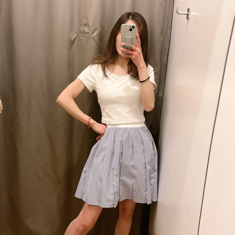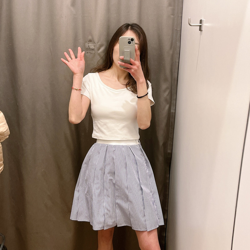 여름 플리츠 미니스커트 컬리지 스타일 스트라이프 스커트 여성 플리츠 숏스커트 A라인 스커트 457703
