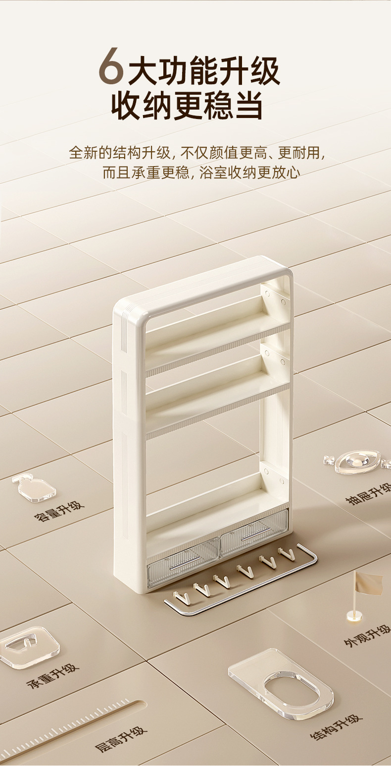 • [헤더] 서랍 + 6 후크 + 타월 바가있는 스트라이프 3 층
